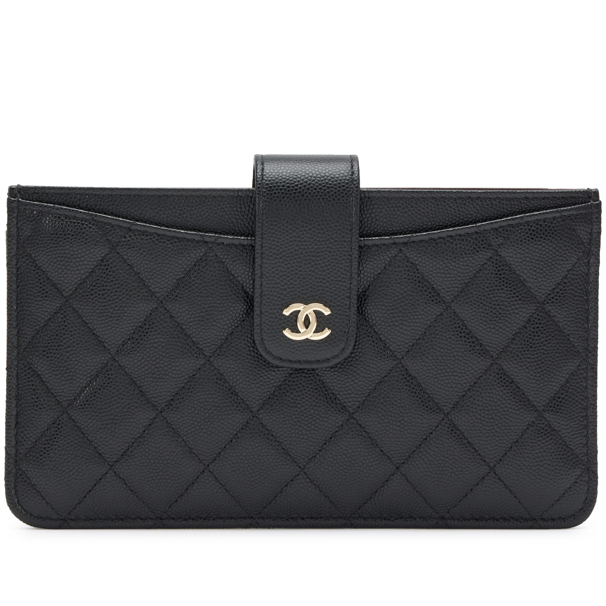 Black Quilted Caviar Classic Strap Pouch Long Wallet Light Gold Hardware, 2018-2019
