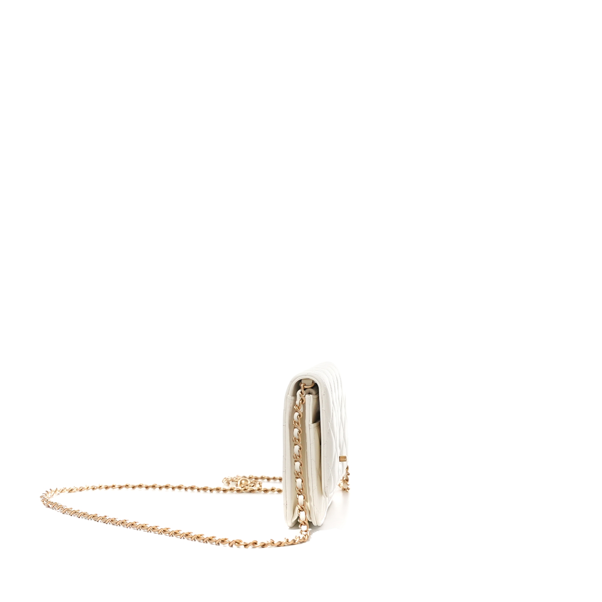 White Quilted Lambskin Mini Wallet on Chain Brushed Gold and White Hardware, 2022