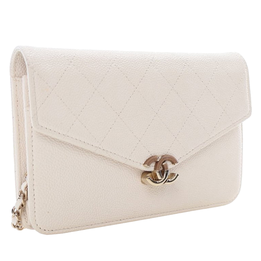 White Quilted Caviar Cuba Wallet On Chain (WOC) Pale Gold Hardware, 2018