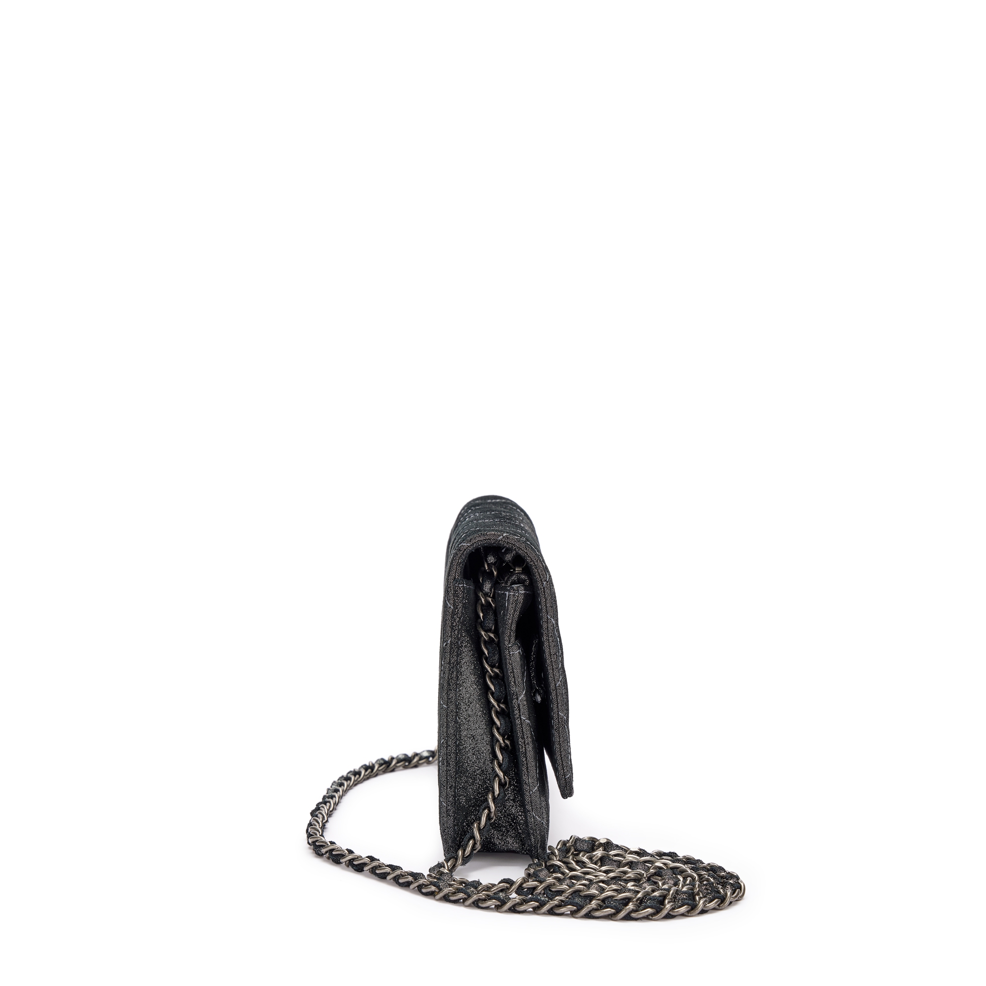 Silver Iridescent Quilted Lambskin Wallet on Chain Ruthenium Hardware, 2013-14
