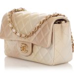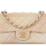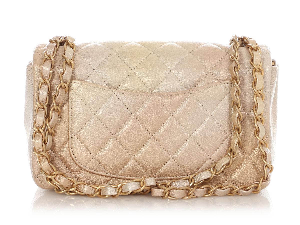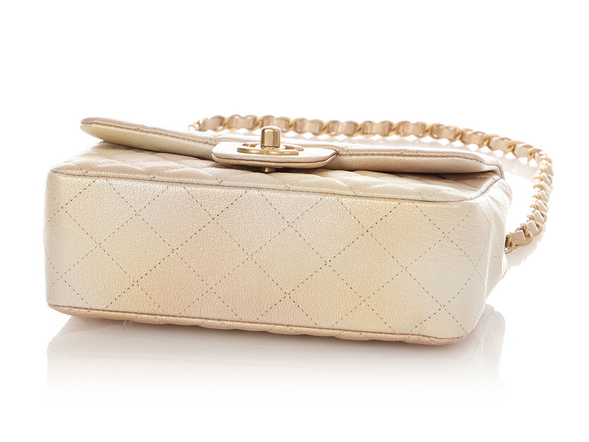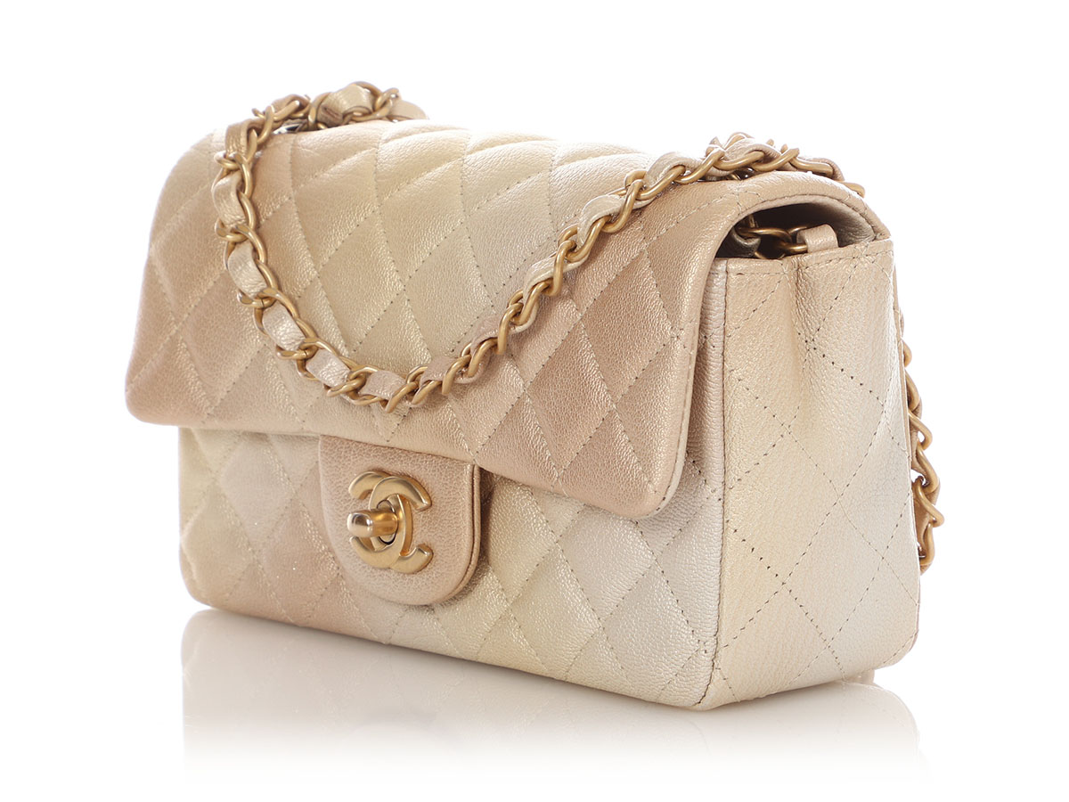 Beige and Gold Iridescent Quilted Calfskin Mini Rectangular Classic Flap Bag Gold Hardware, 2022