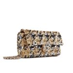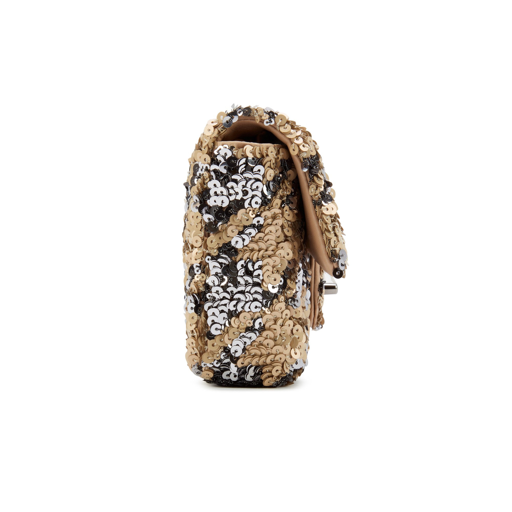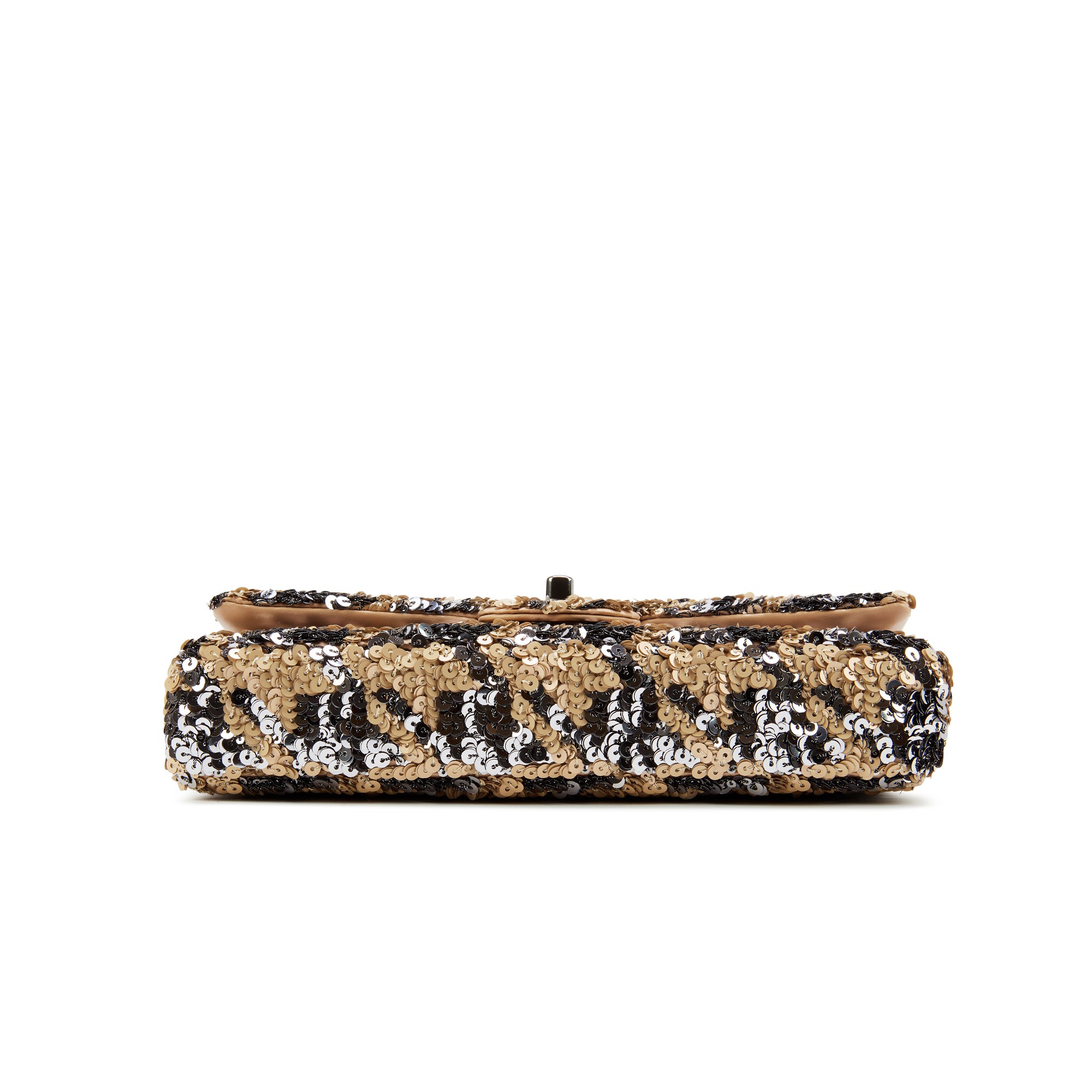 Beige and Gray Sequin and Lambskin East/West Single Flap Ruthenium Hardware, 2020