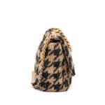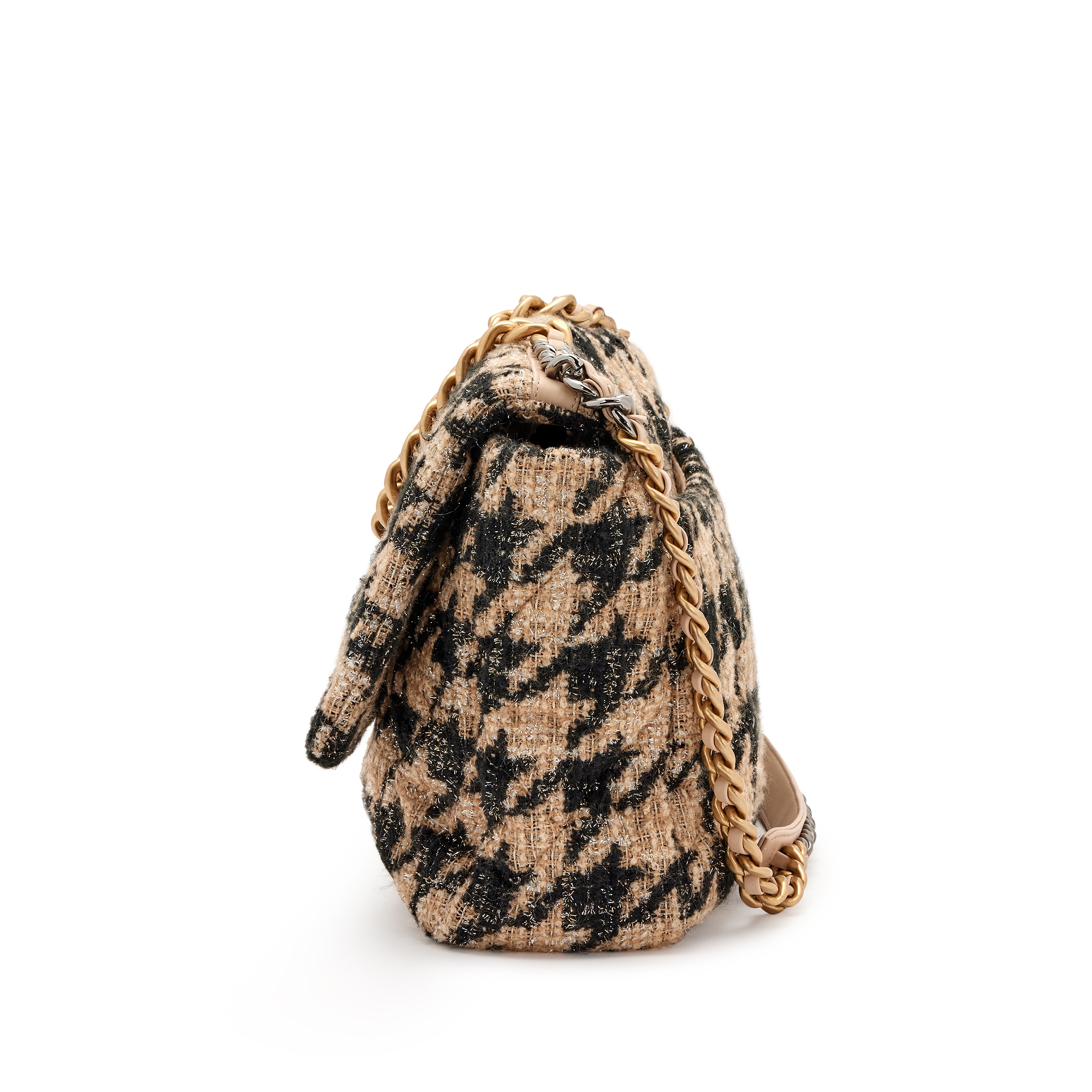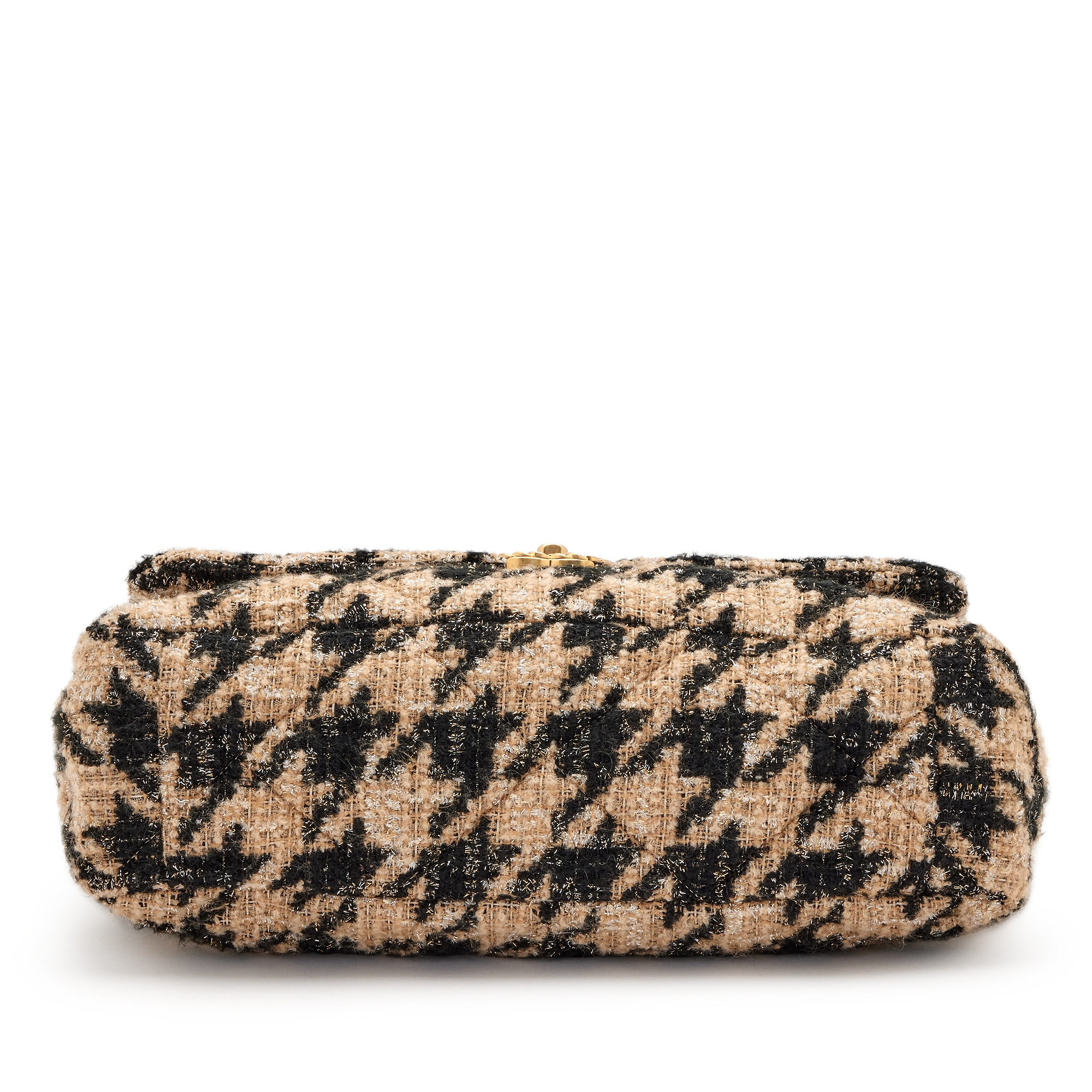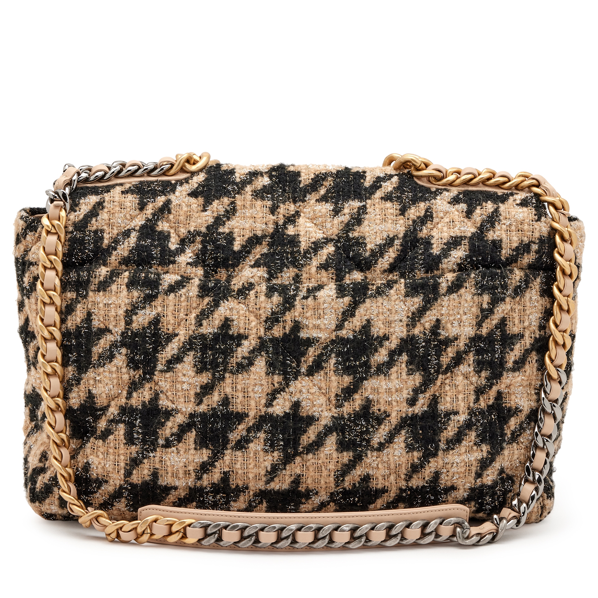 Beige, Black and Silver Houndstooth Tweed Maxi 19 Flap Brushed Gold and Ruthenium Hardware, 2019