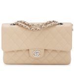 Chanel Beige Clair Quilted Caviar Medium Classic Double Flap Bag Silver Hardware, 2024The interior is lined in a tonal leatherIncludes care booklet, dust bag, and boxThis item is final sale