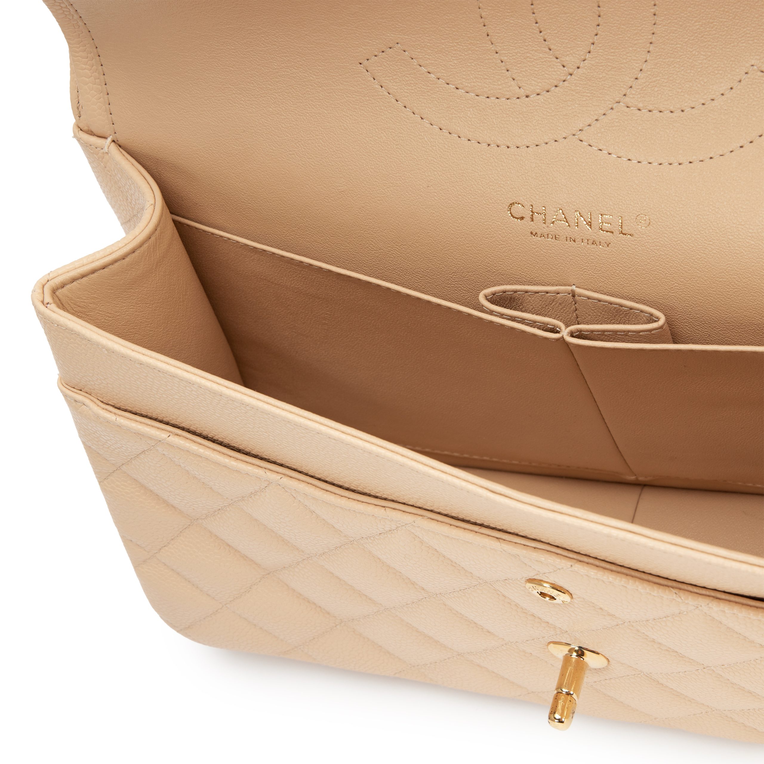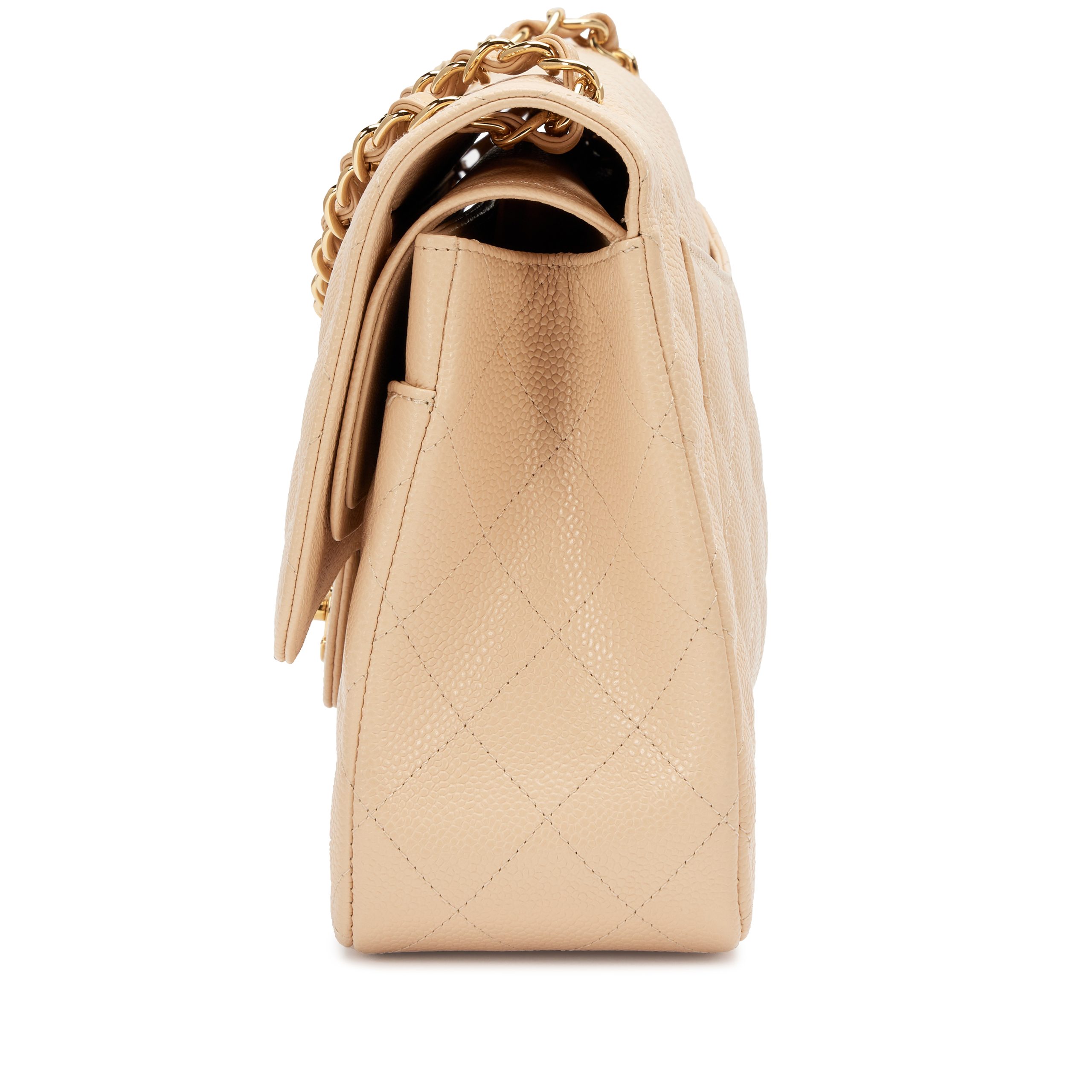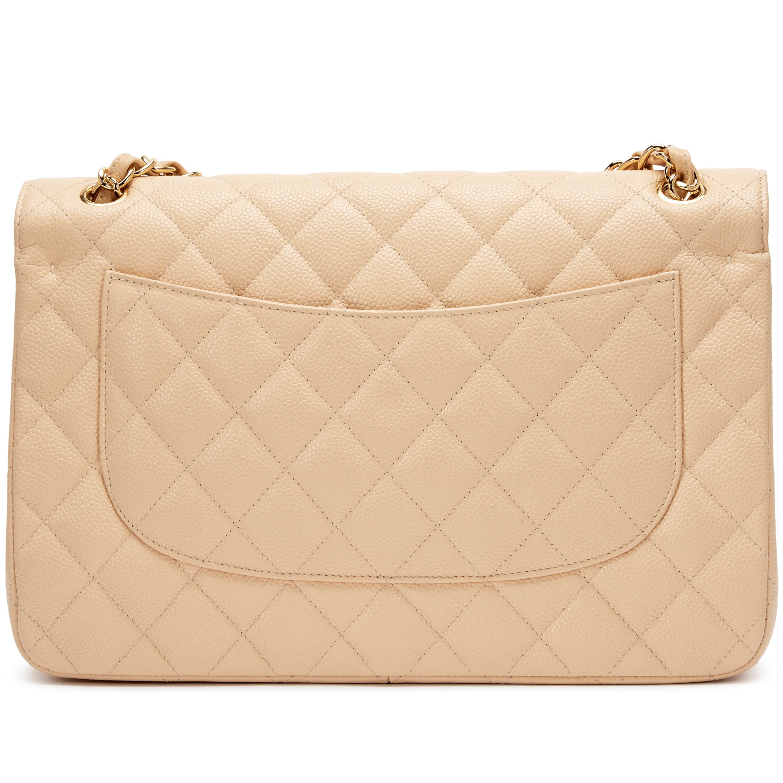 Chanel Beige Quilted Caviar Jumbo Classic Flap Bag Gold Hardware, 2014-2015The interior is lined in a tonal leatherIncludes authenticity card, information booklet, and dust bagThis item is final sale
