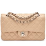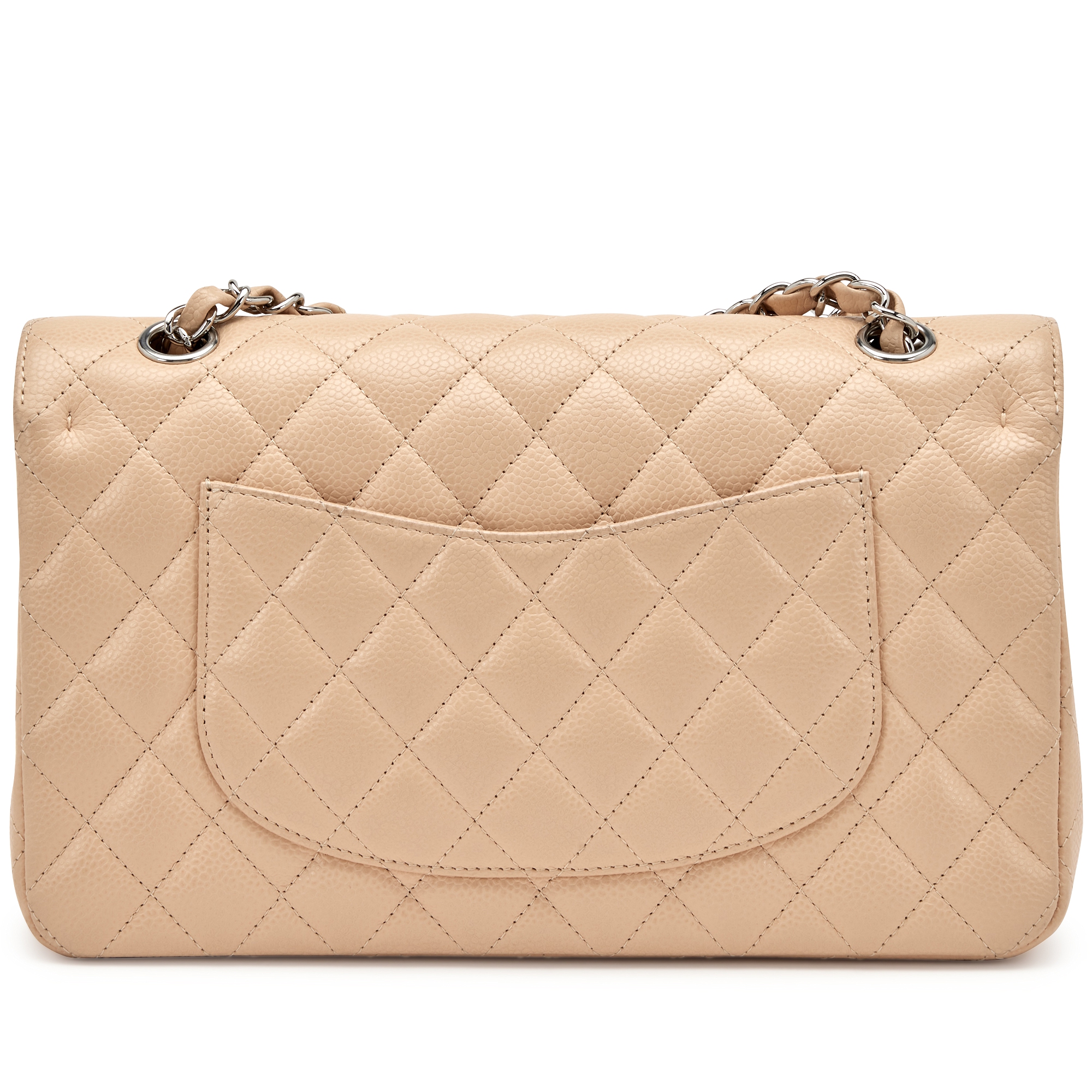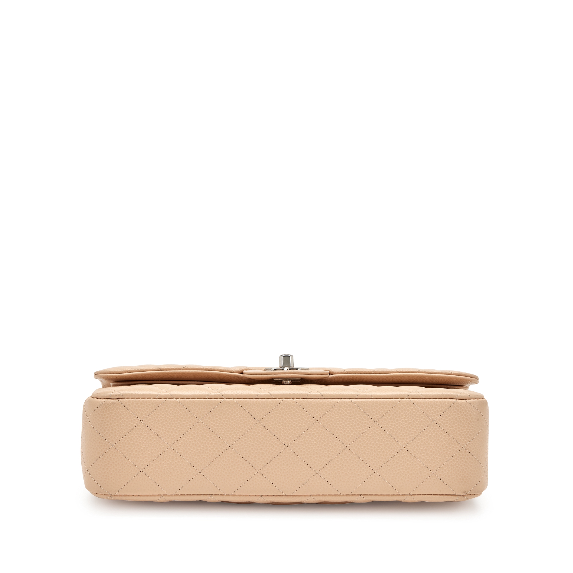 Chanel Beige Quilted Caviar Small Classic Double Flap Silver Hardware, 2010-2011The interior is lined in a tonal leather Includes authenticity card, care booklet, dust bag, and box This item is final sale