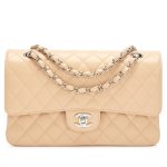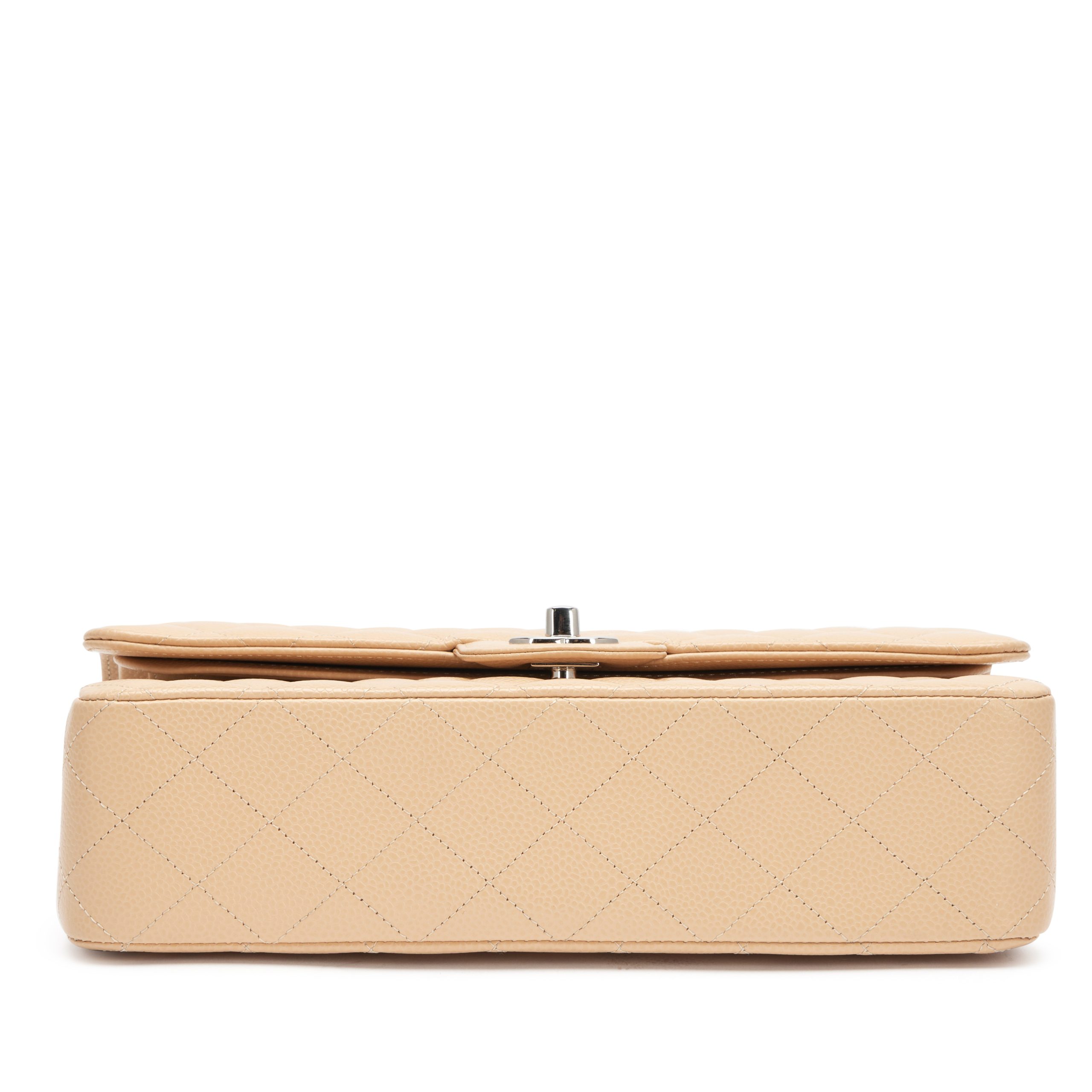 Chanel Beige Quited Caviar Medium Classic Double Flap Bag Silver Hardware, 2020sThe interior is lined in a tonal leatherIncludes dust bag and boxThis item is final sale