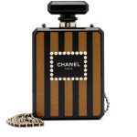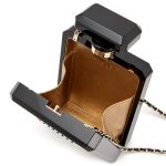 Black and Gold Glitter Plexiglass Imitation Pearl Embellished Perfume Bottle Minaudire Gold Hardware, 2017