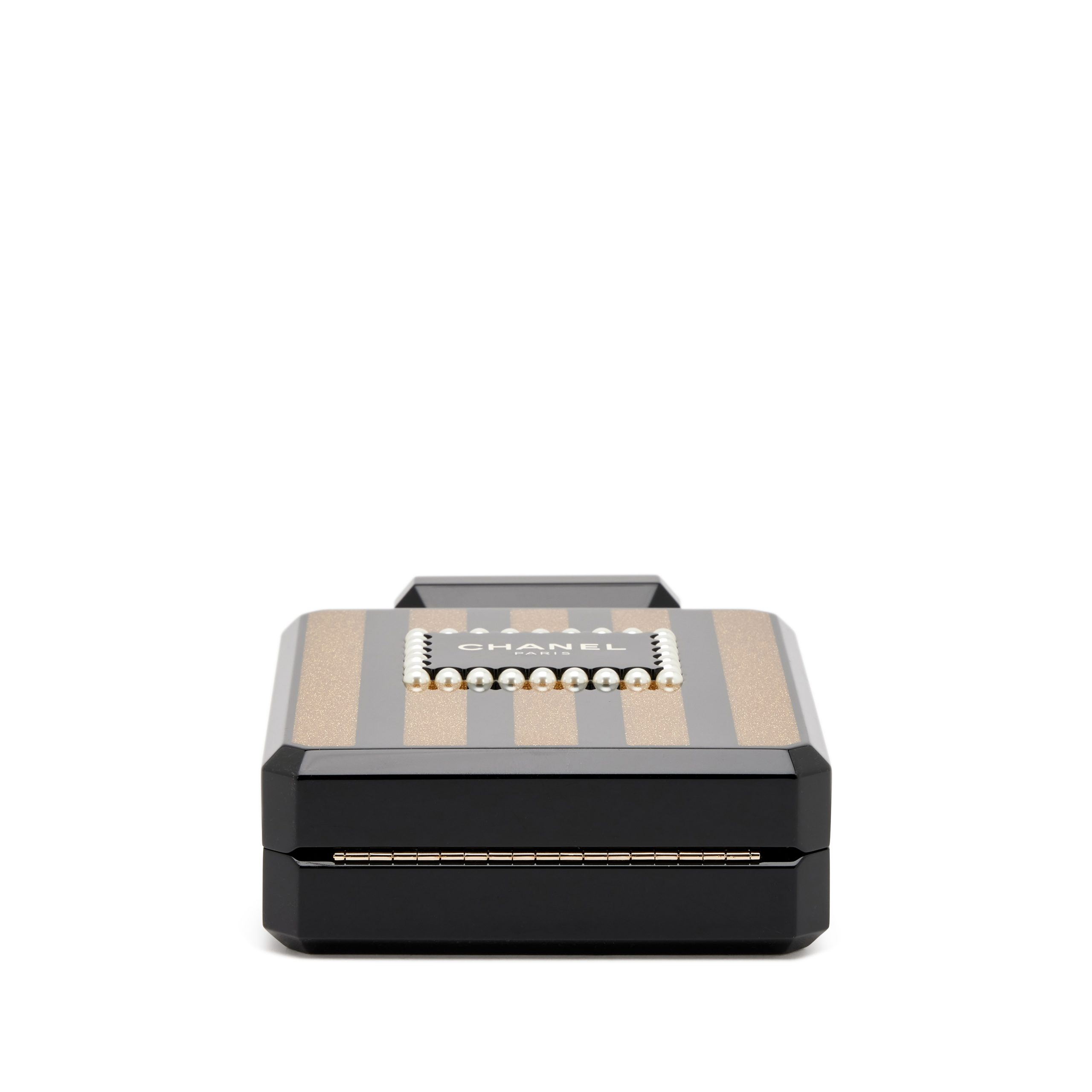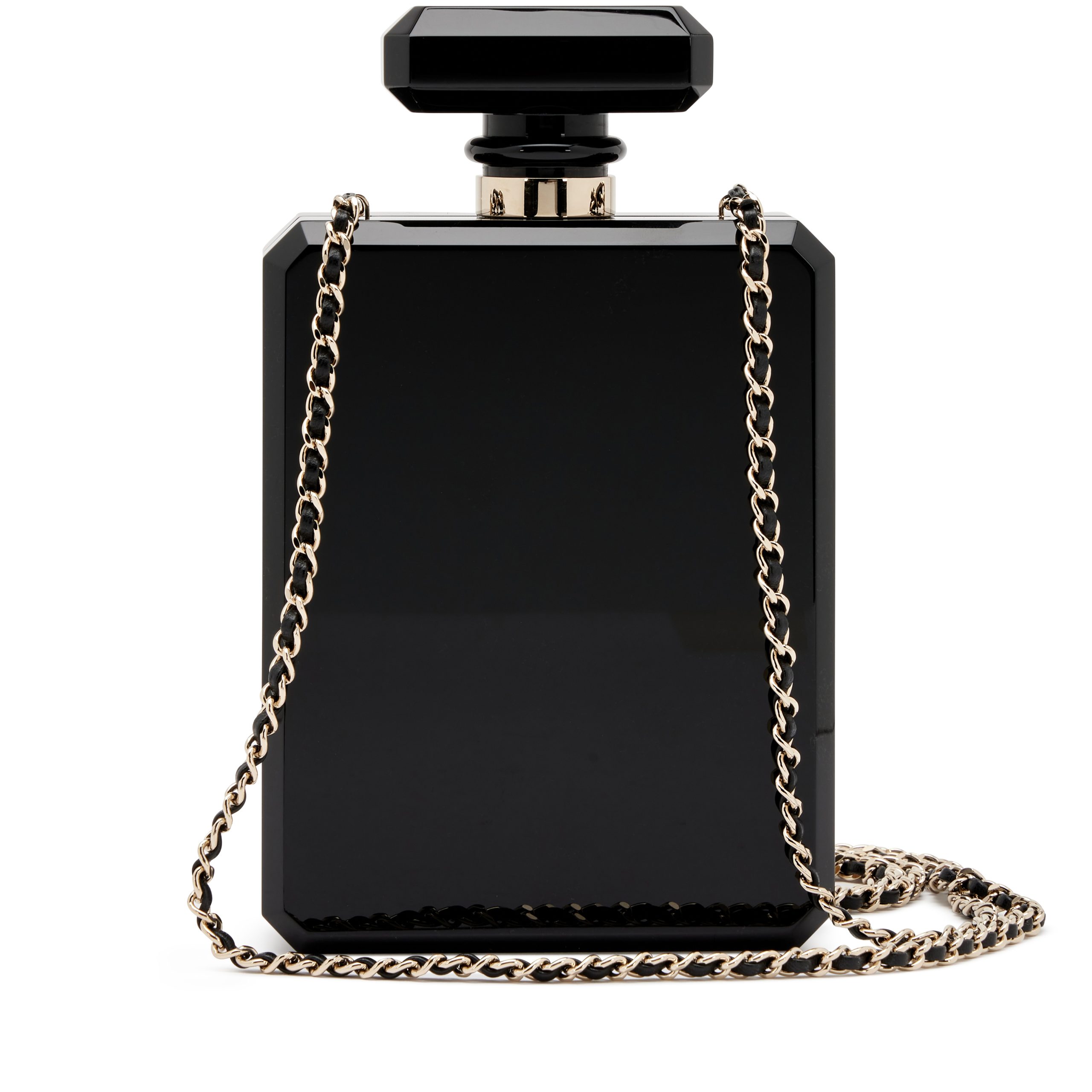 Chanel Black and Gold Glitter Plexiglass Imitation Pearl Embellished Perfume Bottle Minaudire Gold Hardware, 2017The interior is lined in a gold leatherIncludes care booklet, dust bag, and boxThis item is final sale