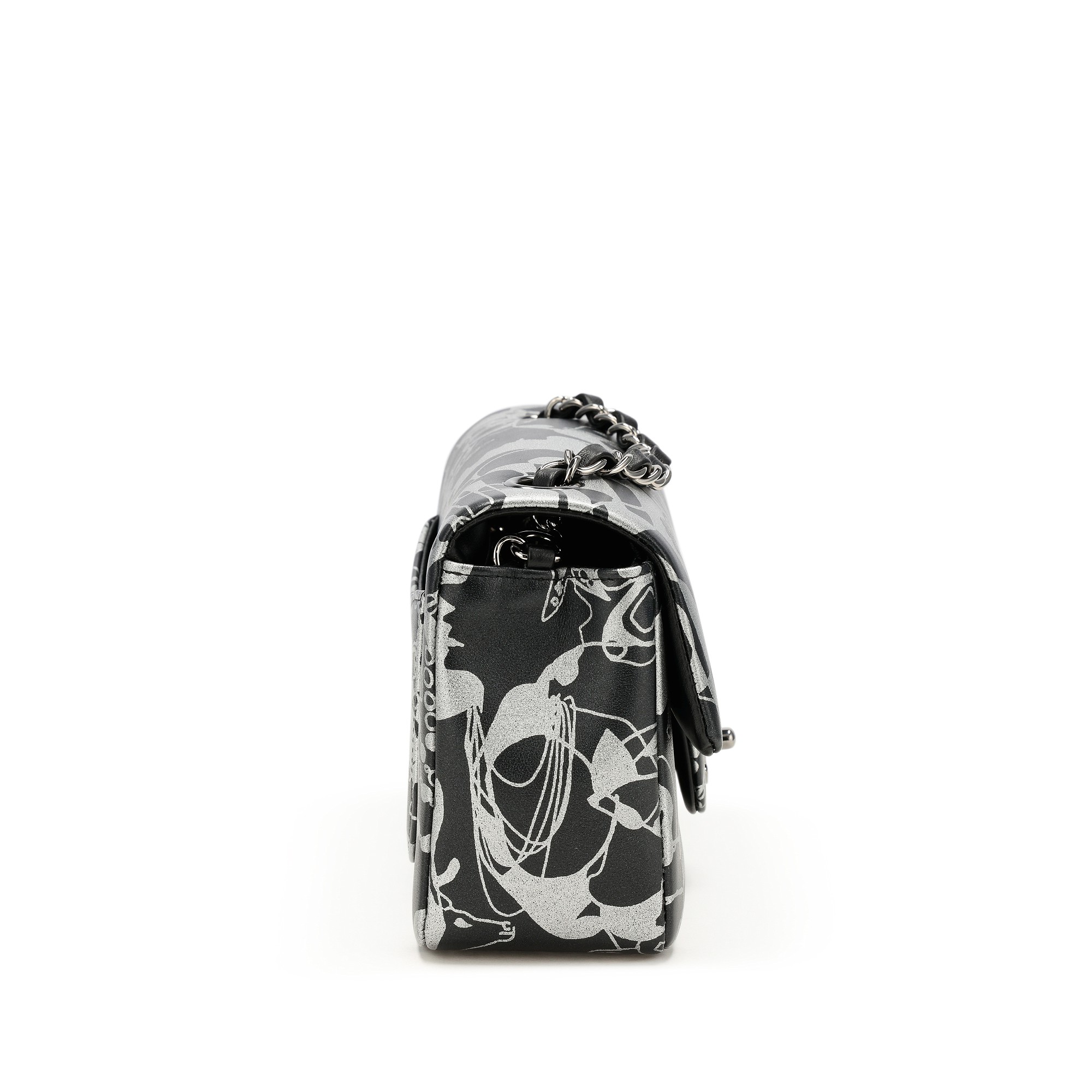 Black and Silver Printed Lambskin Mini Classic Flap Ruthenium Hardware, 2022