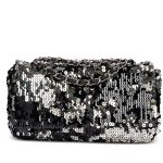 Chanel Black and Silver Sequin Flap Bag Silver Hardware, 2008-09The interior is lined with Black leatherIncludes felt, authenticity card, care booklet, dust bag and boxThis item is final sale