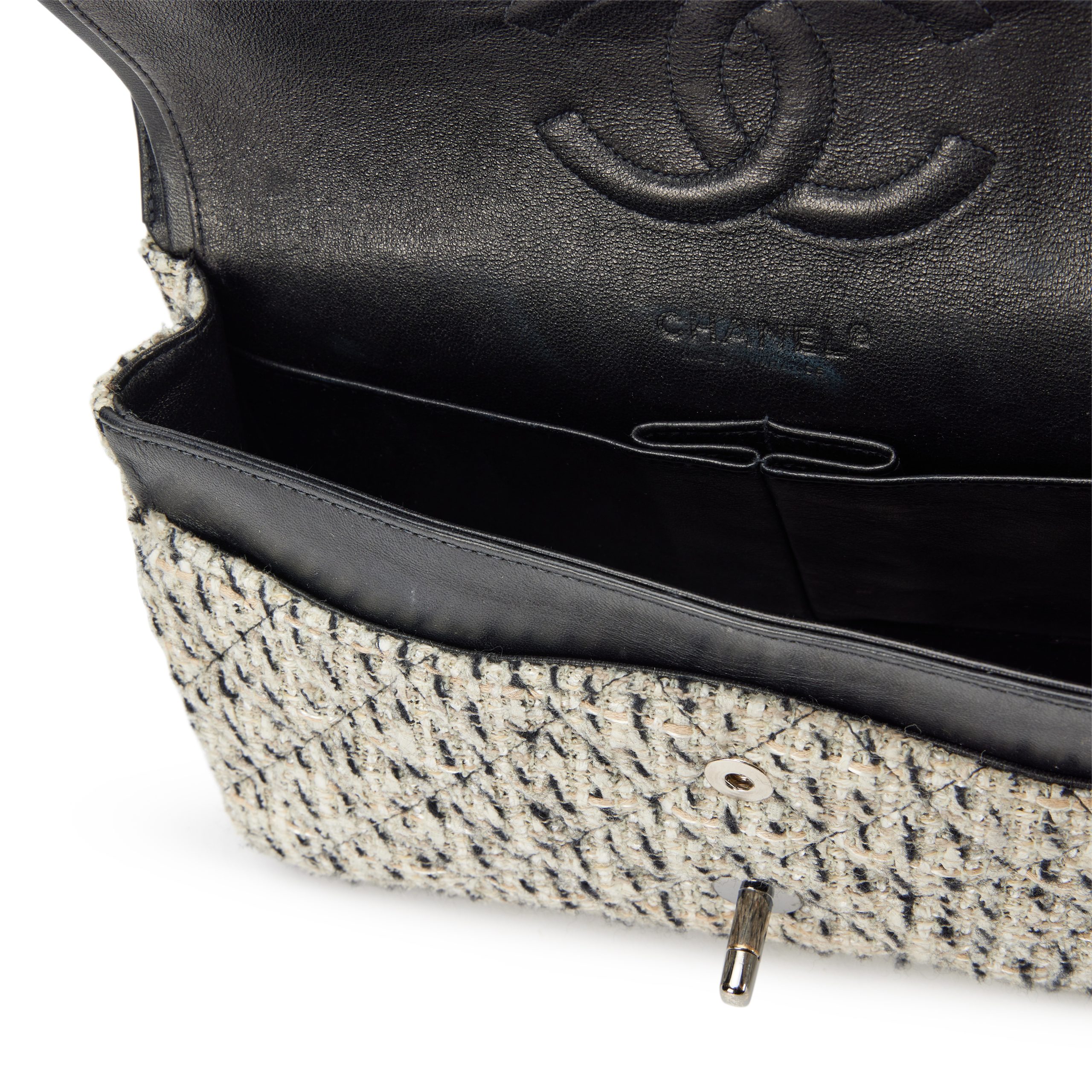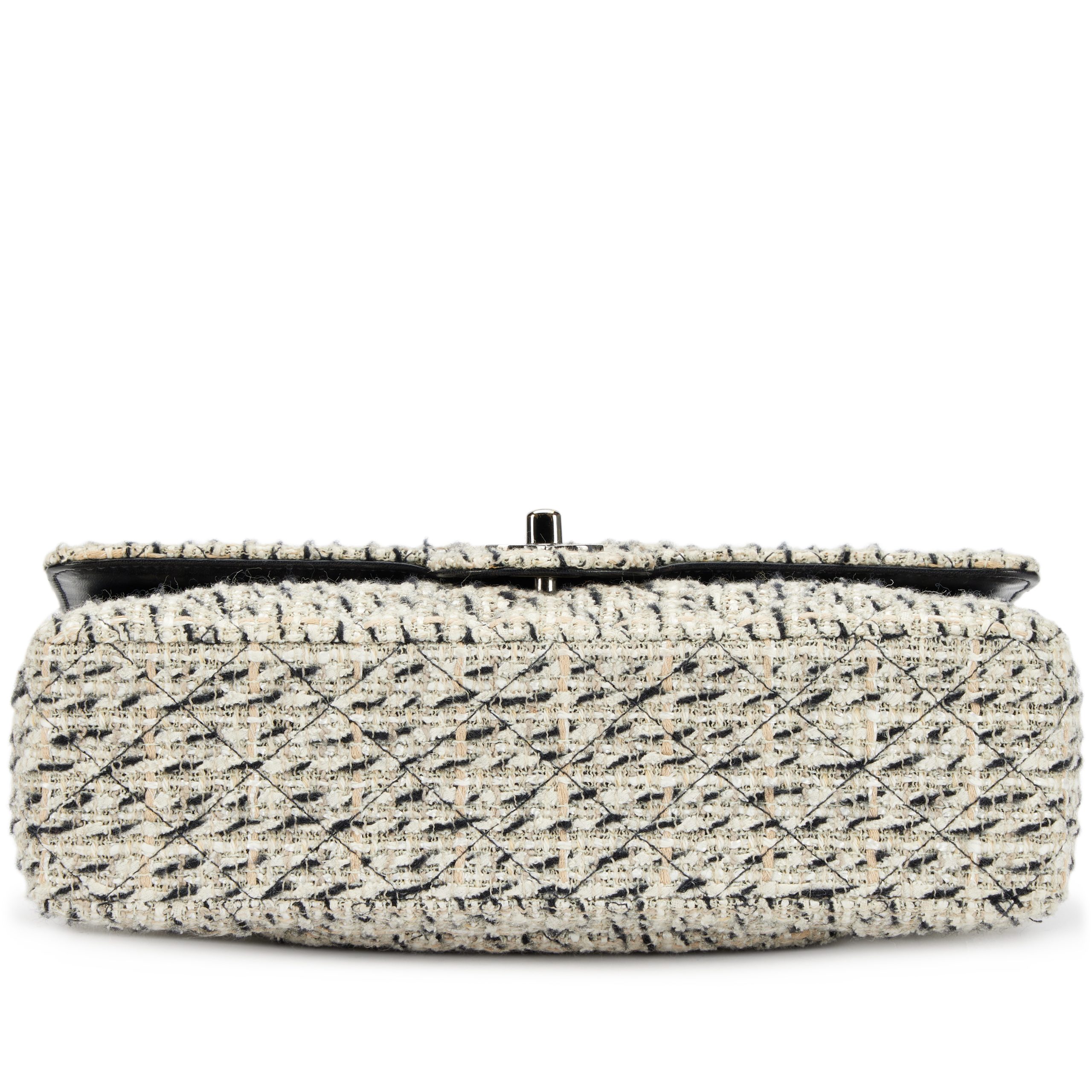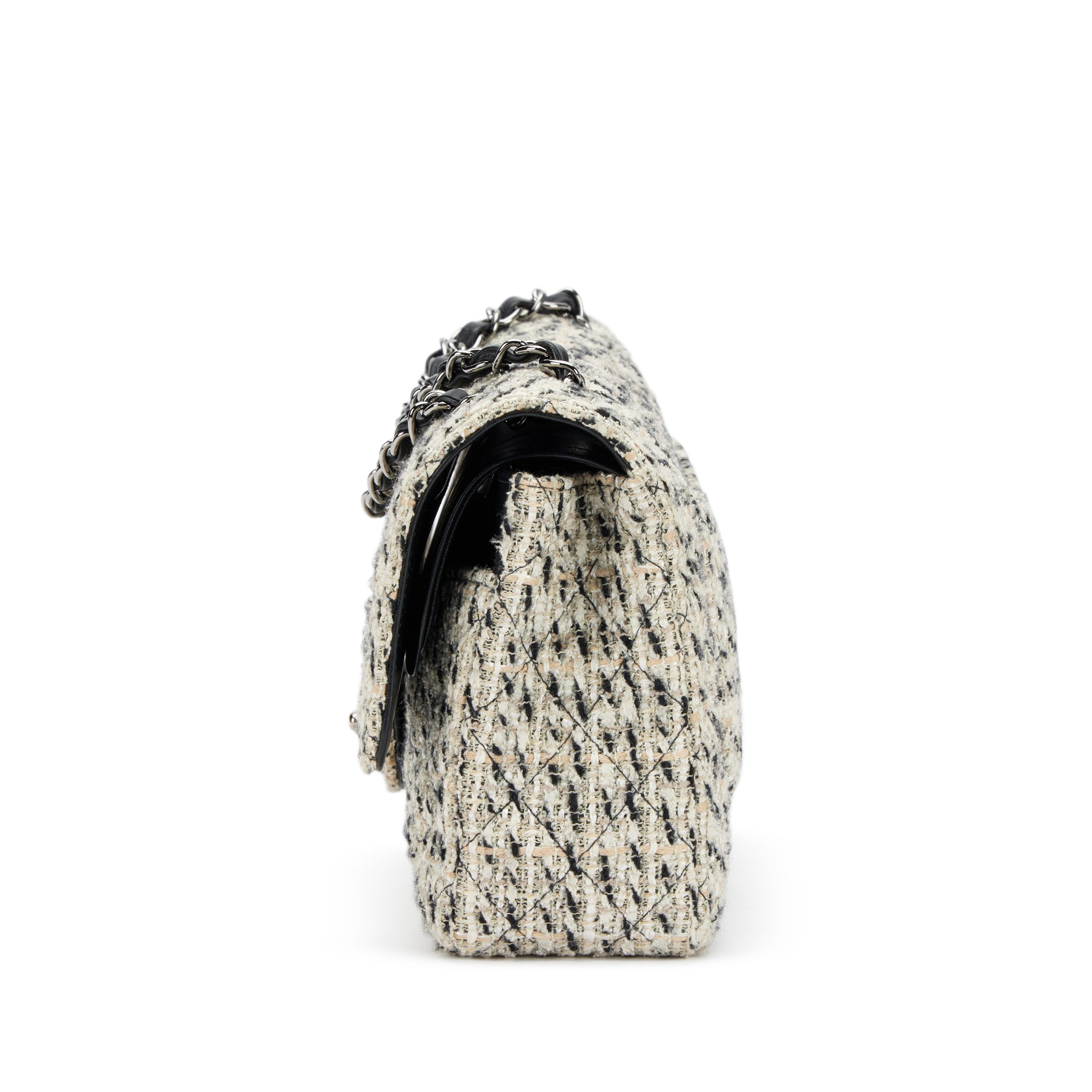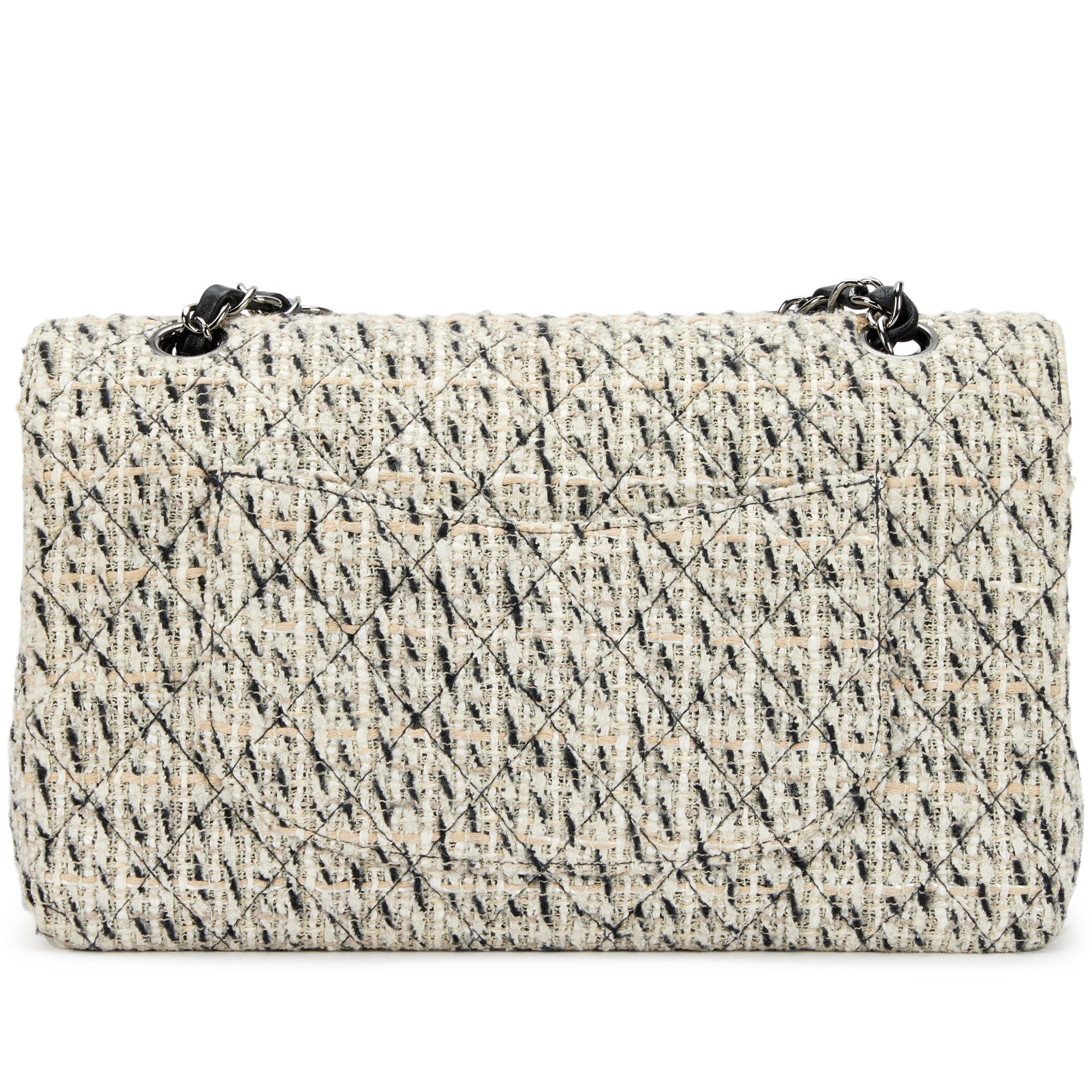 Chanel Black and White Multicolor Tweed Medium Classic Double Flap Bag Silver Hardware, 2002-2003The interior is lined in a black leatherIncludes dust bag and boxThis item is final sale