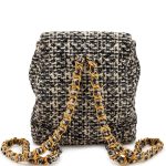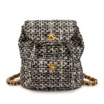 Black and White Quilted Sequin Tweed Medium Duma Timeless CC Backpack Gold Hardware, 1994