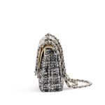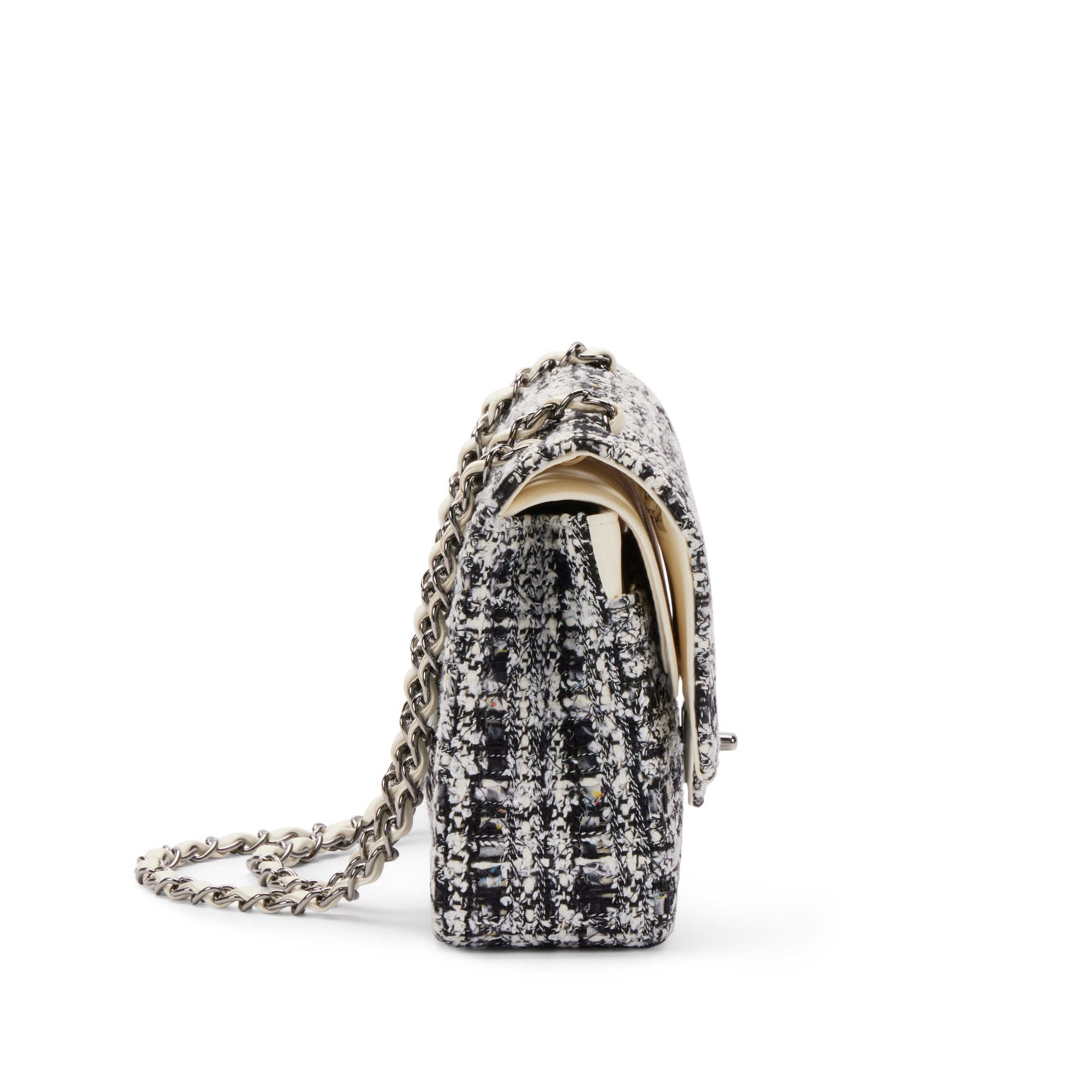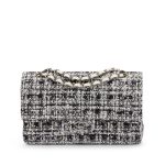 Black and White Quilted Tweed Medium Classic Double Flap Ruthenium Hardware, 2014-2015