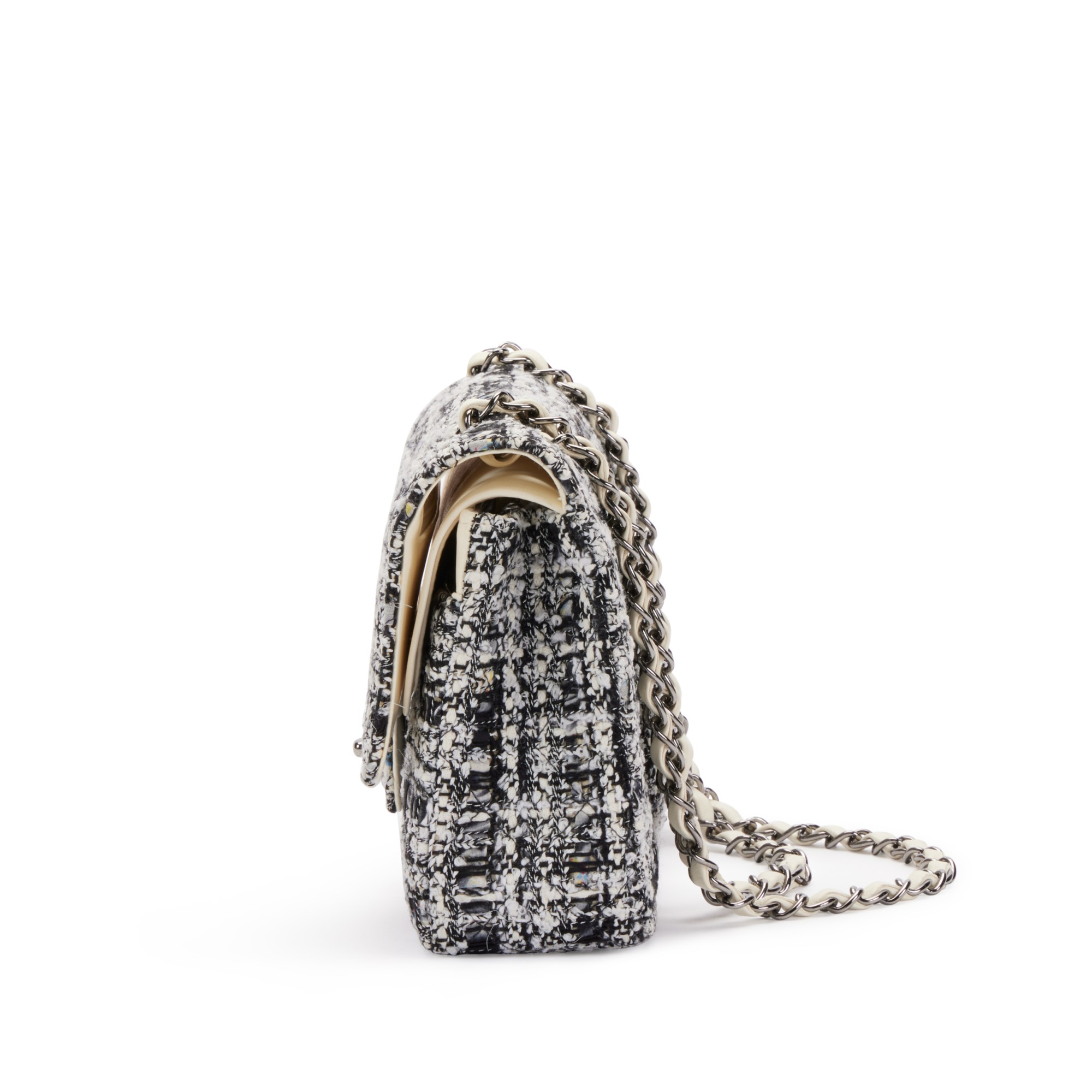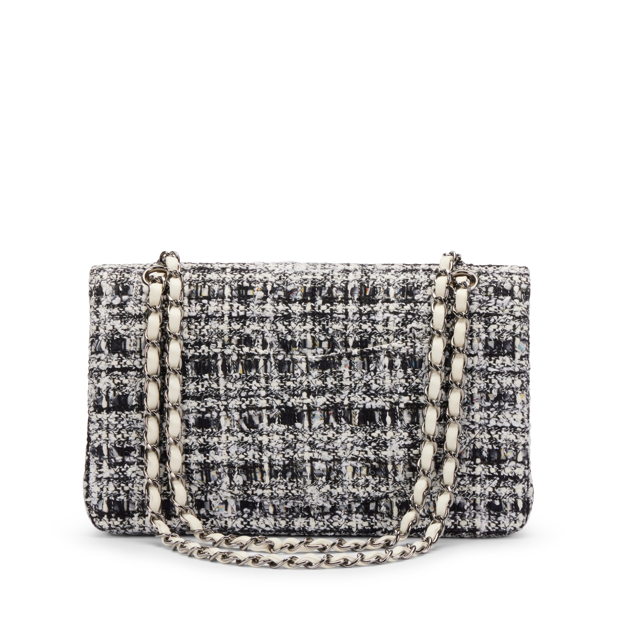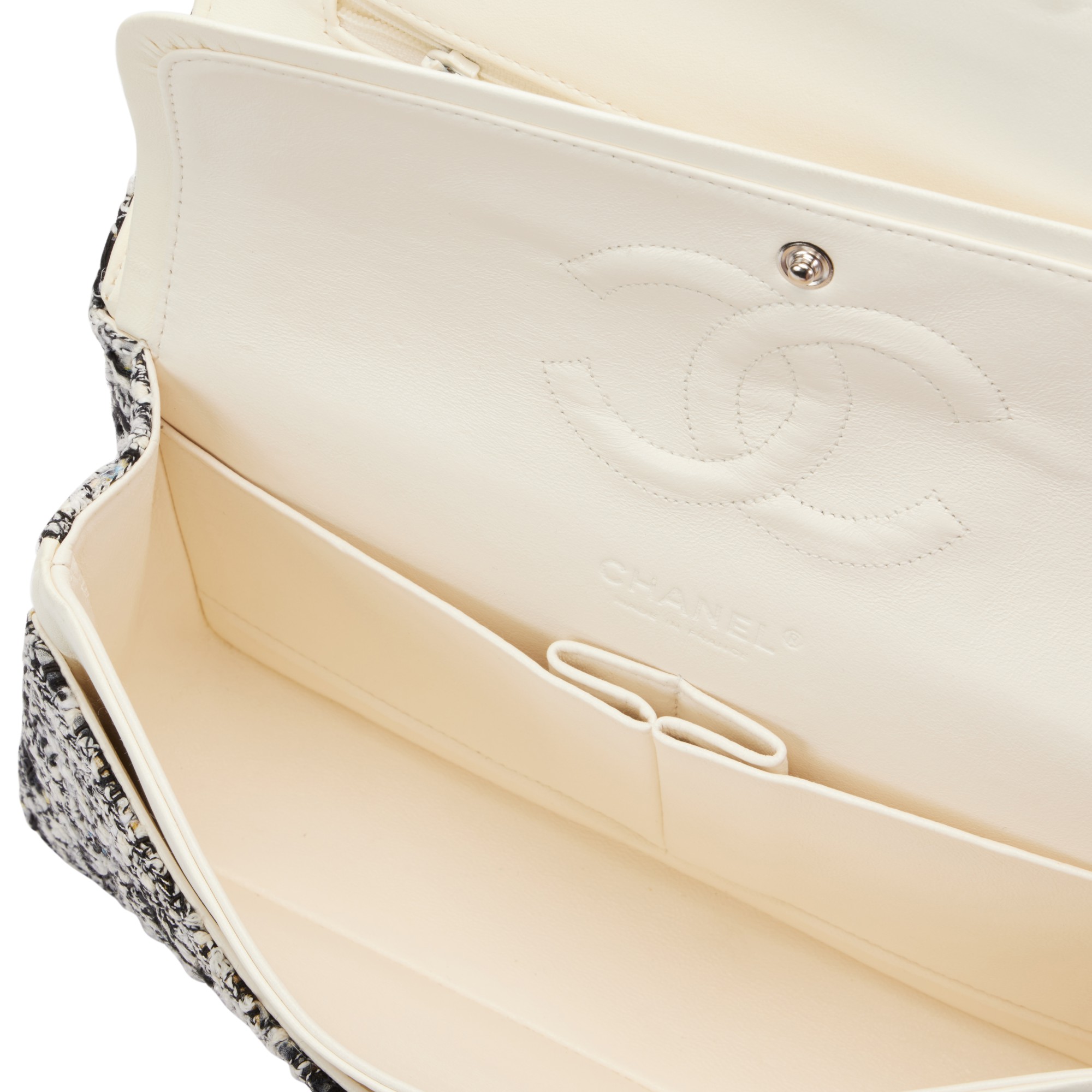Chanel Black and White Quilted Tweed Medium Classic Double Flap Ruthenium Hardware, 2014-2015This bag is lined with white leatherIncludes dustbagThis item is final sale