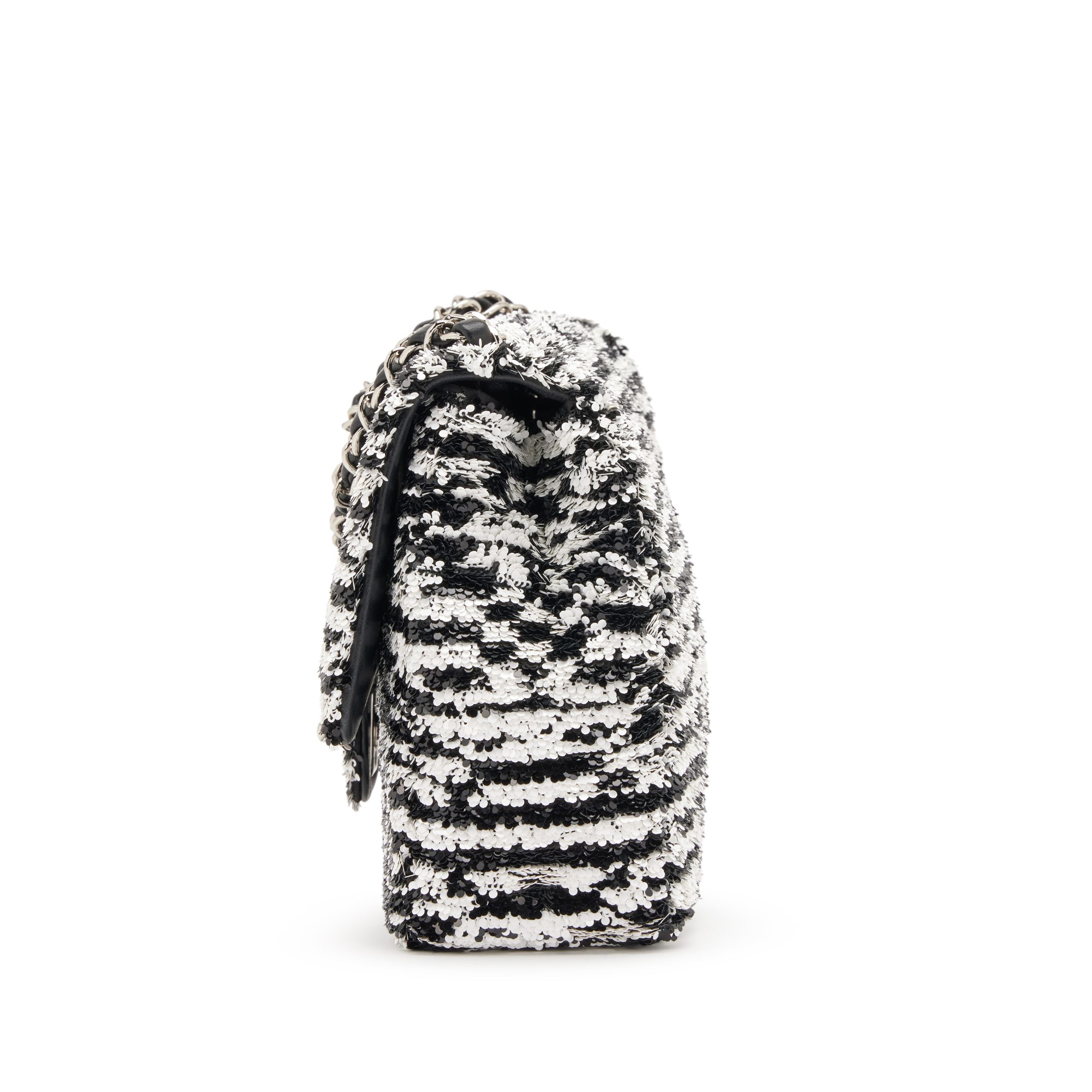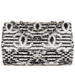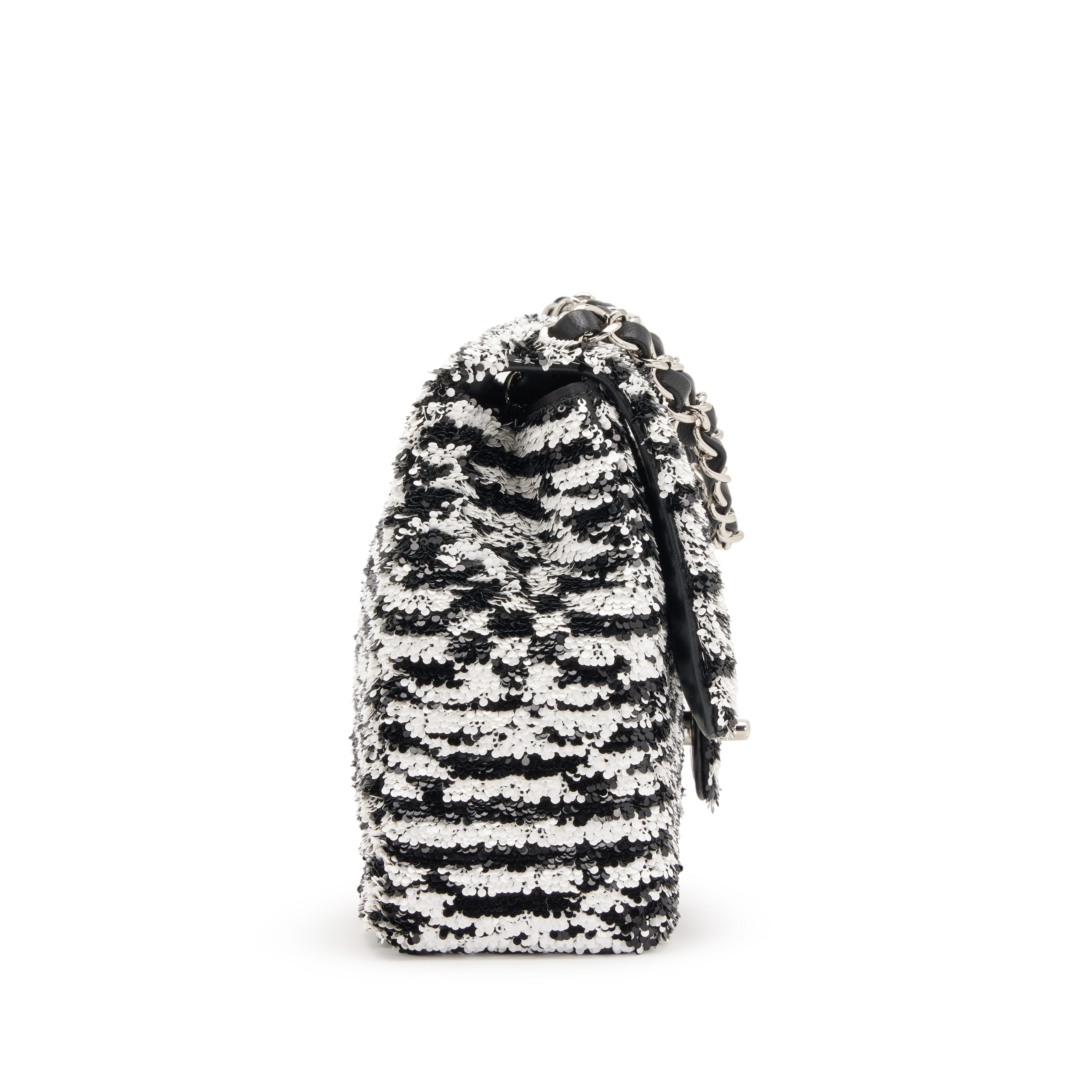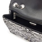 Black and White Sequin CC Logo and Black Lambskin Medium Single Flap Bag Silver Hardware, 2024