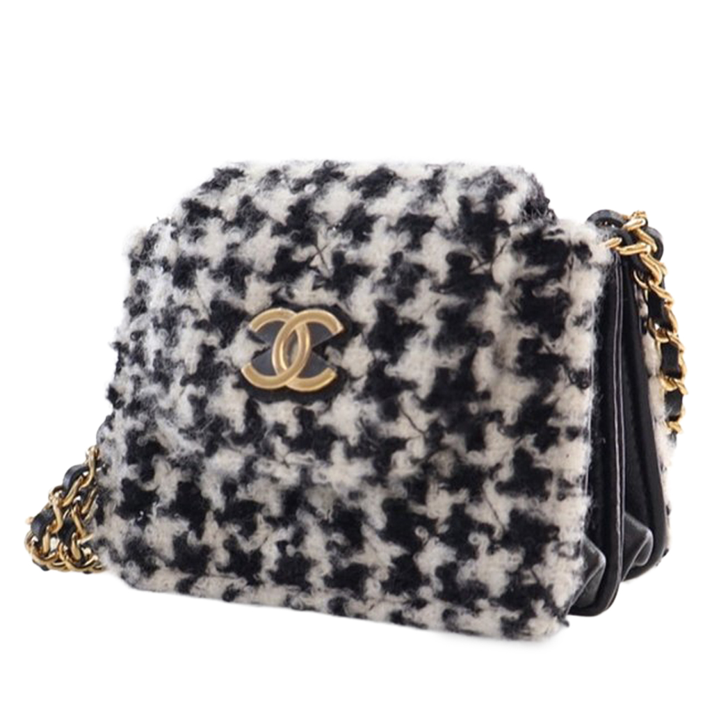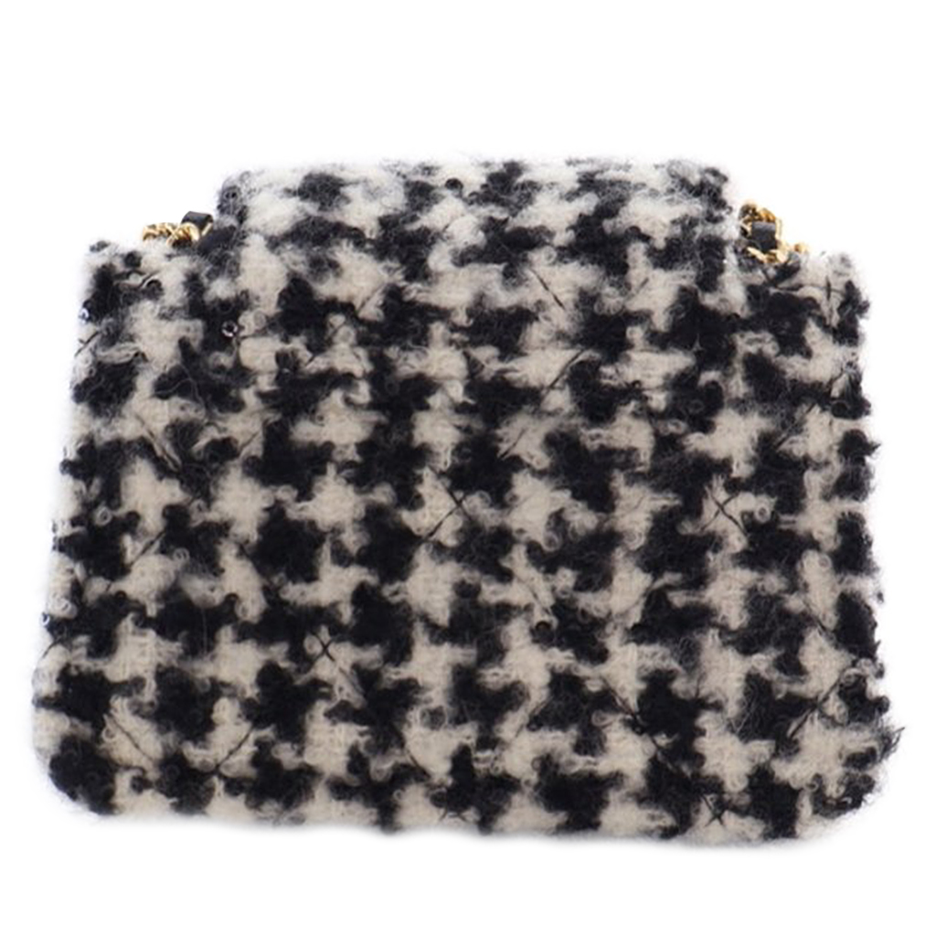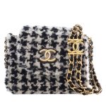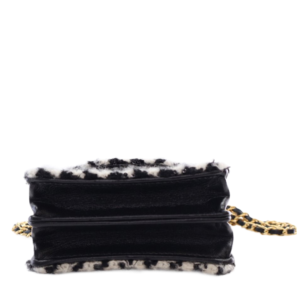 Black and White Tweed and Shearling Sequin Mini CC Accordion Flap Bag Gold Hardware, 2020s