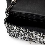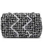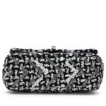 Black and White Tweed Sequin Mini Rectangular Classic Single Flap Bag Silver Hardware, 2021