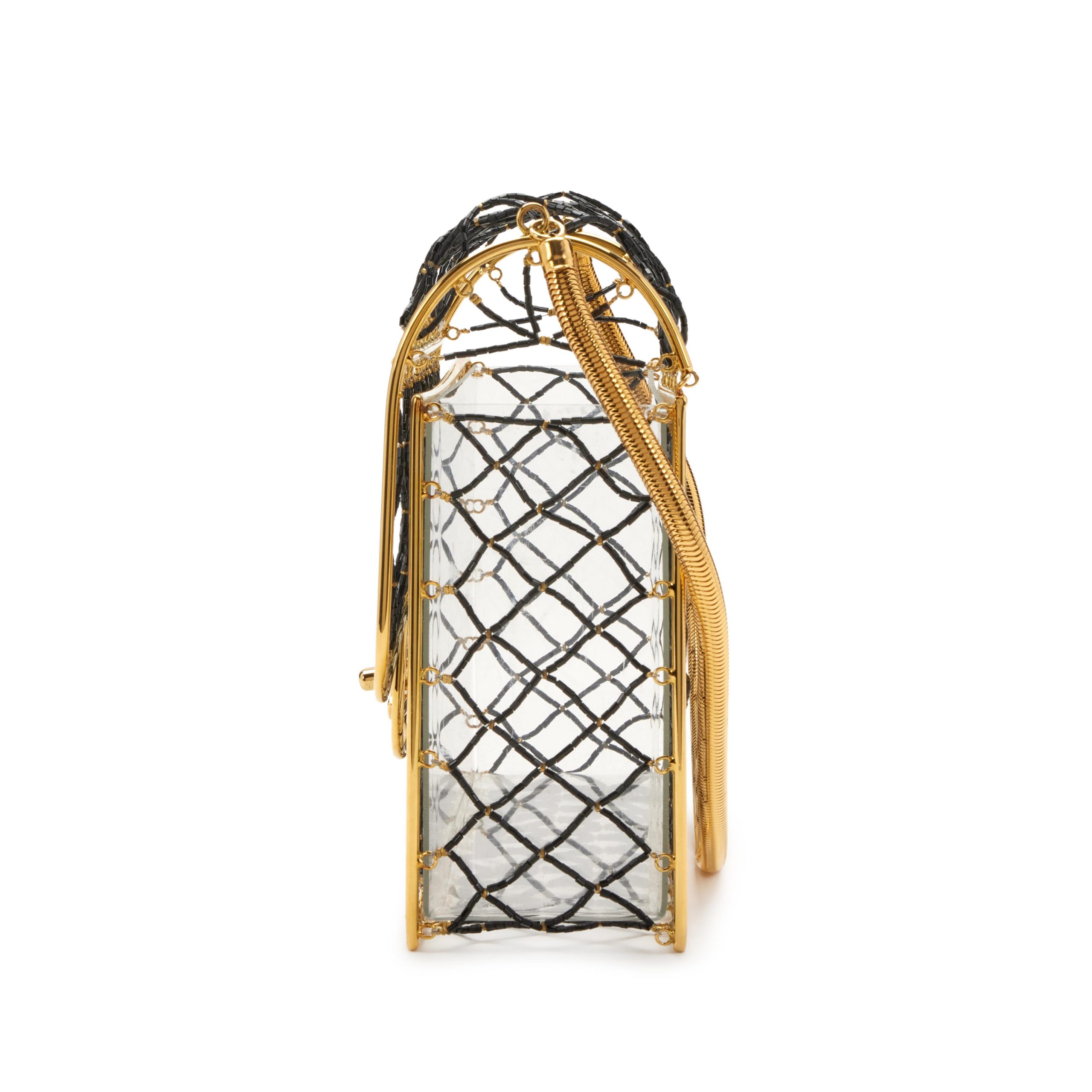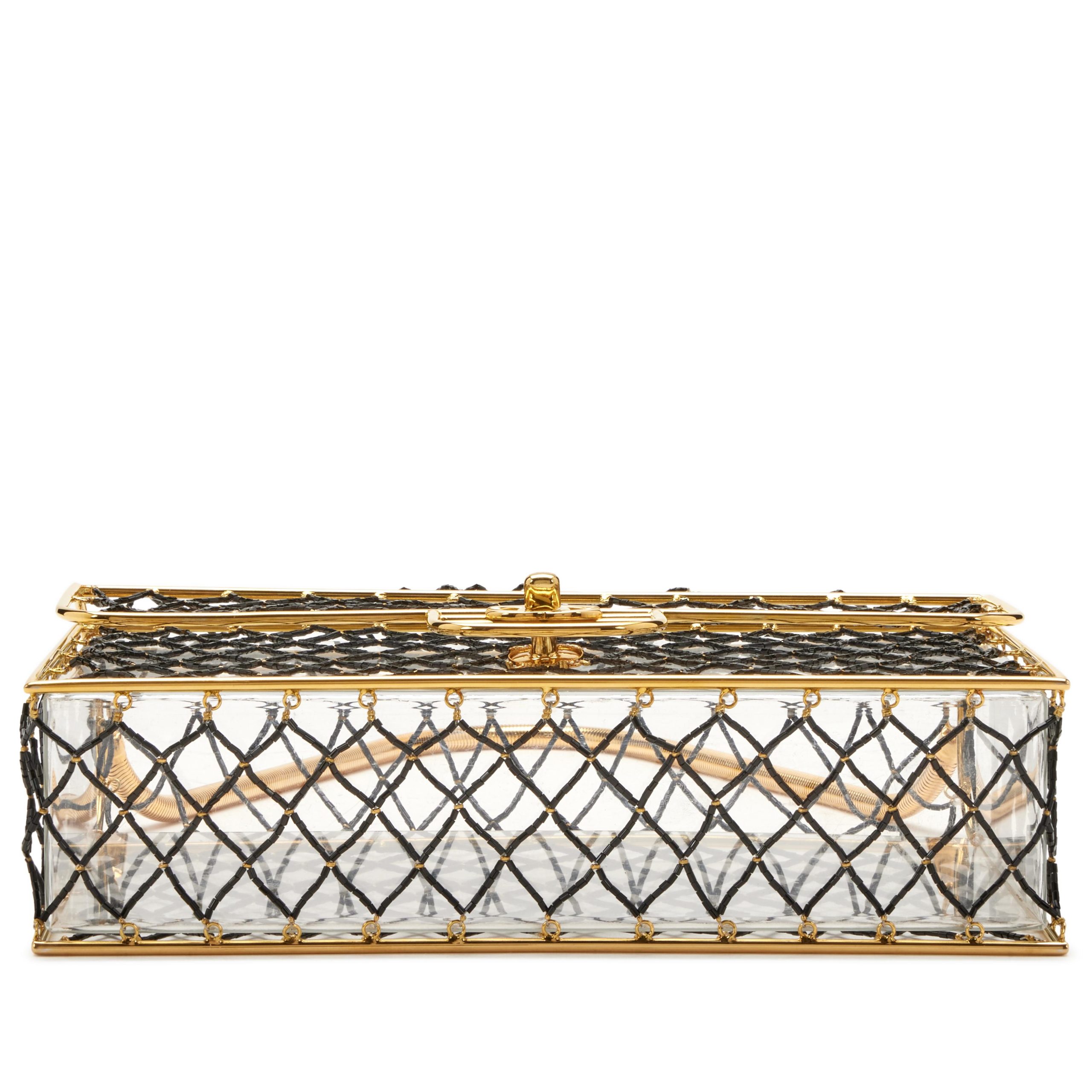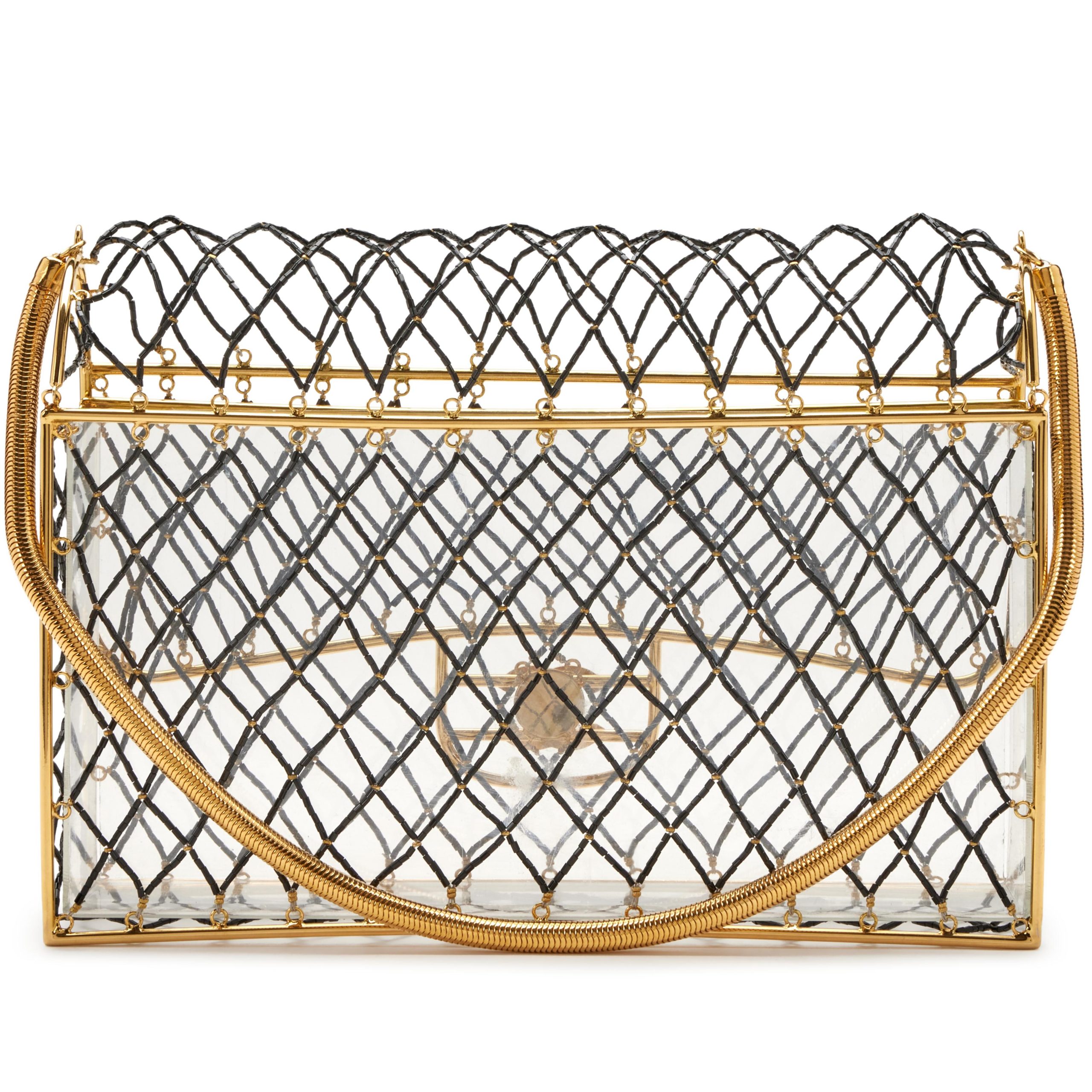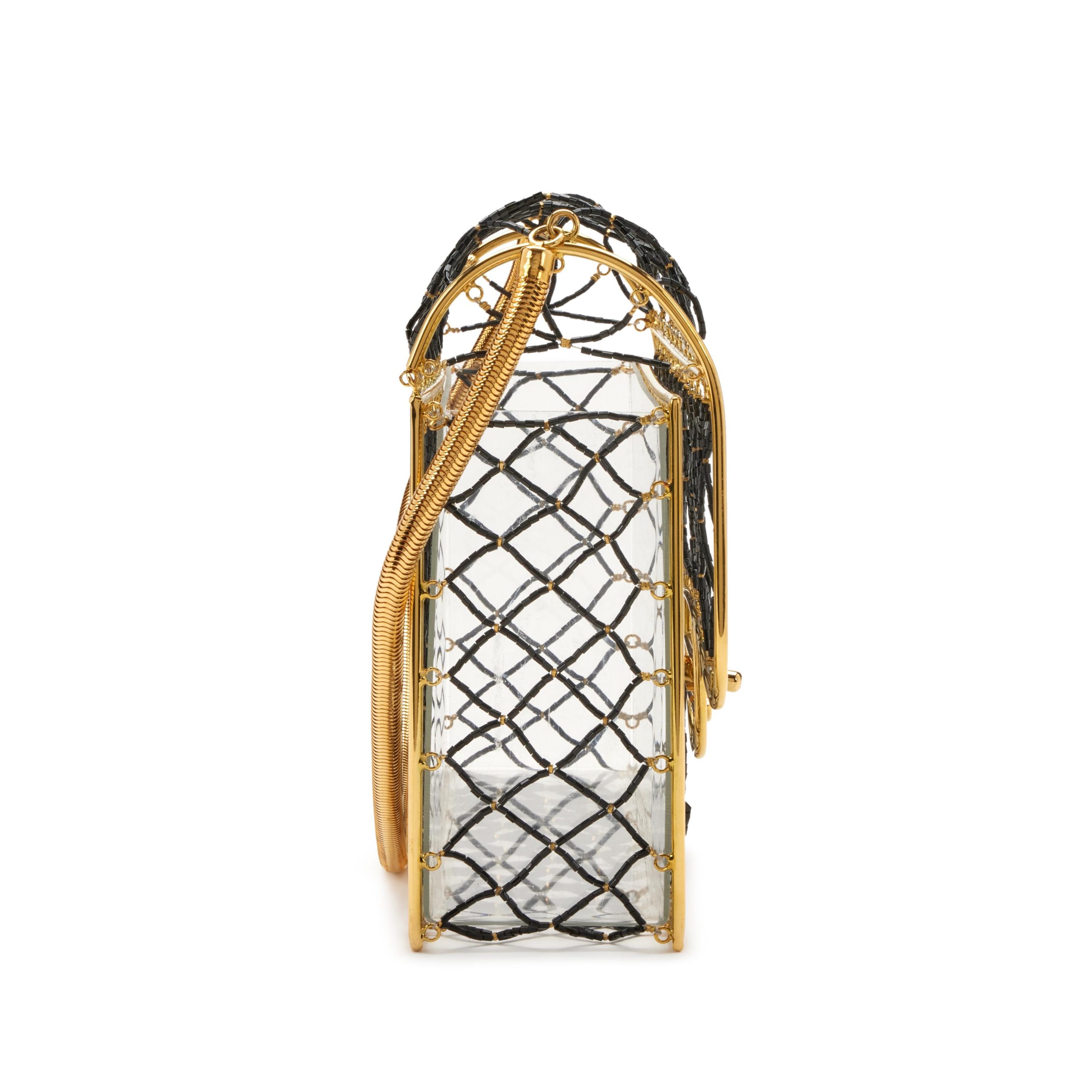 Black Beaded Lucite Medium Cage Flap Gold Hardware, 1990s