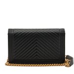 Black Caviar Chevron Boy WOC Wallet on Chain Gold Hardware, 2021
