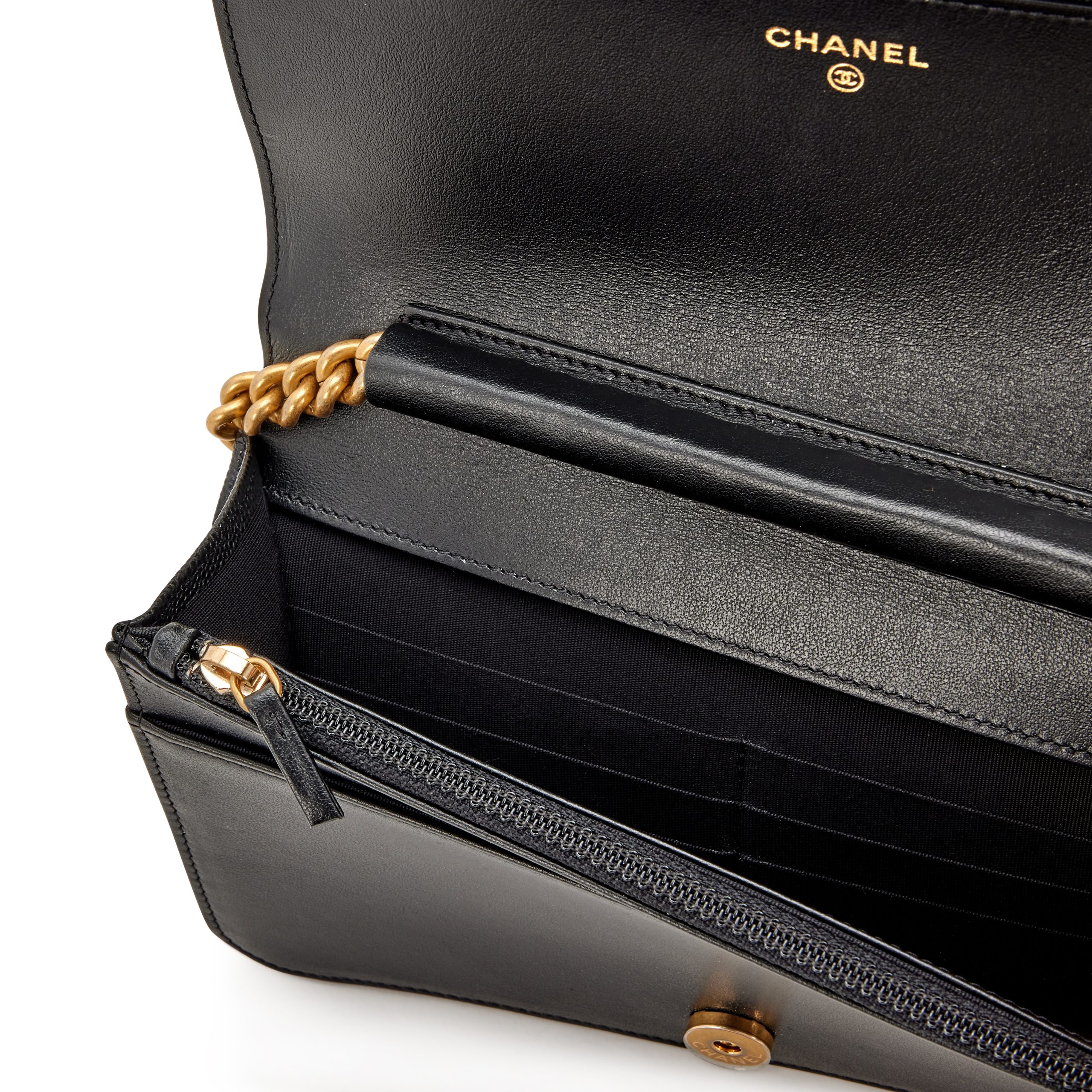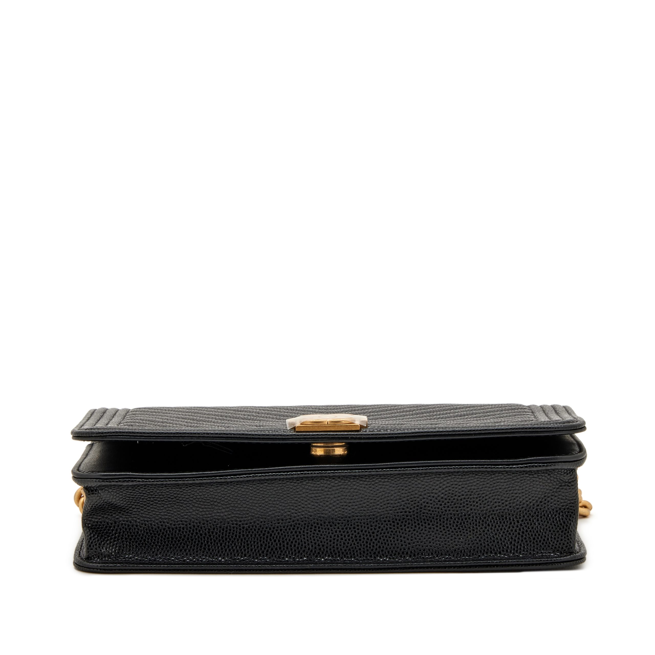 Chanel Black Caviar Chevron Boy WOC Wallet on Chain Gold Hardware, 2021The interior is lined in a tonal leatherIncludes care booklet, felt protector, dust bag, and boxThis item is final sale