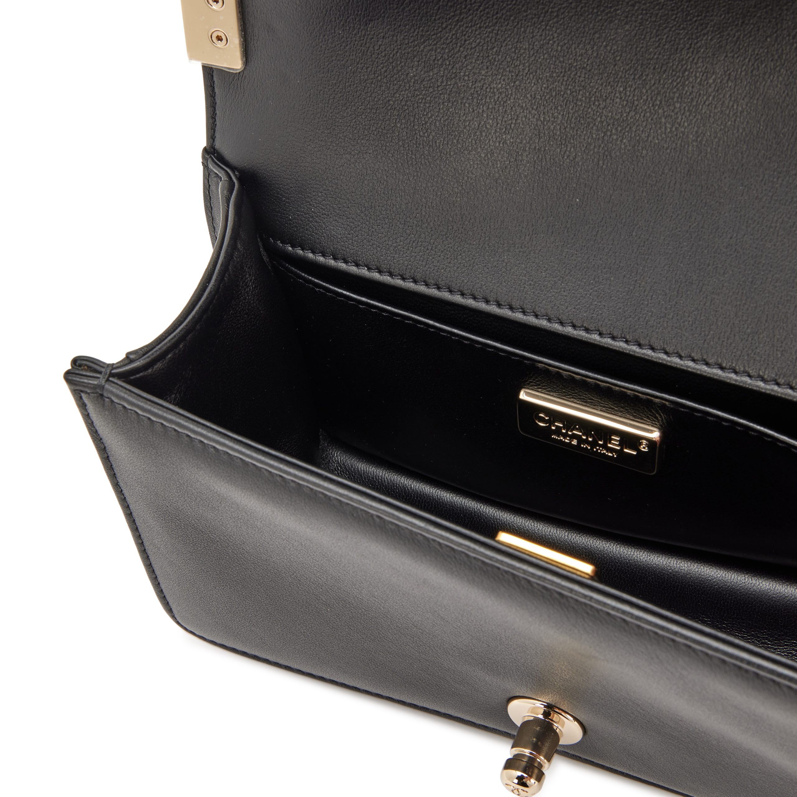 Chanel Black Chain Quilted Lambskin Small Boy Flap Bag Gold Hardware, 2022The interior is lined in a tonal leatherIncludes care booklet, camellia flower, dust bag, and boxThis item is final sale