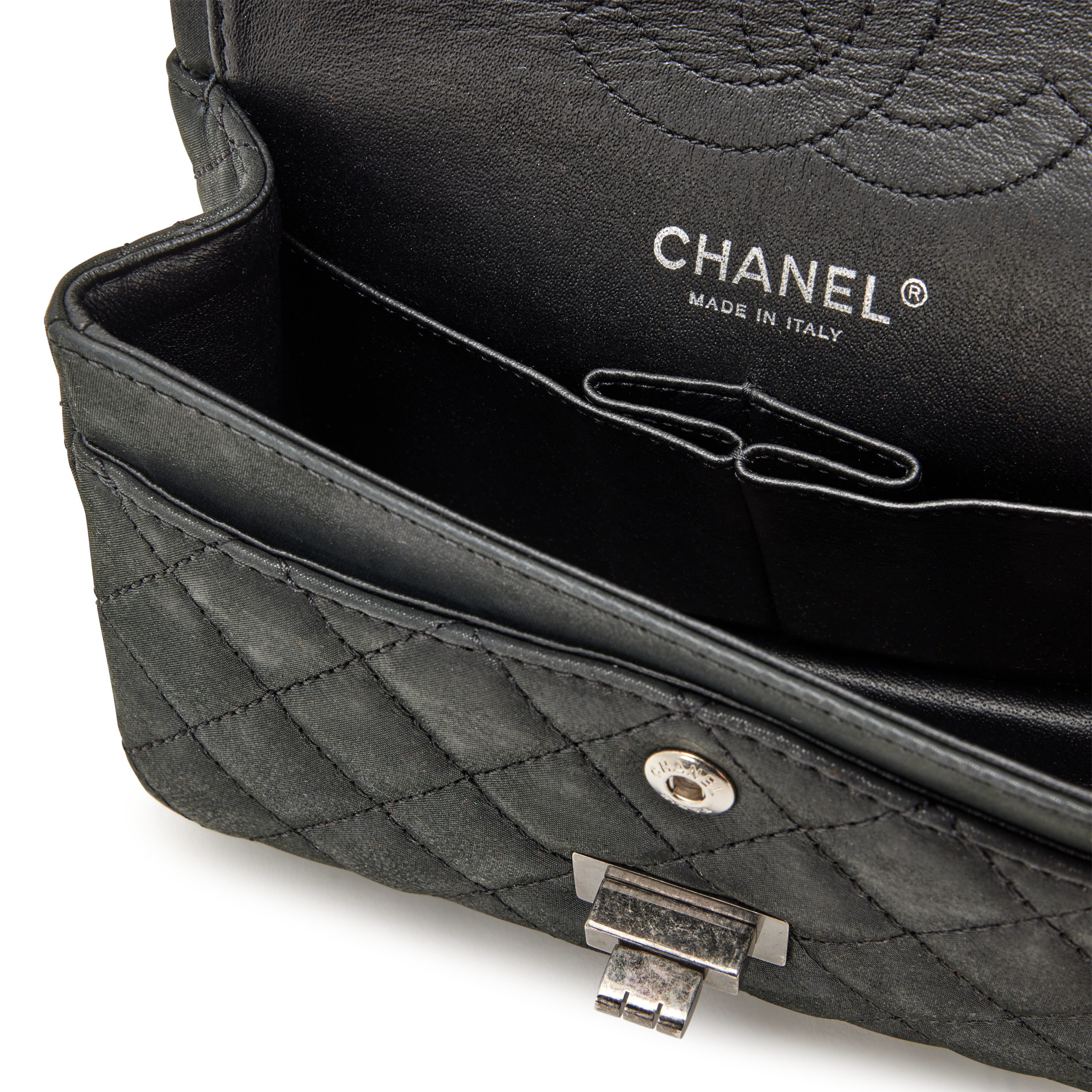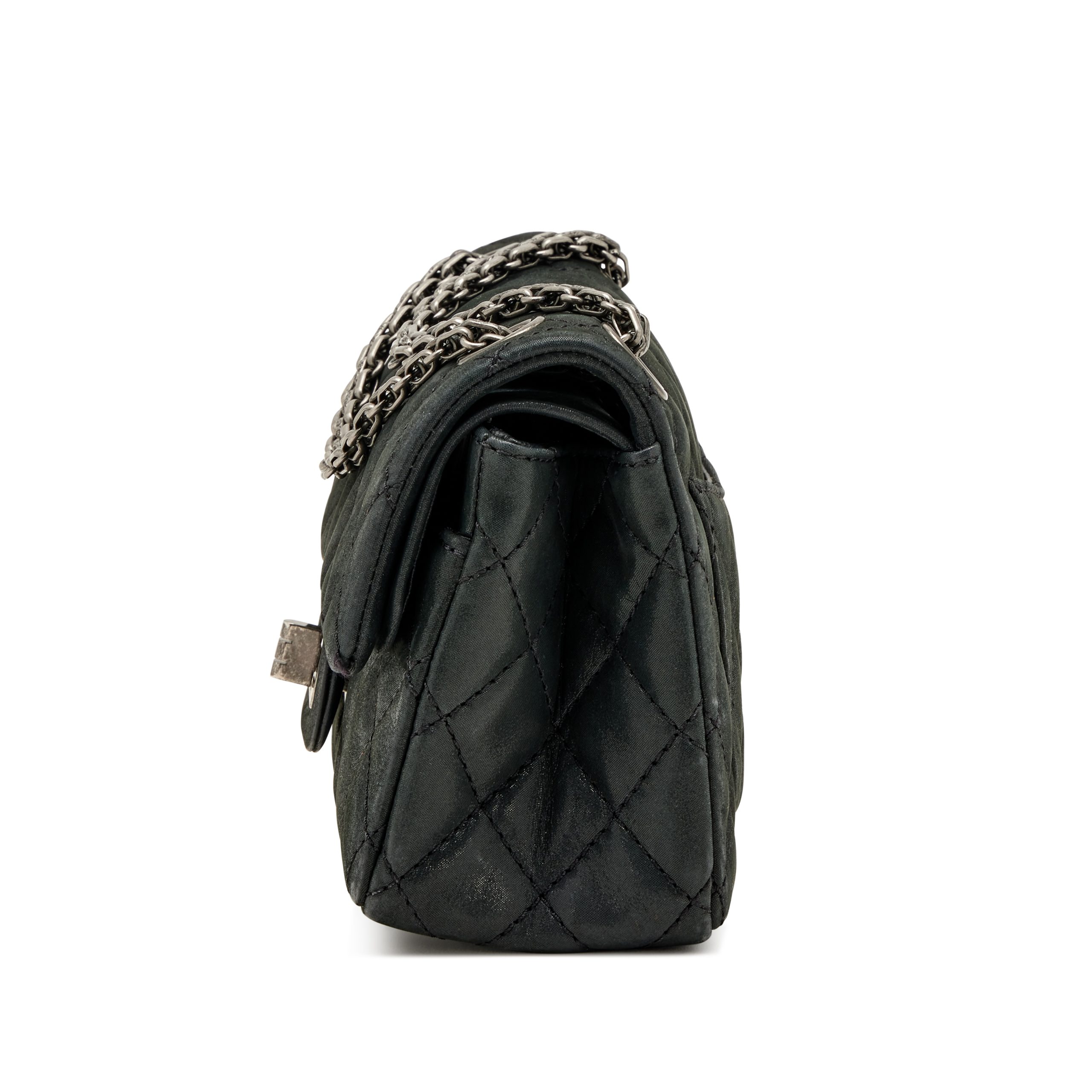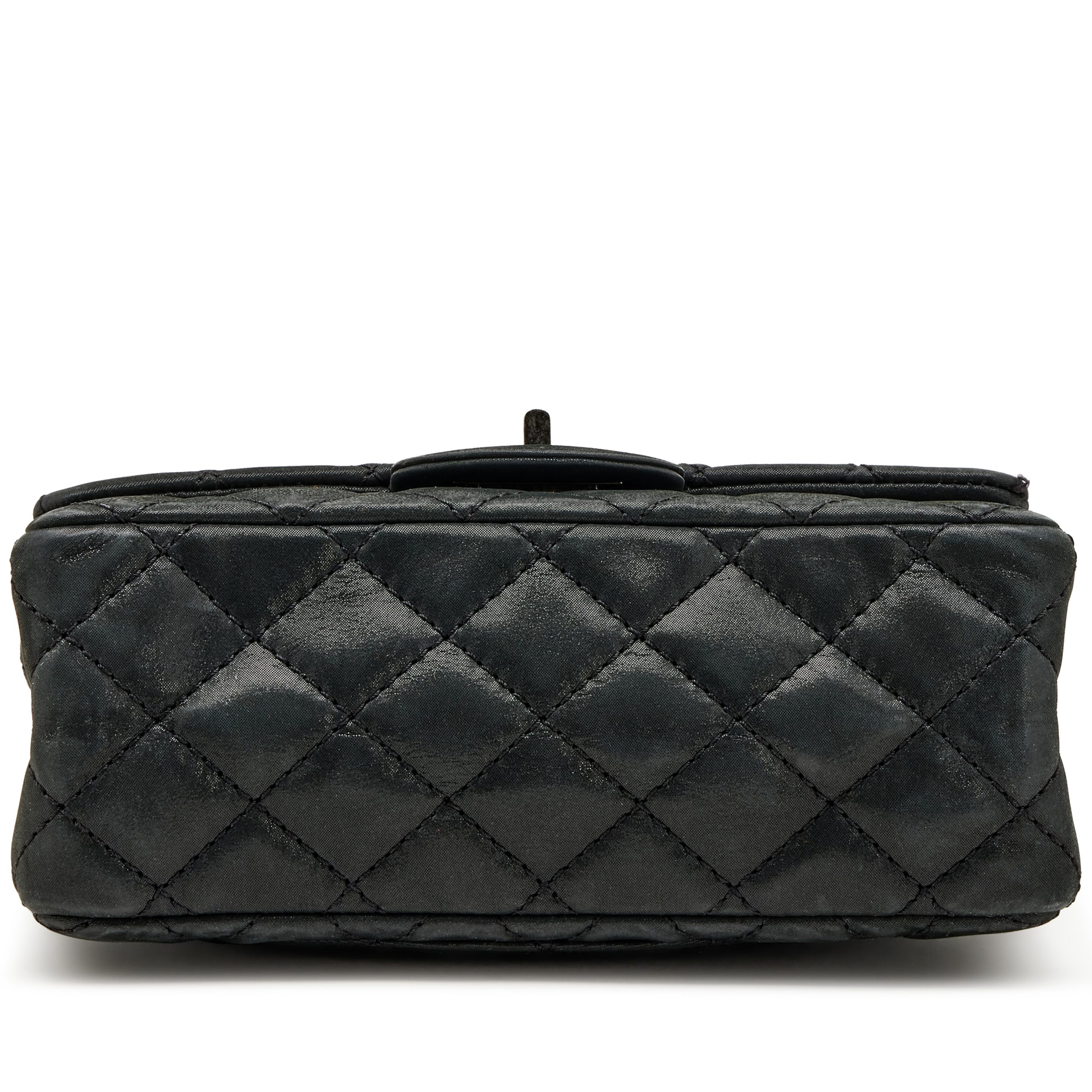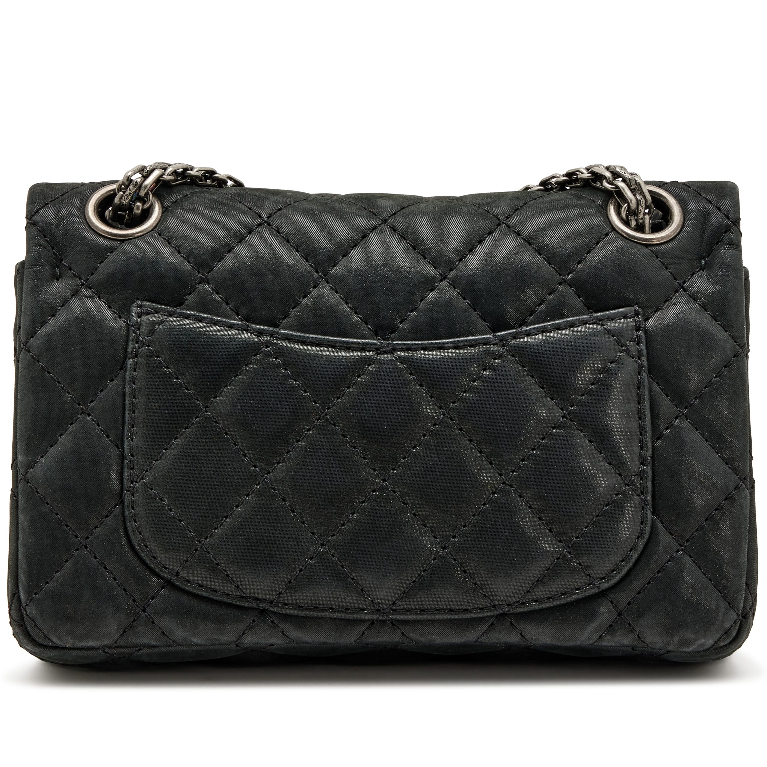 Chanel Black Iridescent Quilted Lambskin 2.55 Reissue Mini 224 Double Flap Bag Ruthenium Hardware, 2011 The interior is lined in a tonal leatherAged Ruthenium finish is inherent to the designThis item is final sale