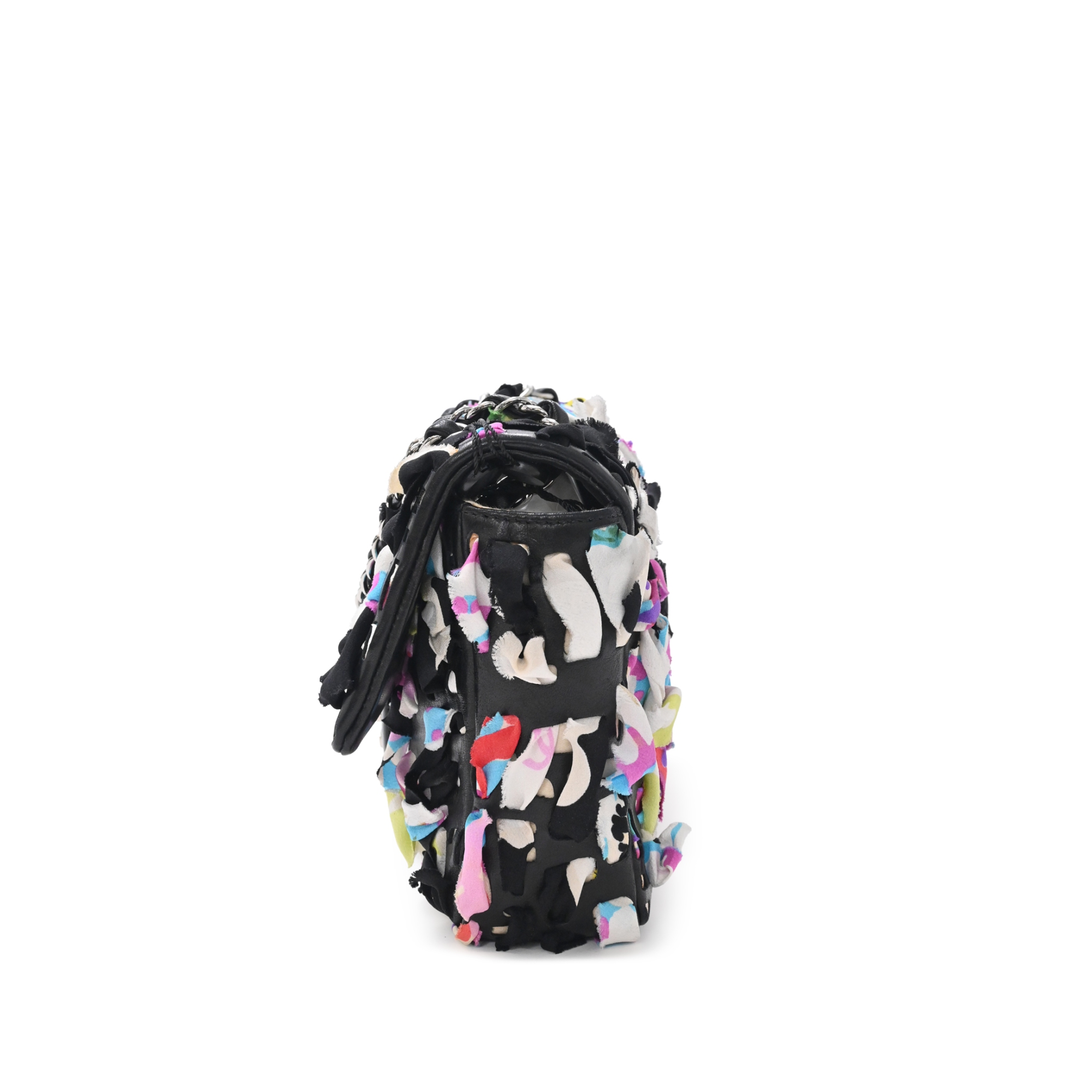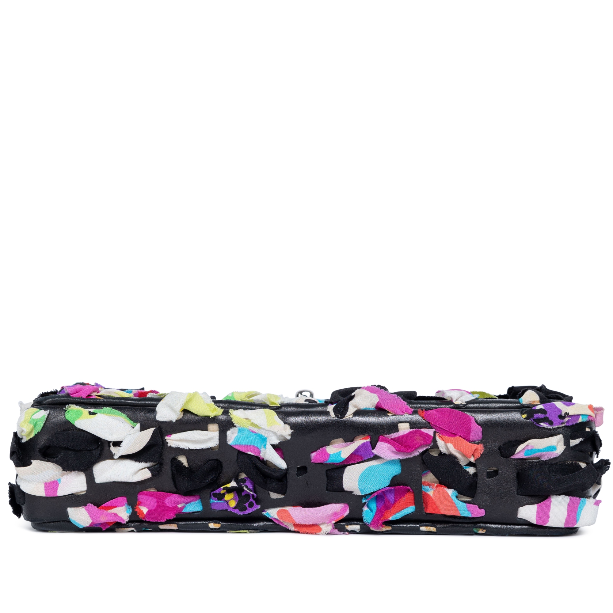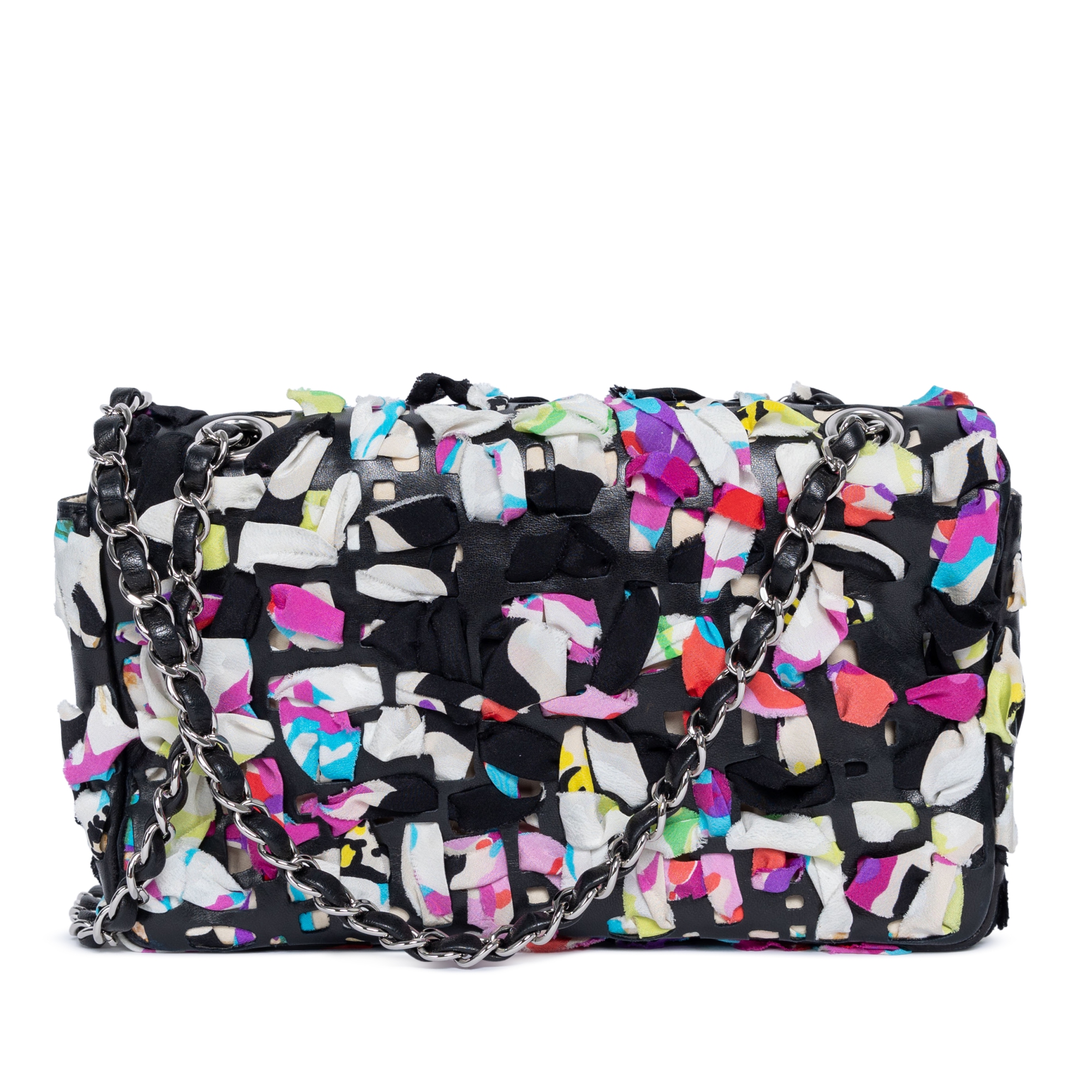 Black Lambskin and Silk Flap Bag Silver Hardware