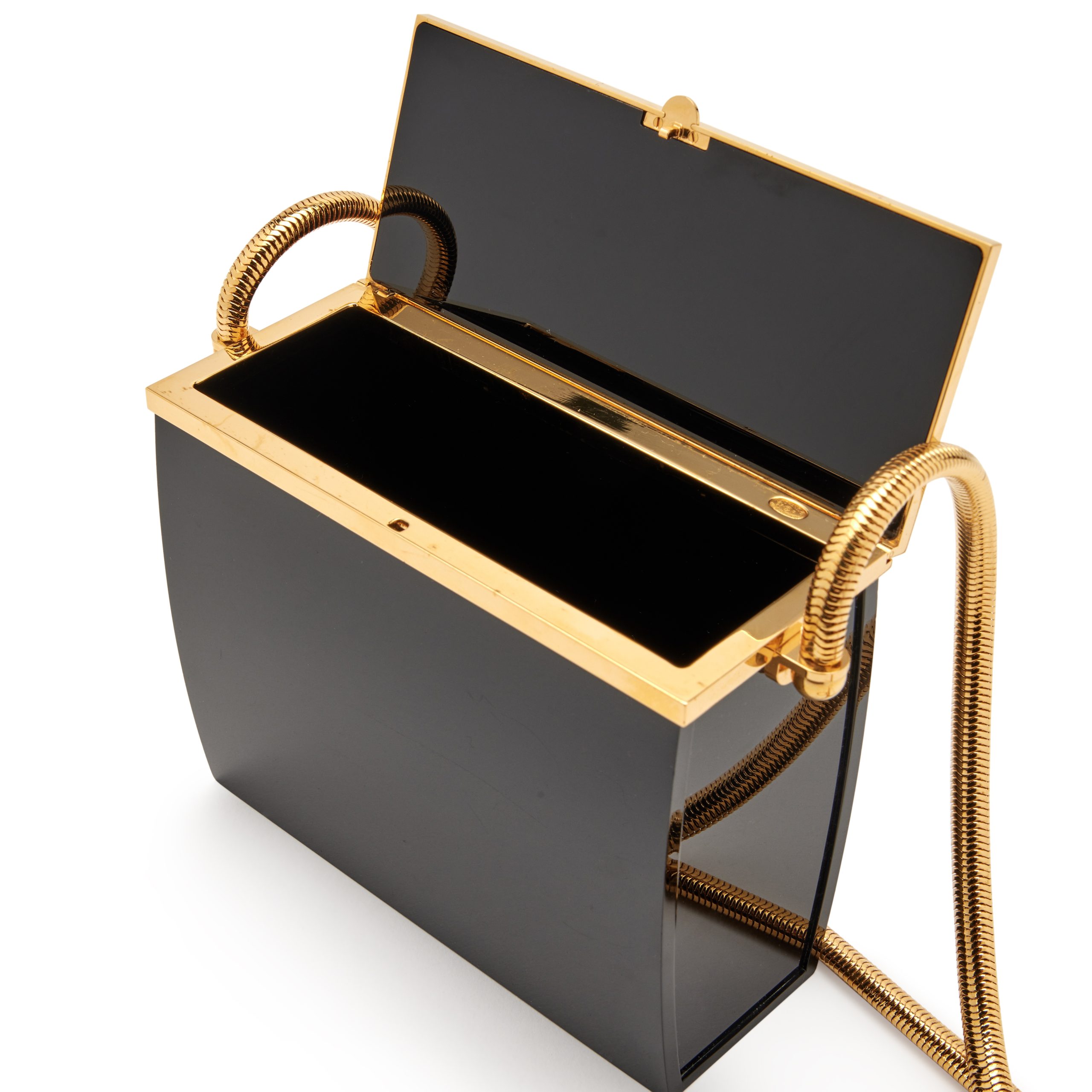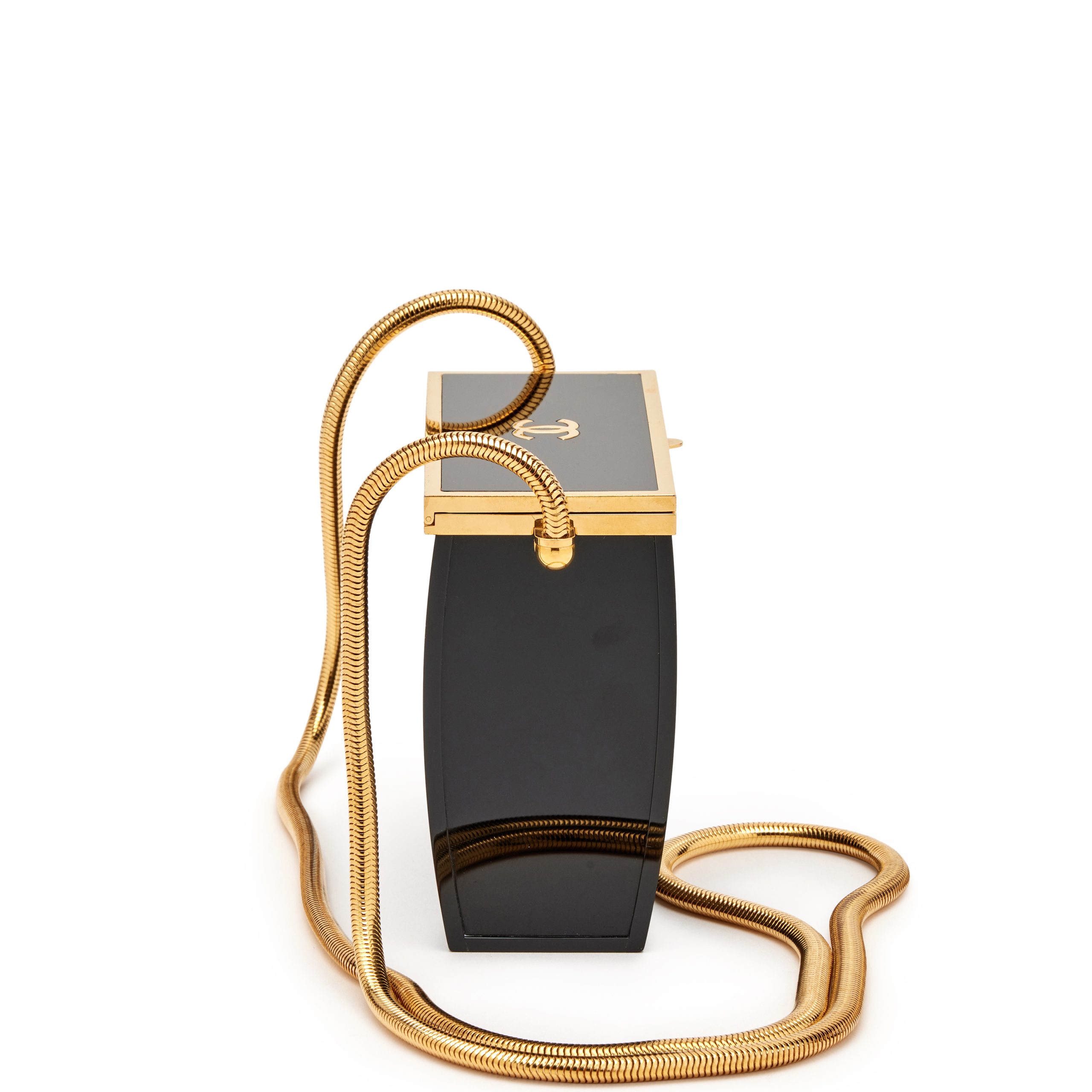 Black Lucite CC Mini Box Minaudire Bag Gold Hardware, 1997