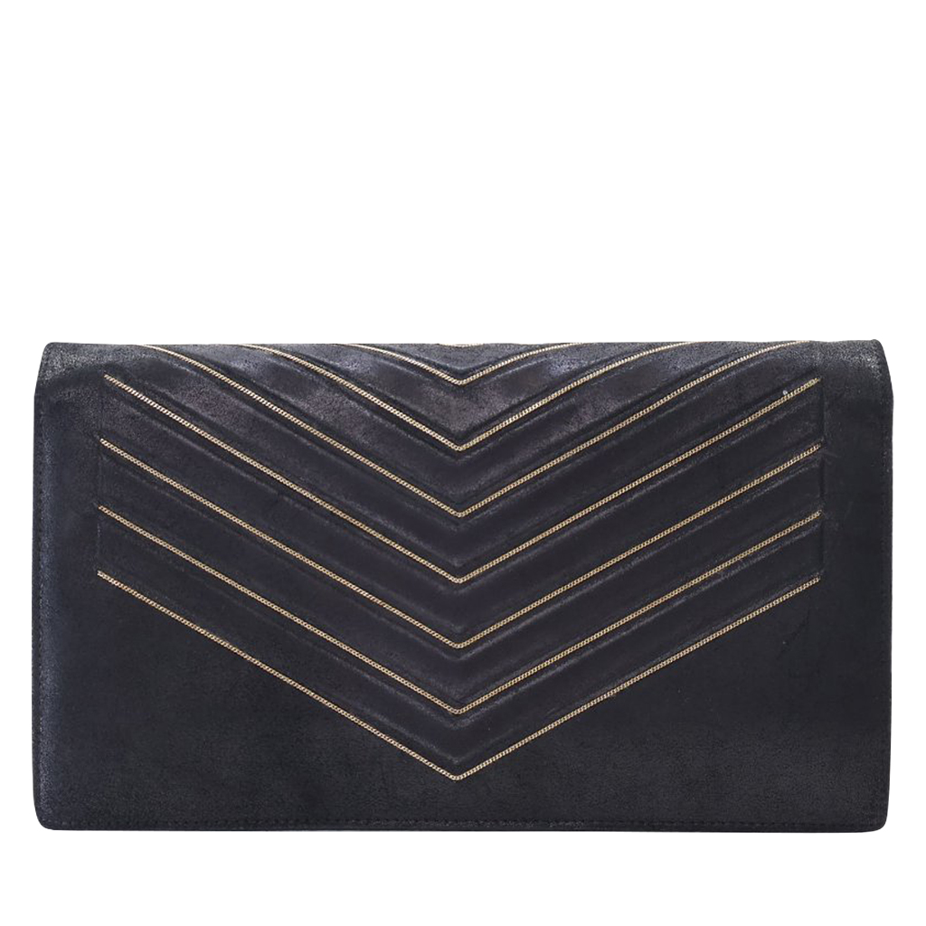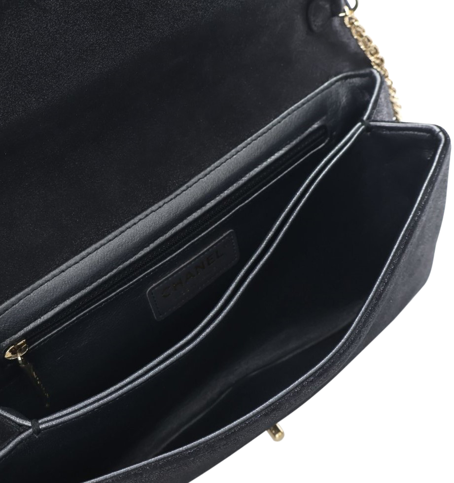 Chanel Black Nubuck Suede Micro Chain Chevron Flap Bag Gold Hardware, 2017-2018The interior is lined in a tonal leatherThis item is final sale