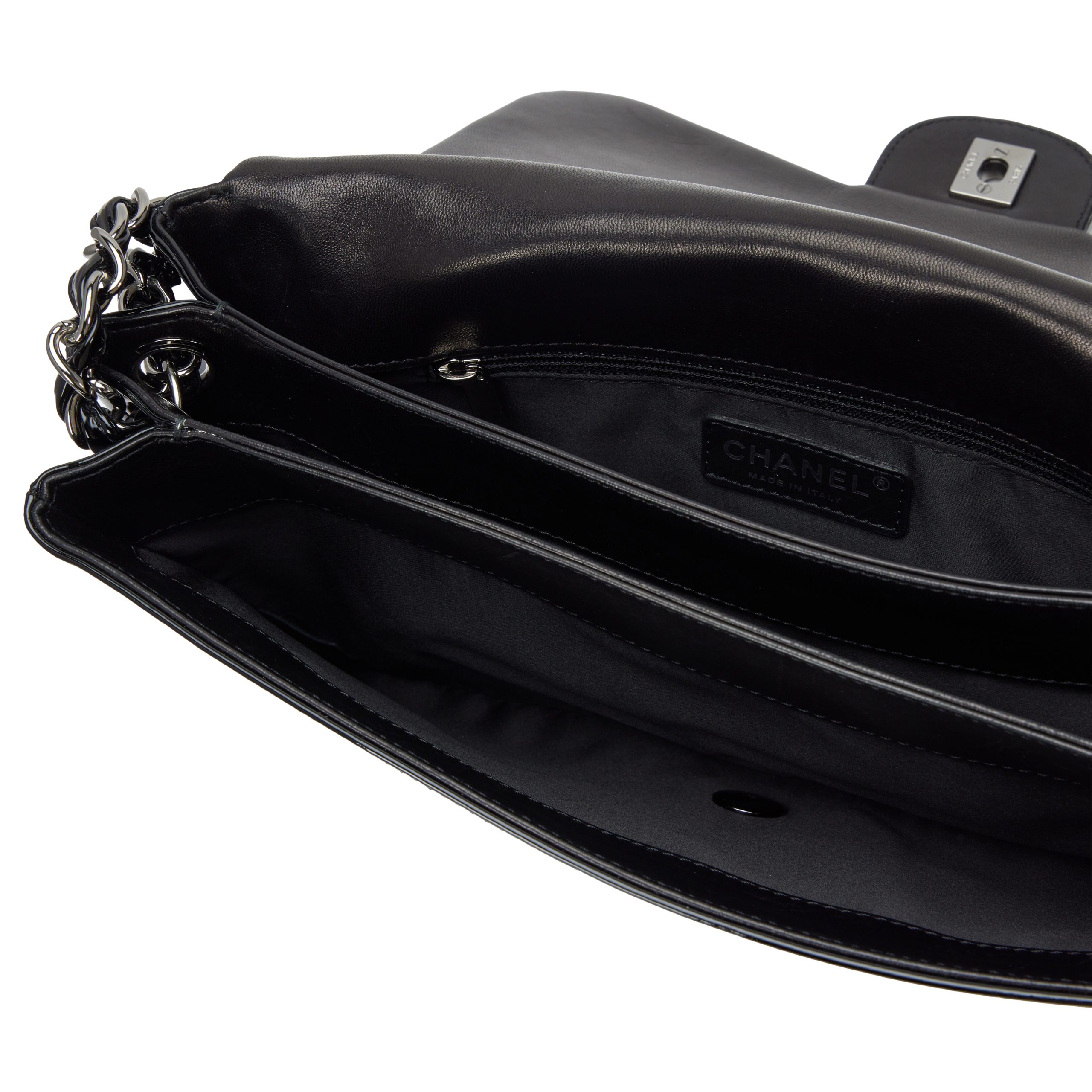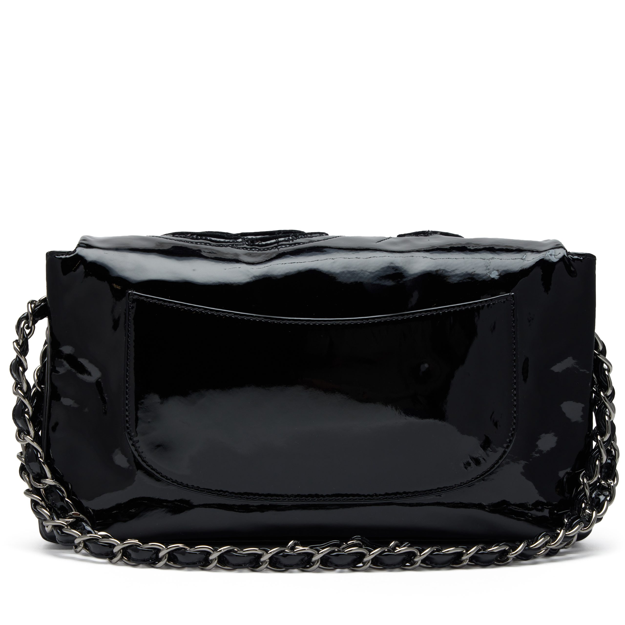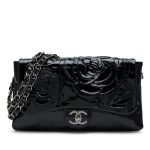 Chanel Black Patent Paris-Shanghai Tweed Camellia Petals Flap Bag Silver Hardware, 2010The interior is lined in a tonal textile materialIncludes authenticity card, care booklet and dust bagThis item is final sale and is not eligible for return