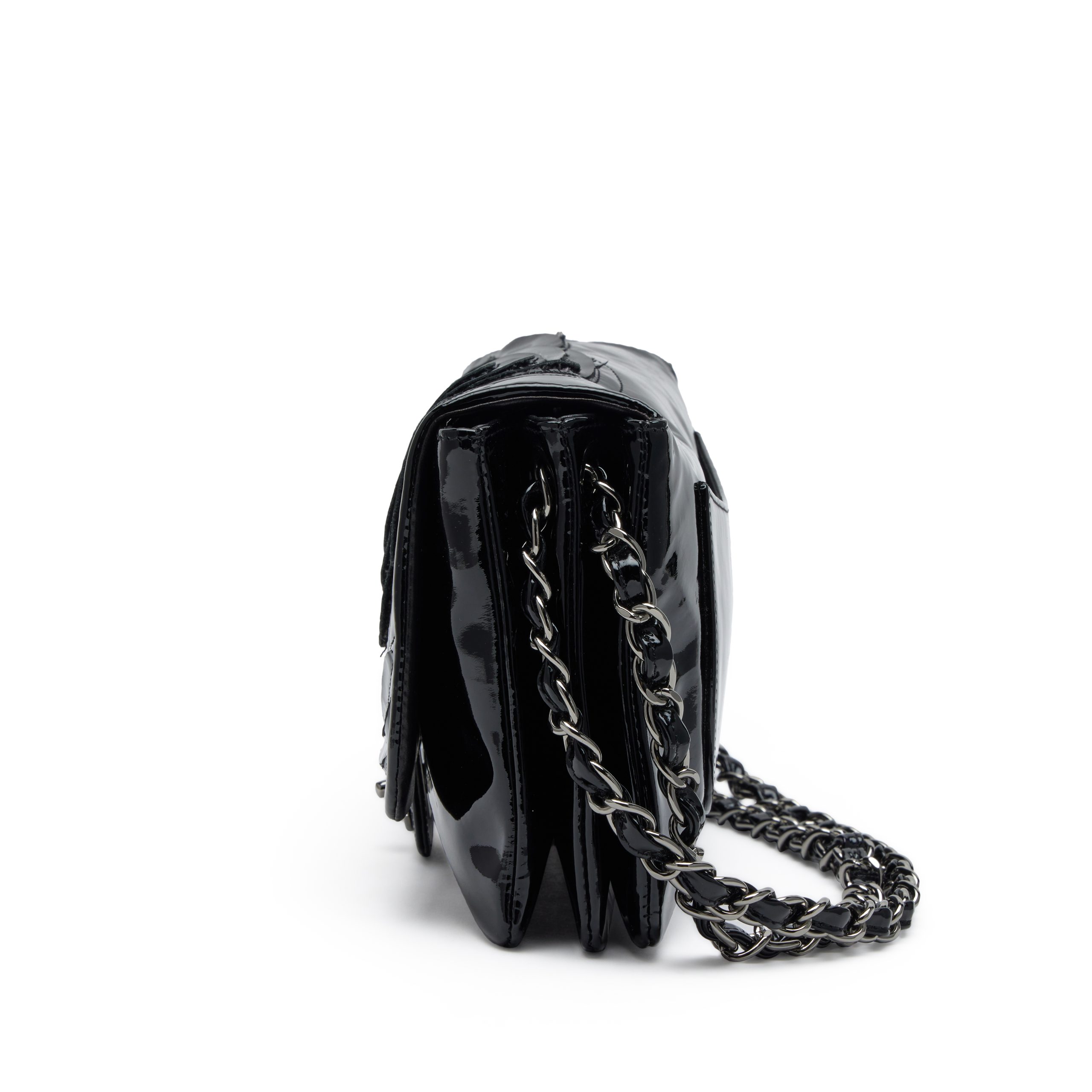 Black Patent Paris-Shanghai Tweed Camellia Petals Flap Bag Silver Hardware, 2010