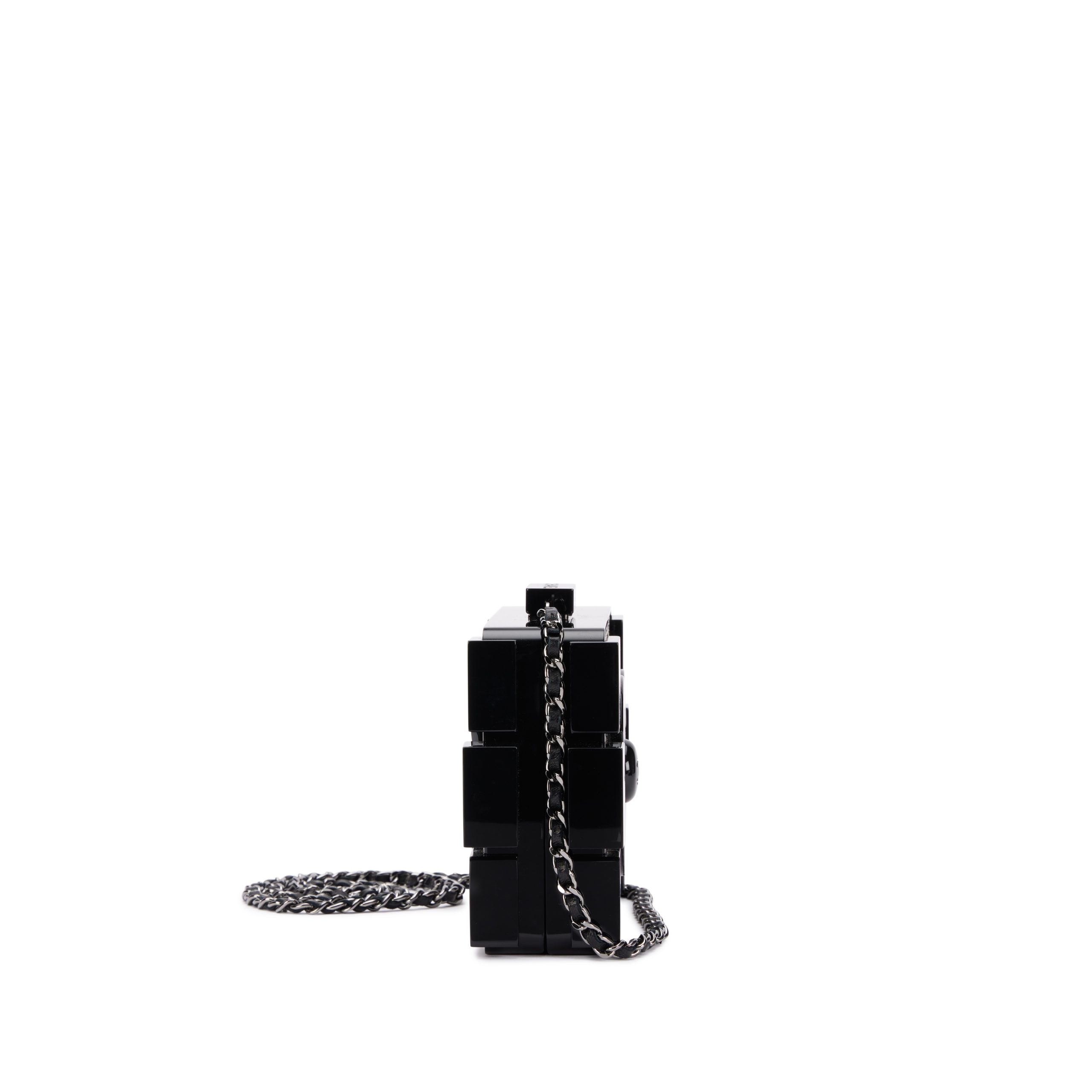 Chanel Black Plexiglass and Silver and Bronze Strass Crystal Supermarket Boy Brick Lego Minaudiere Clutch Ruthenium Hardware, 2014The interior is lined in a black leatherIncludes dust bag and boxThis item is final sale