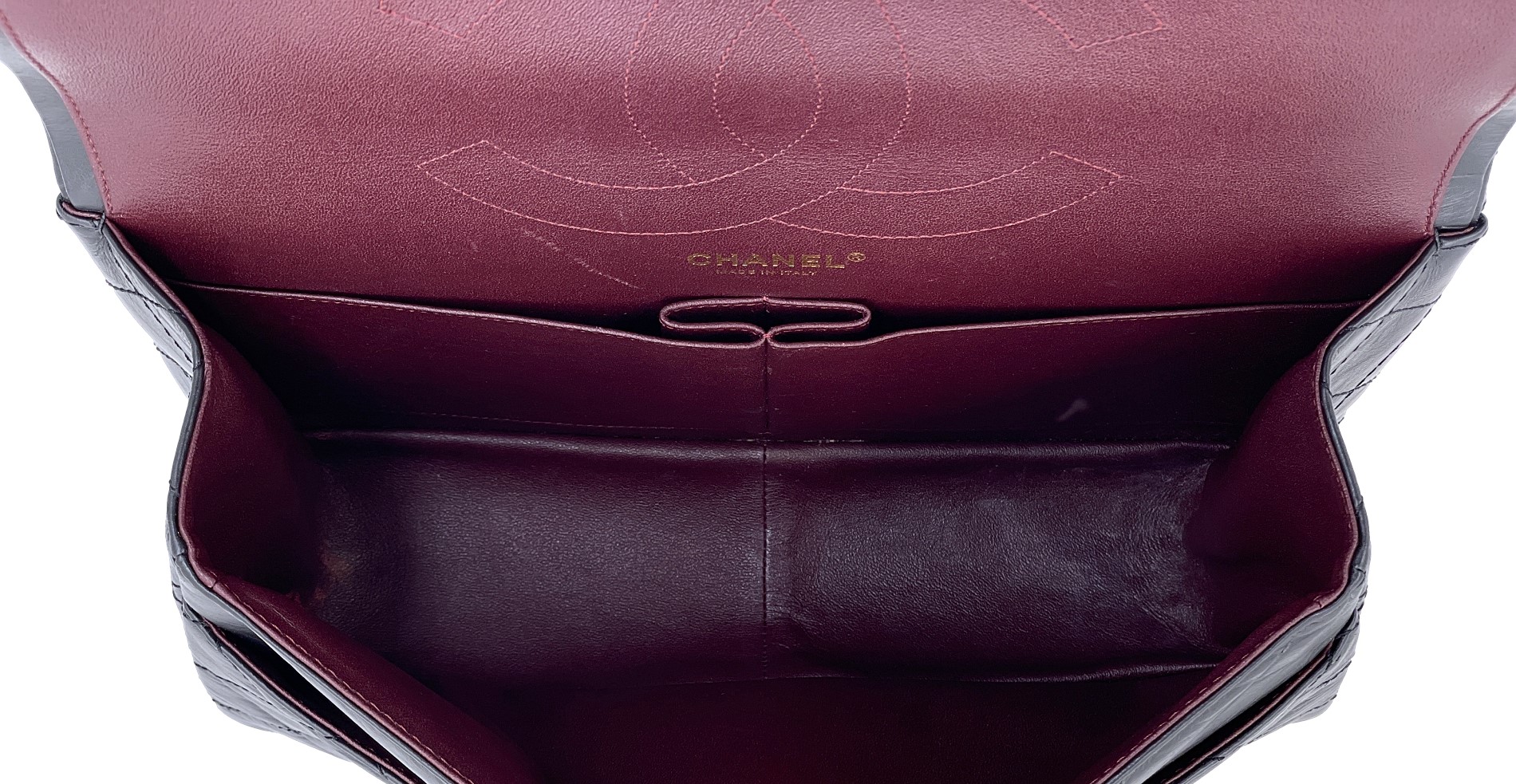 Chanel Black Quilted Aged Calfskin 2.55 Reissue 277 Jumbo Flap Bag Aged Gold Hardware, 2016-2017The interior is lined with burgundy leatherIncludes authenticity card and dust bagThis item is final sale