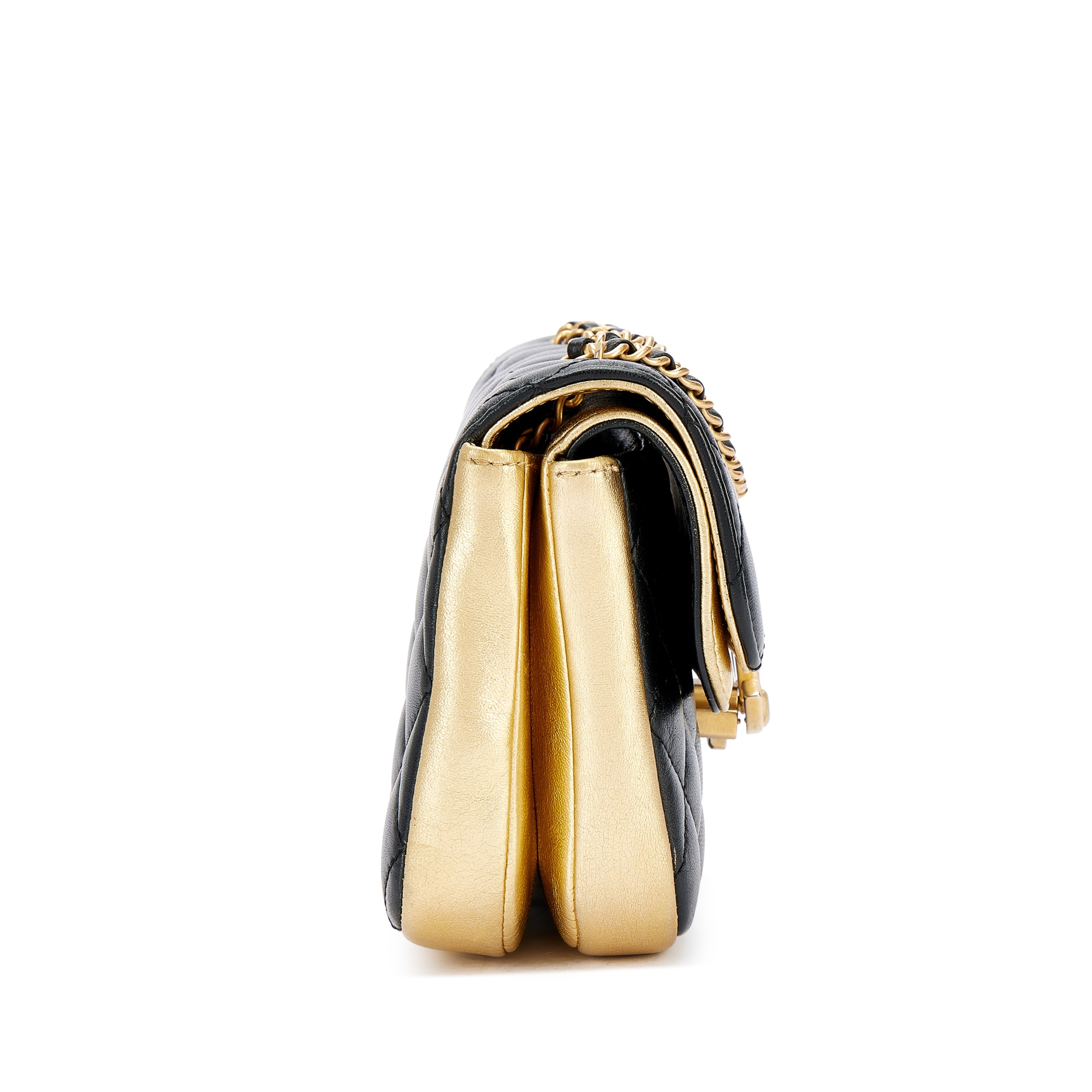 Black Quilted and Gold Lambskin Double Flap Aged Gold Hardware, 2016 – 2017