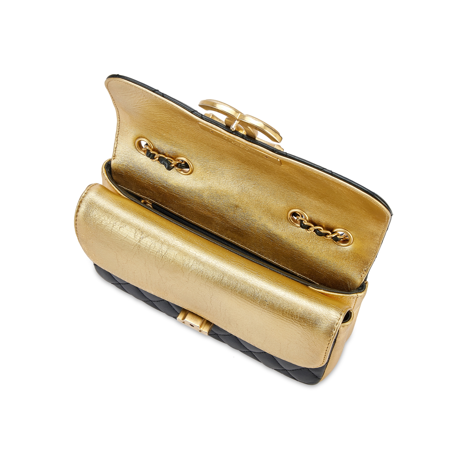 Black Quilted and Gold Lambskin Double Flap Aged Gold Hardware, 2016 – 2017