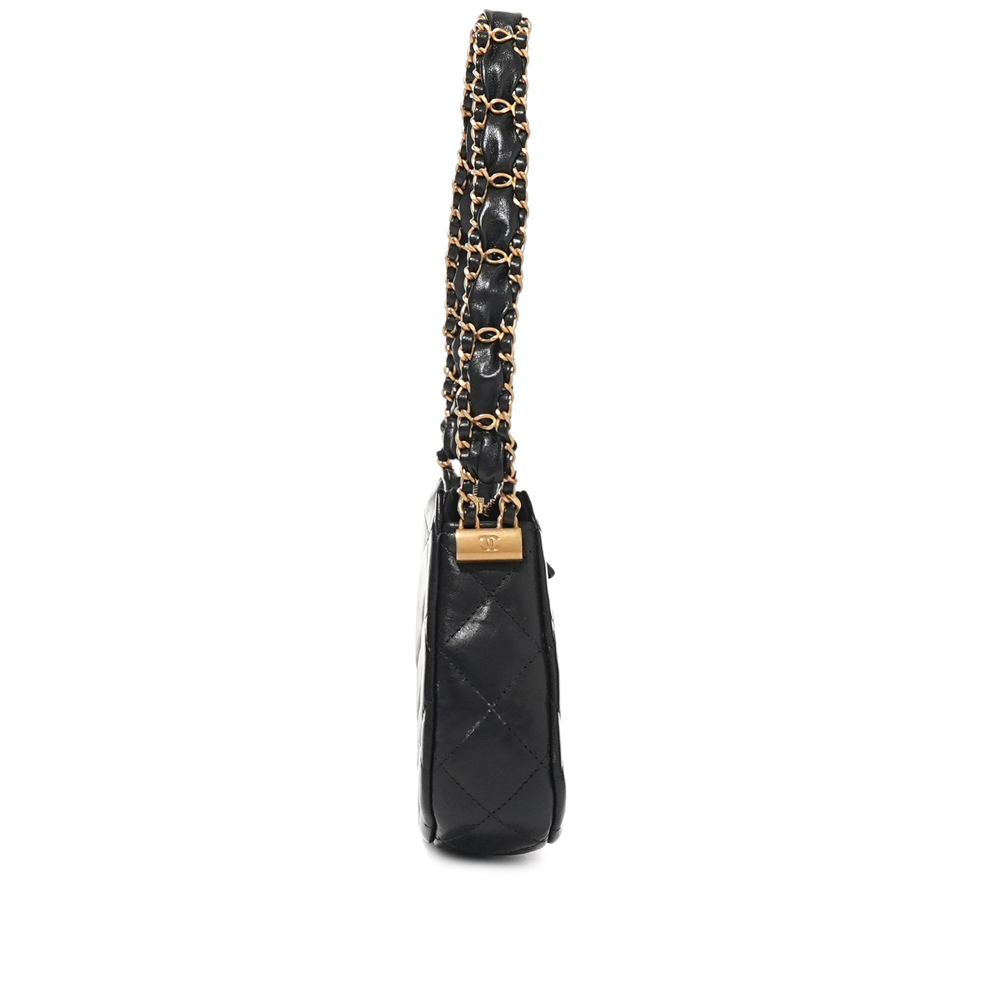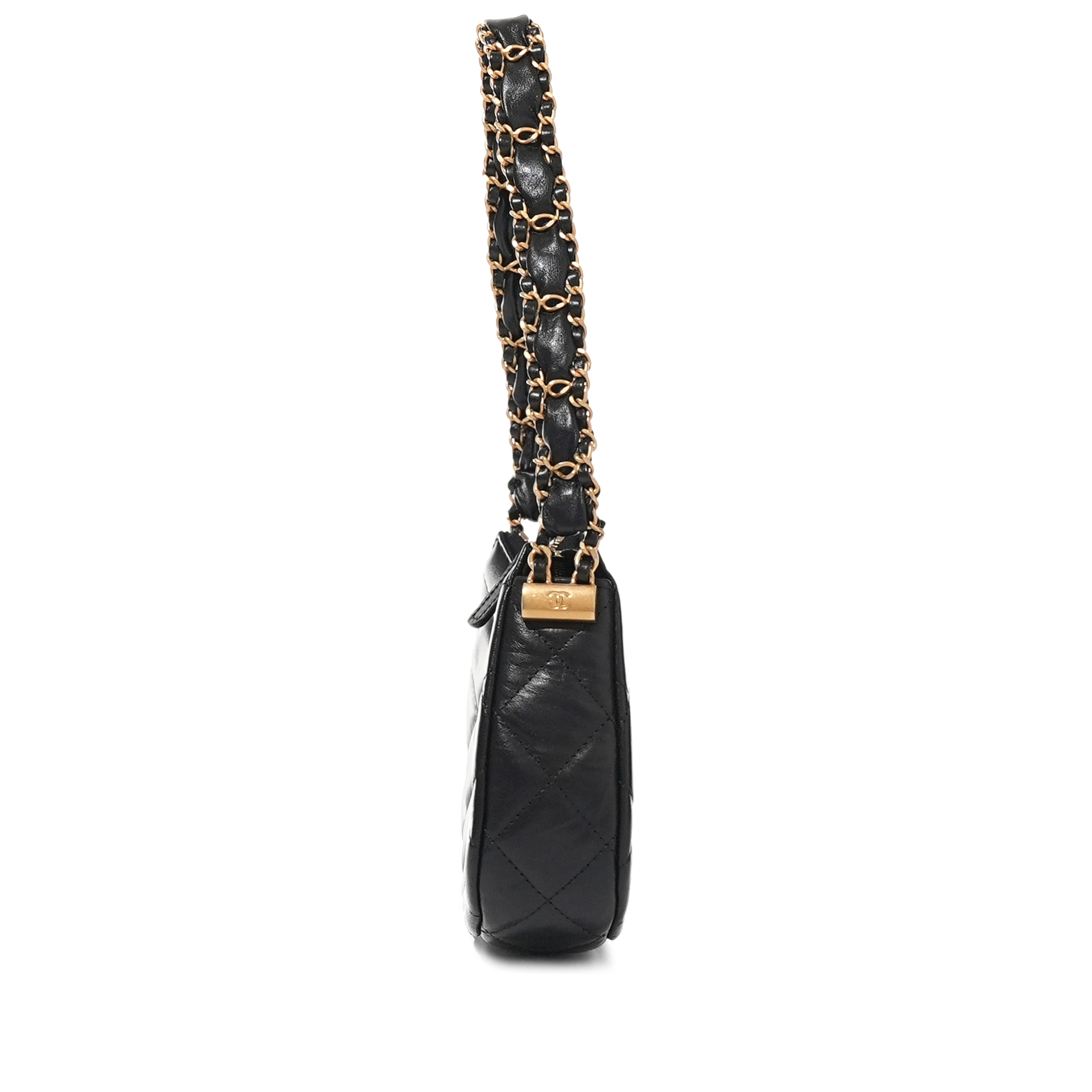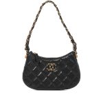 Chanel Black Quilted Calfskin Hobo Bag Brushed Gold HardwareThe interior is lined with tonal textile materialIncludes dust bag and boxThis item is final sale
