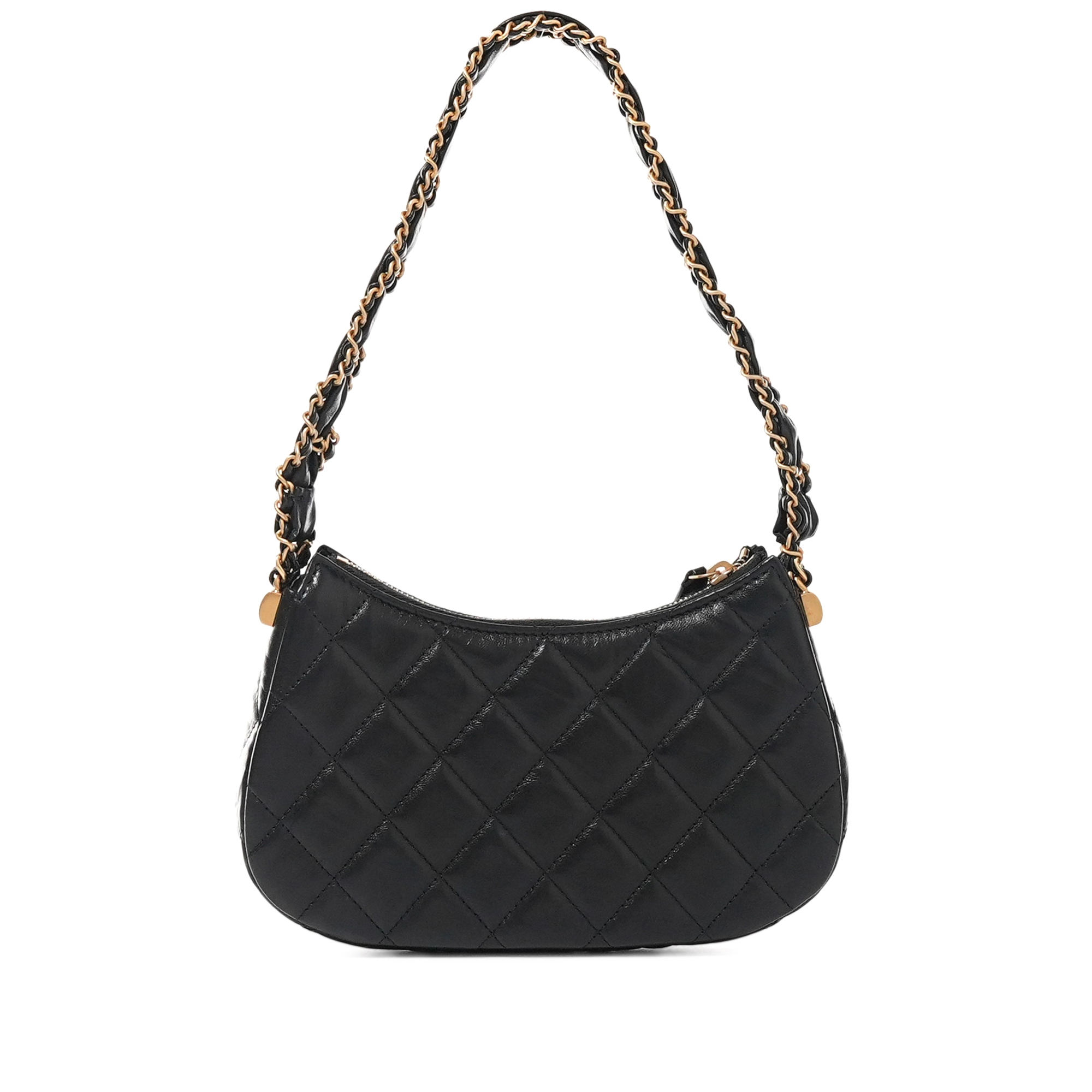 Black Quilted Calfskin Hobo Bag Brushed Gold Hardware