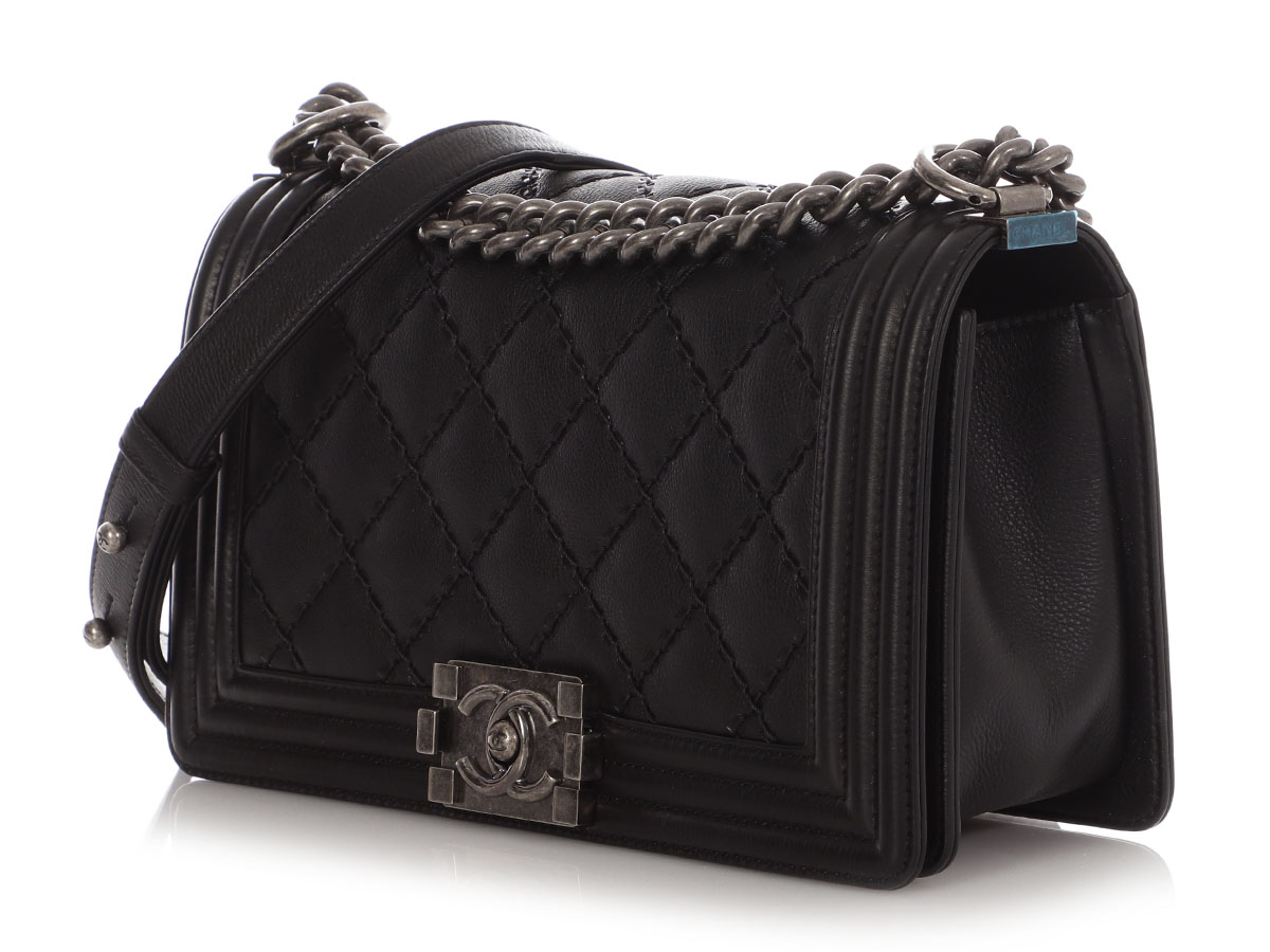 Black Quilted Calfskin Medium Double Stitch Boy Bag Antiqued Silver Hardware, 2014-2015