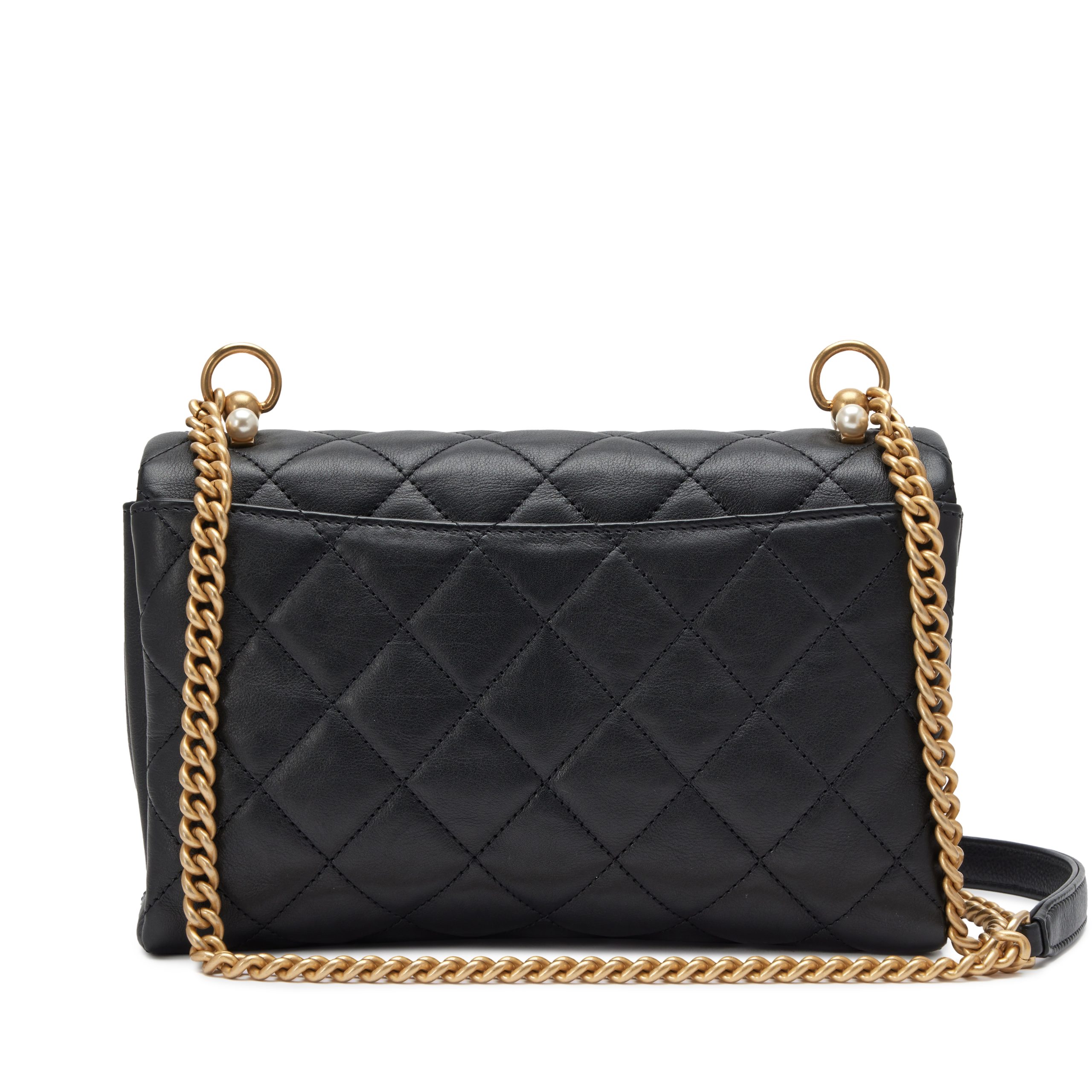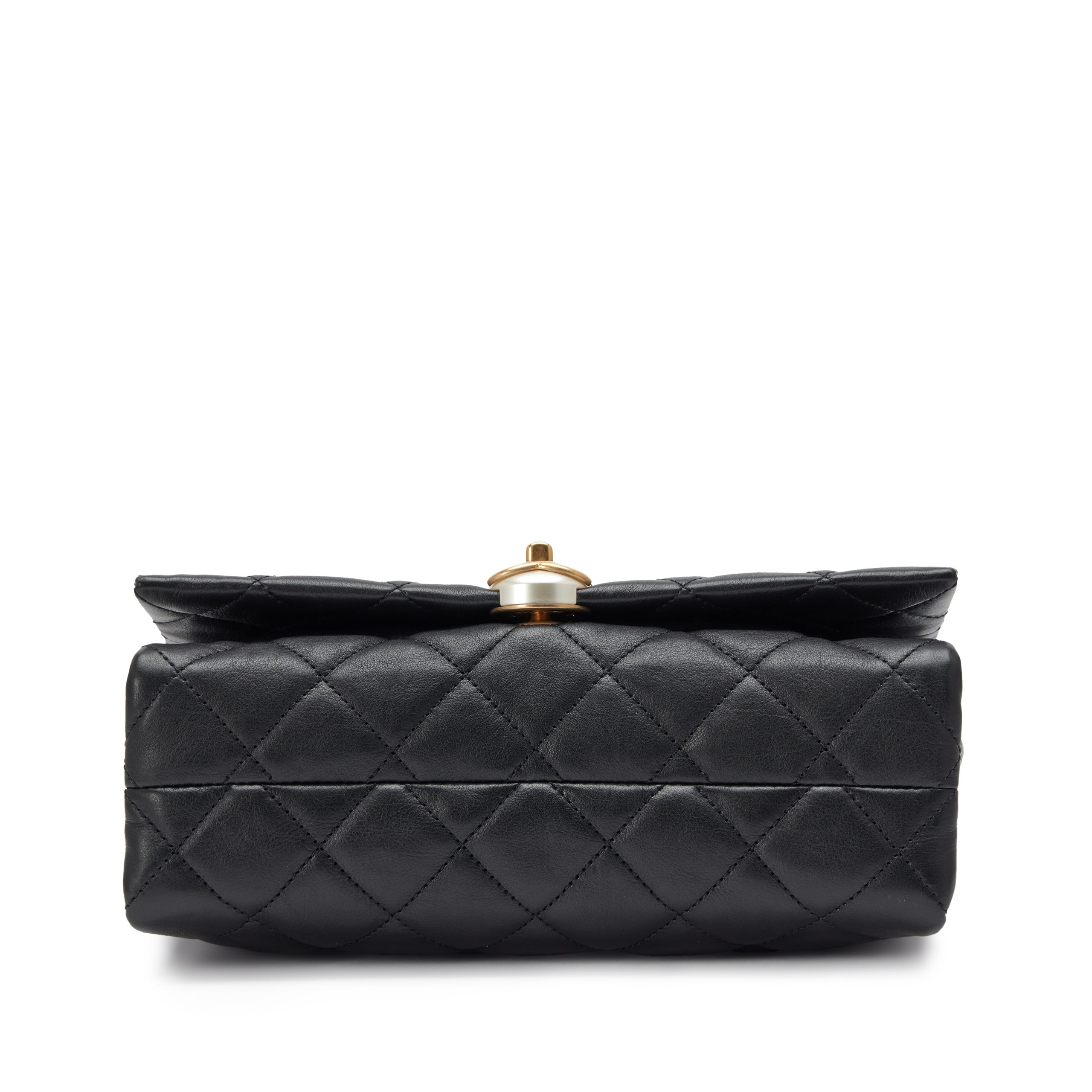 Black Quilted Calfskin Pearl Accordion Small Flap Bag Gold Hardware, 2019-2020