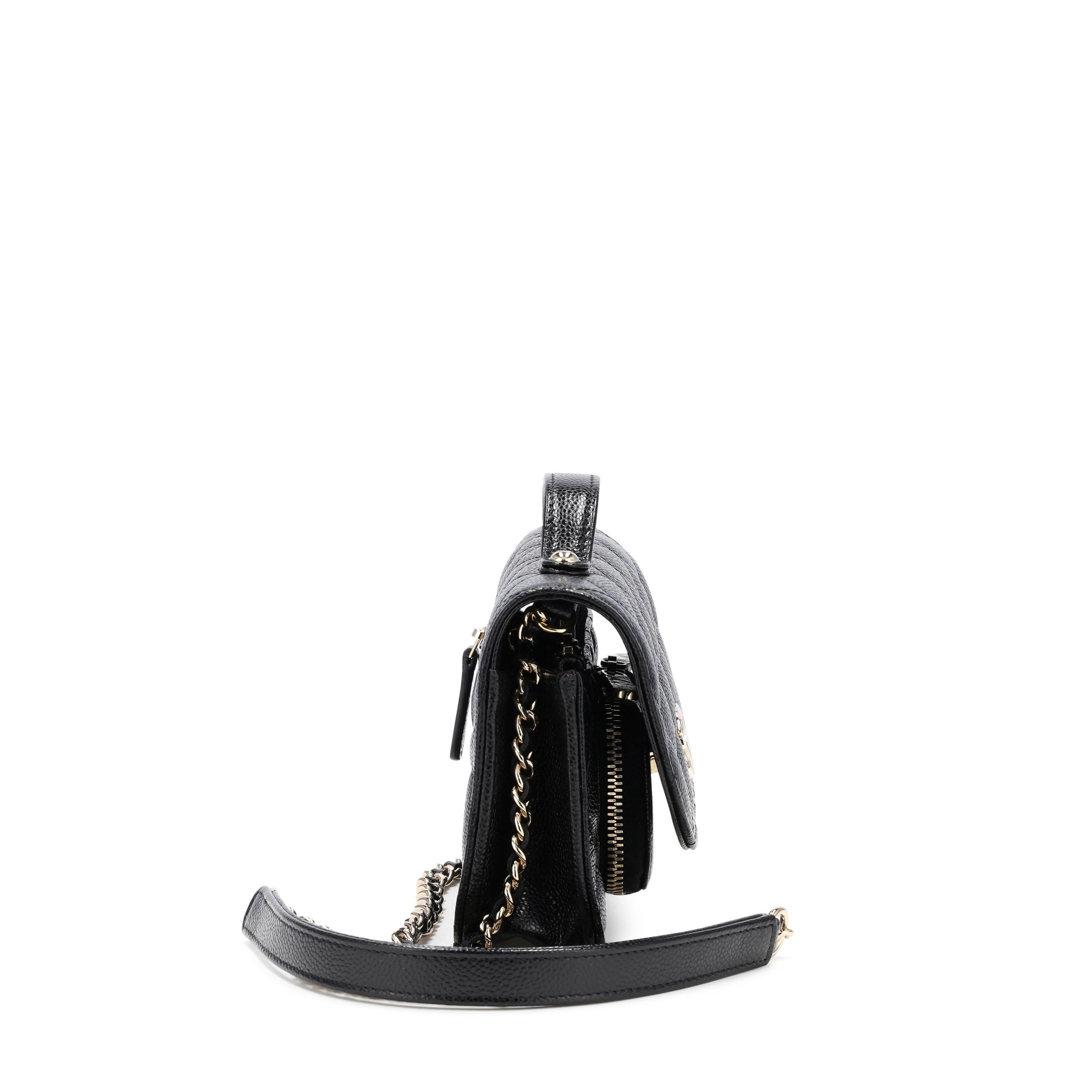 Black Quilted Caviar Business Affinity Clutch On Chain Gold Hardware, 2022
