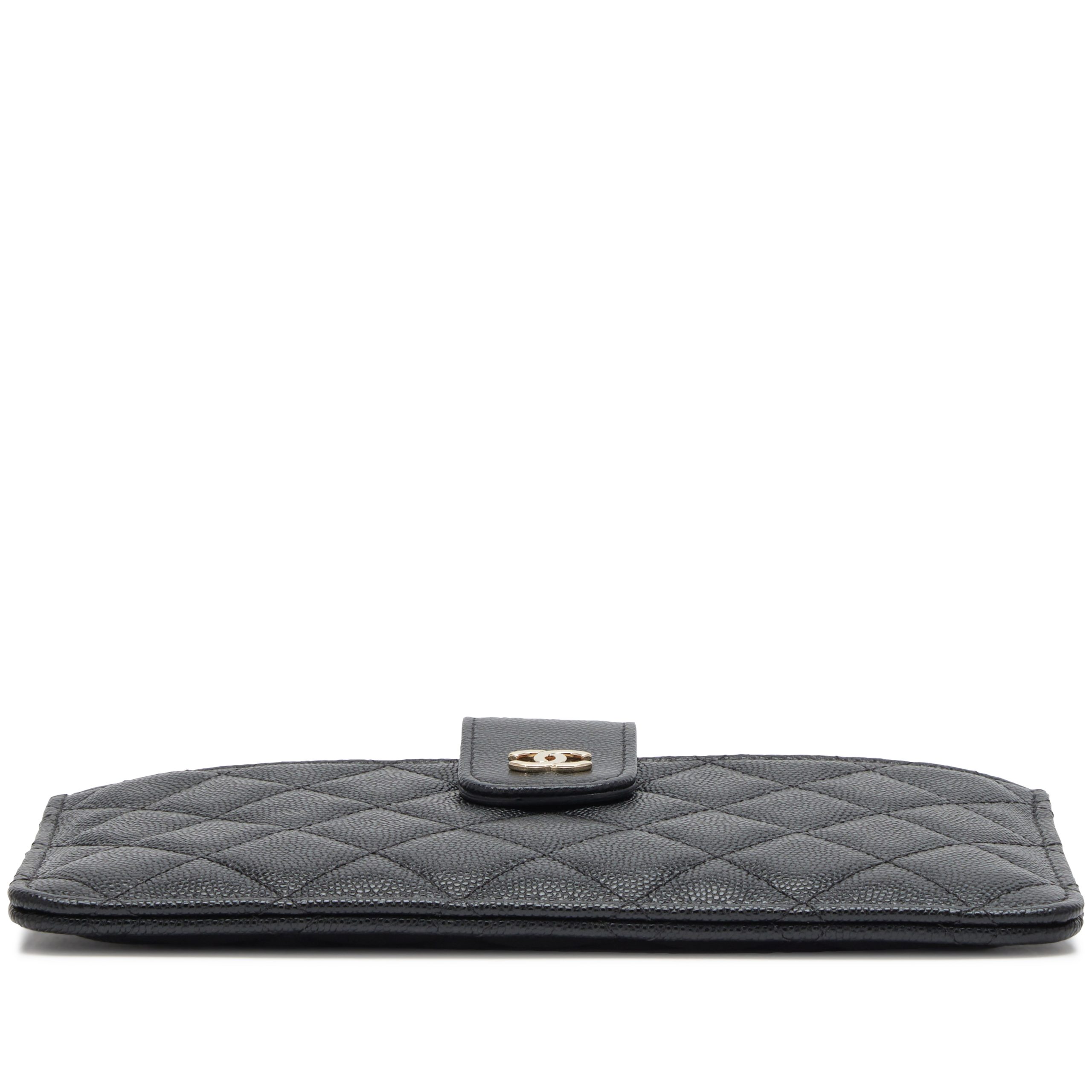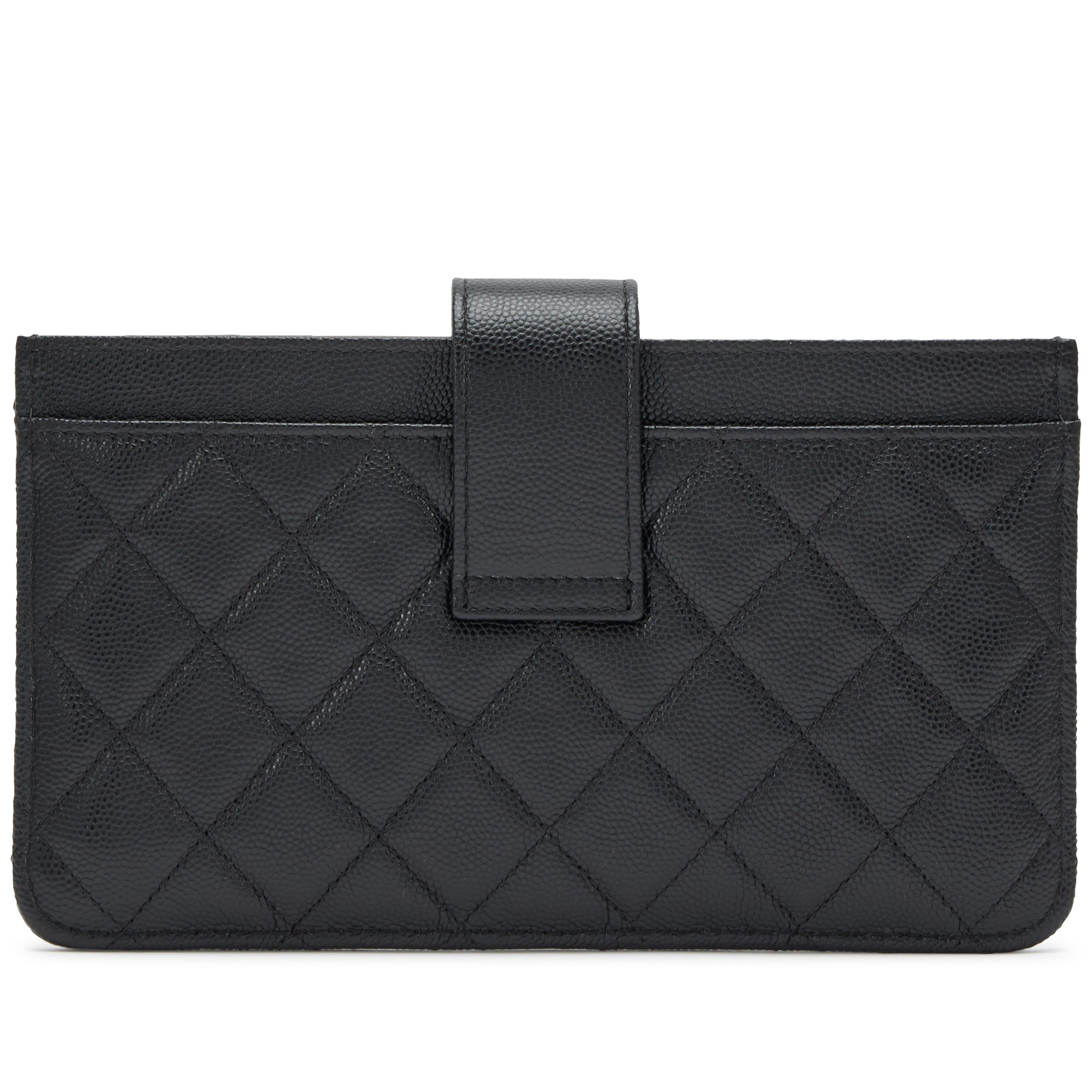 Black Quilted Caviar Classic Strap Pouch Long Wallet Light Gold Hardware, 2018-2019
