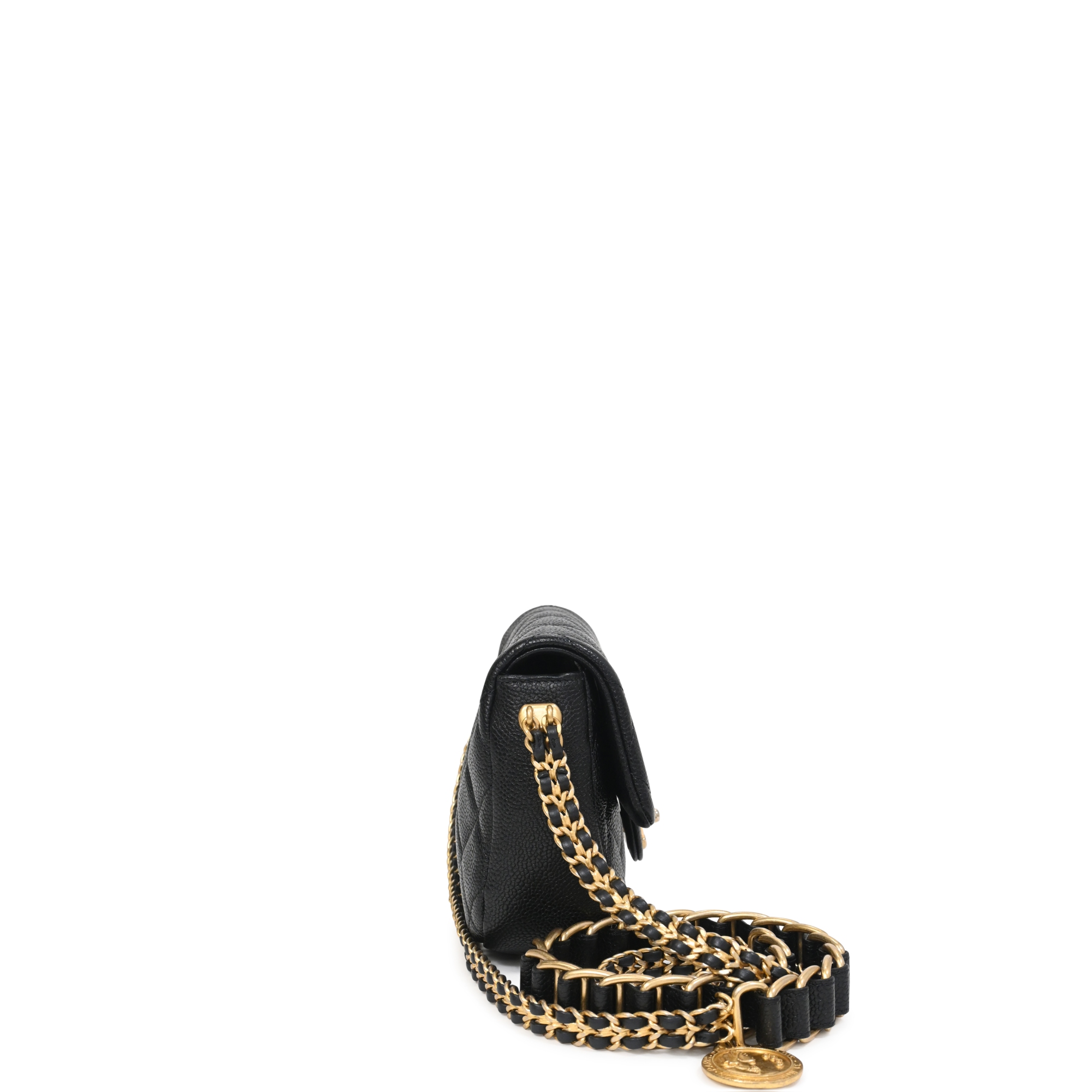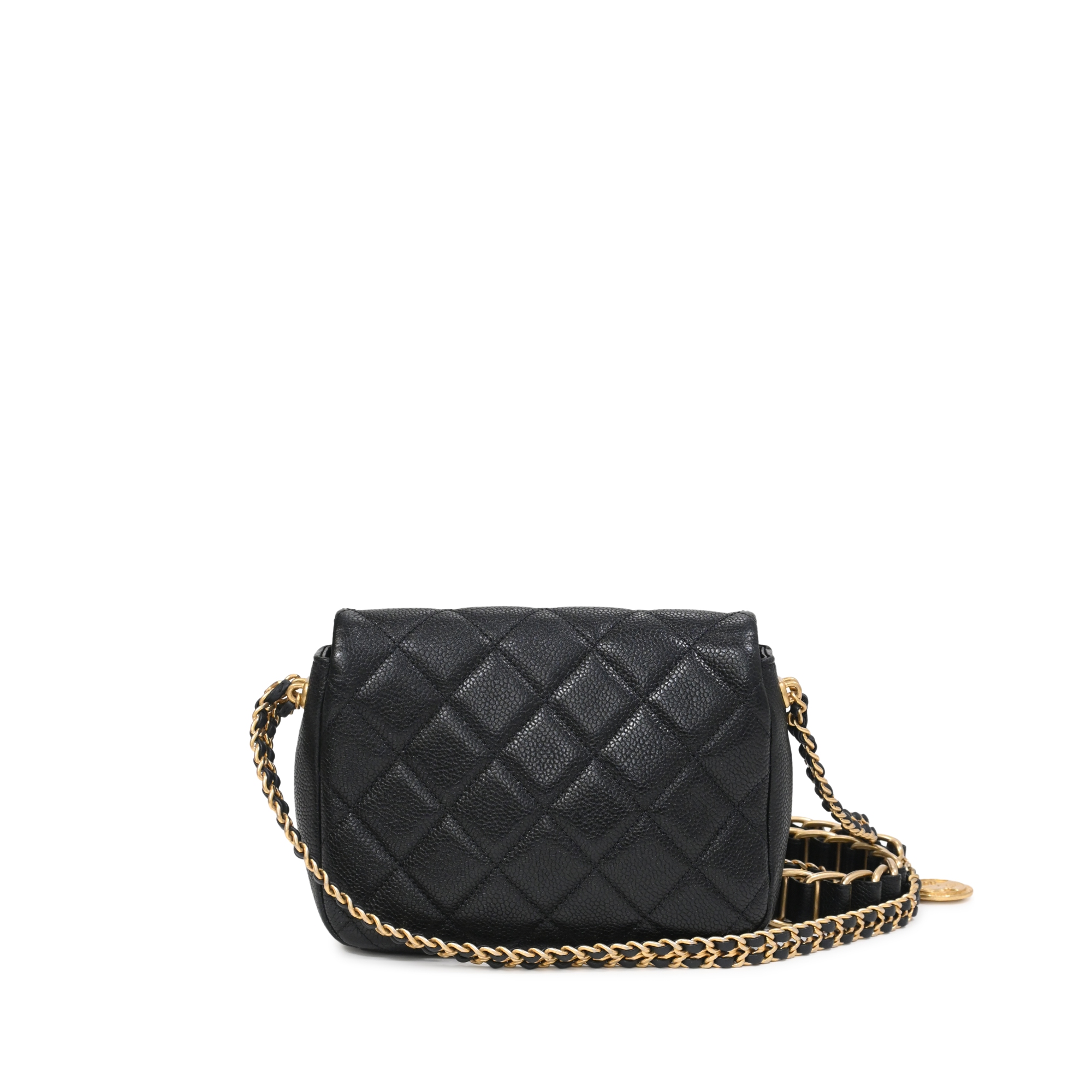 Black Quilted Caviar Flap Bag Aged Gold Hardware