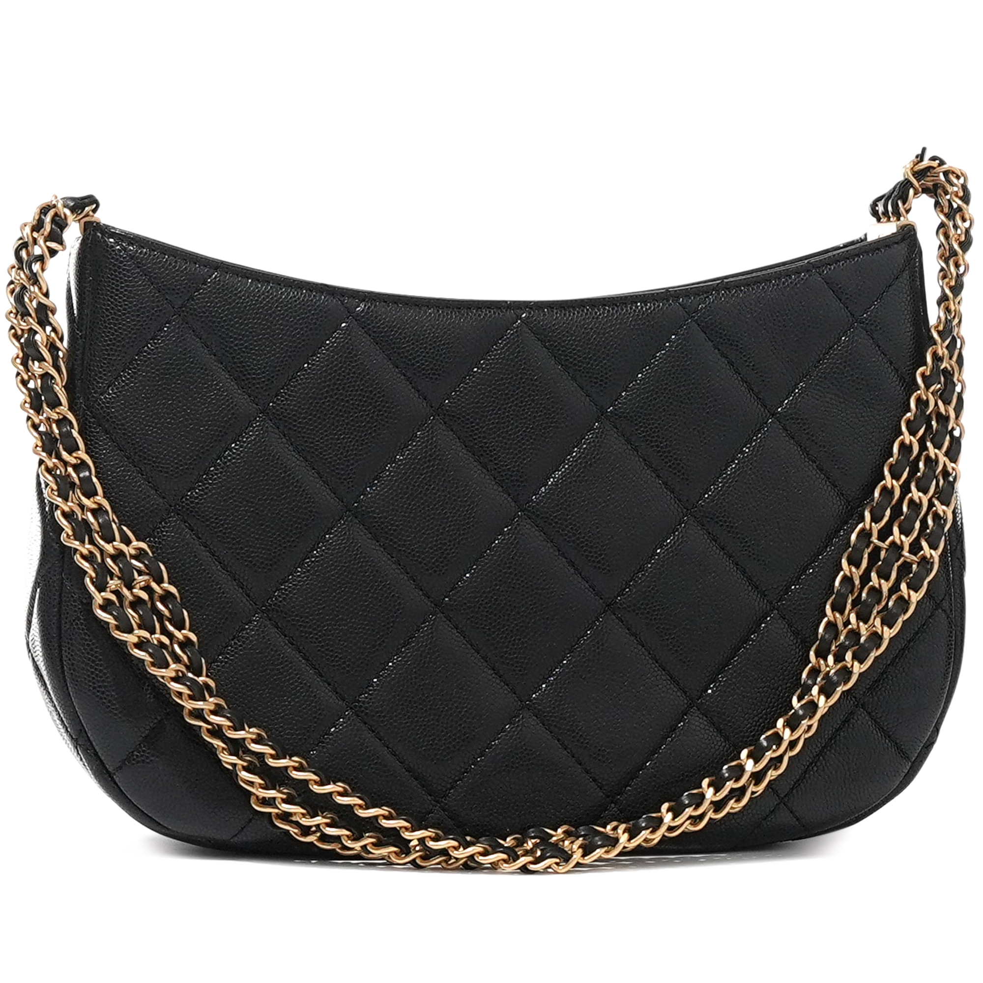 Chanel Black Quilted Caviar Hobo Bag Aged Gold Hardware, 2023The interior is lined in tonal textile materialIncludes dust bag and boxThis item is final sale