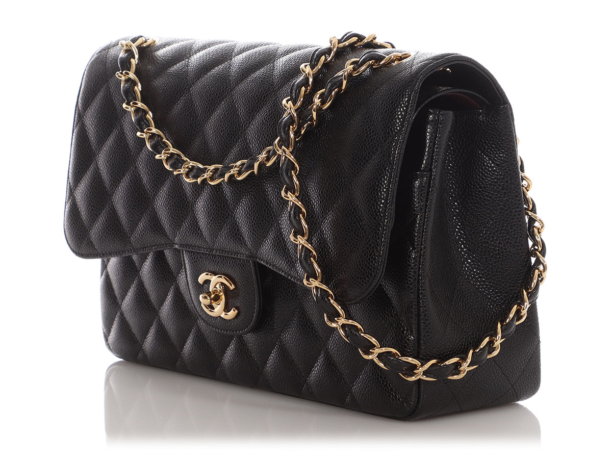 Black Quilted Caviar Jumbo Classic Double Flap Bag Gold Hardware, 2017-2018