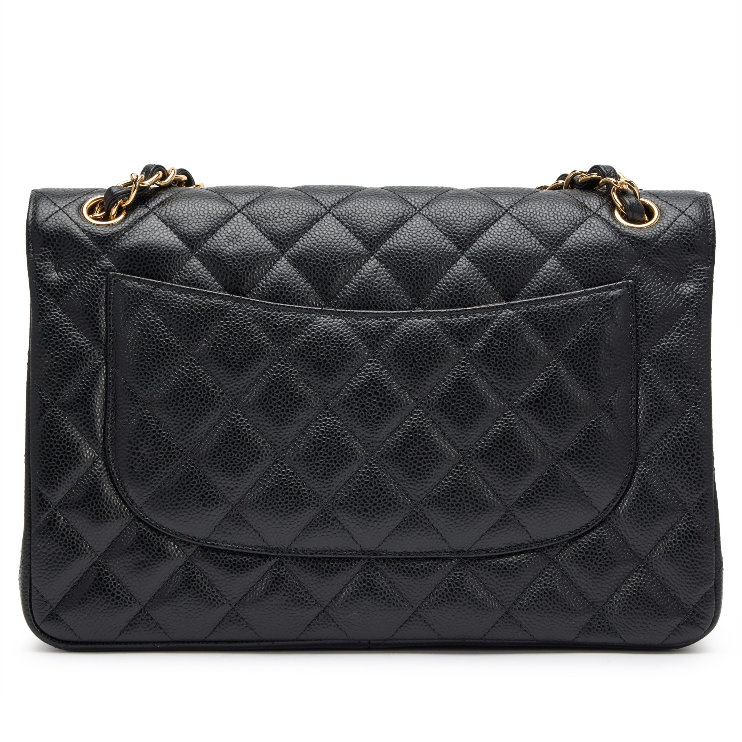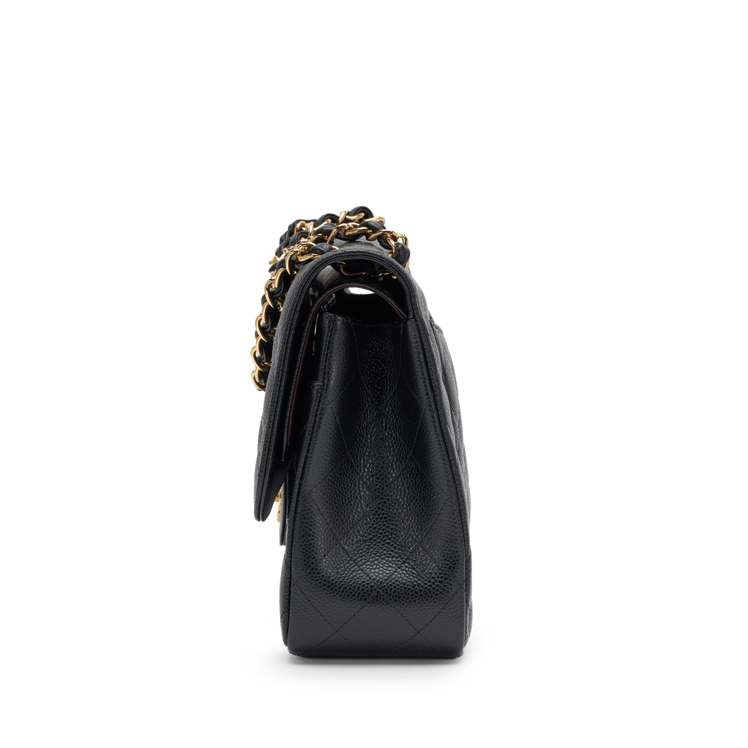 Black Quilted Caviar Jumbo Double Flap Bag Gold Hardware, 2014