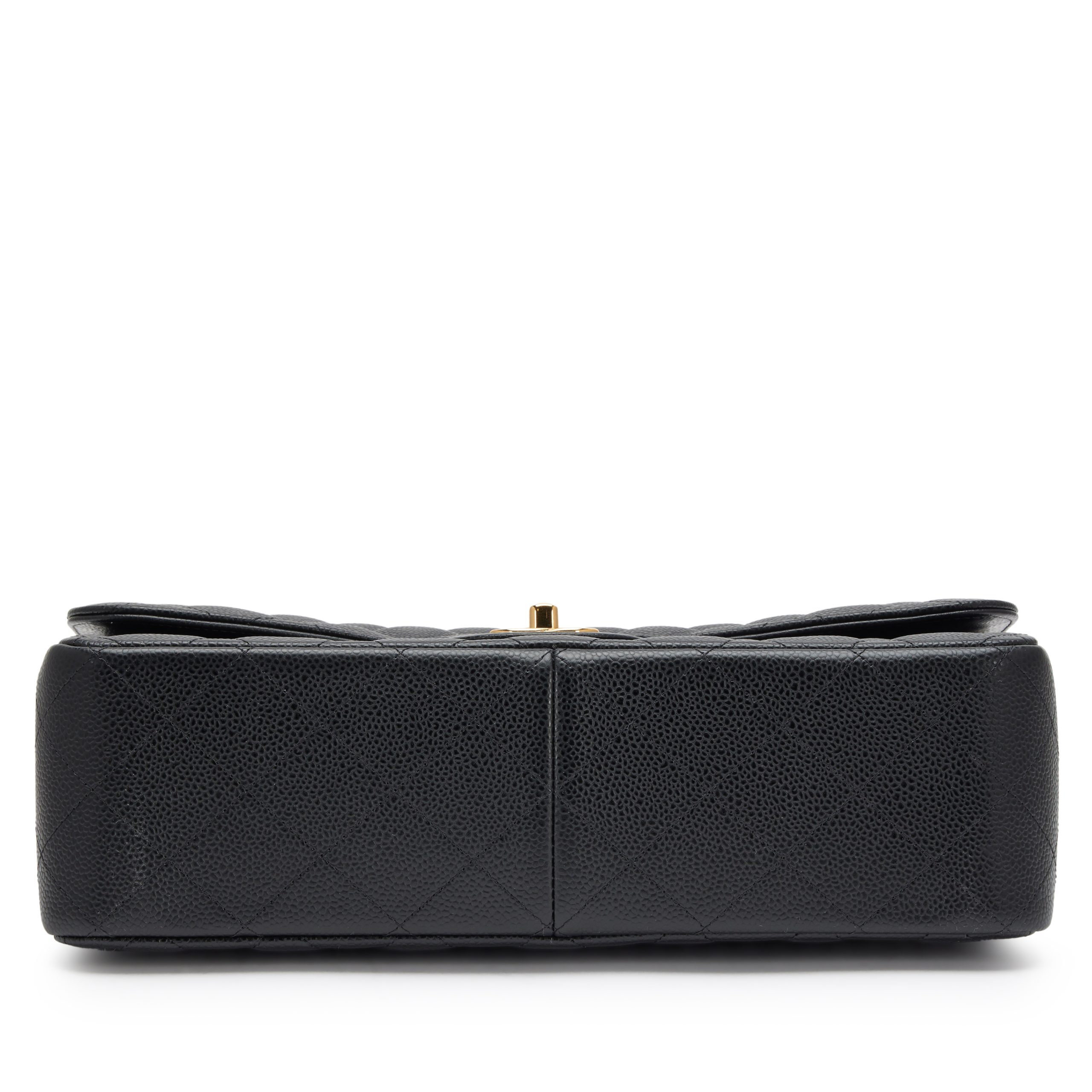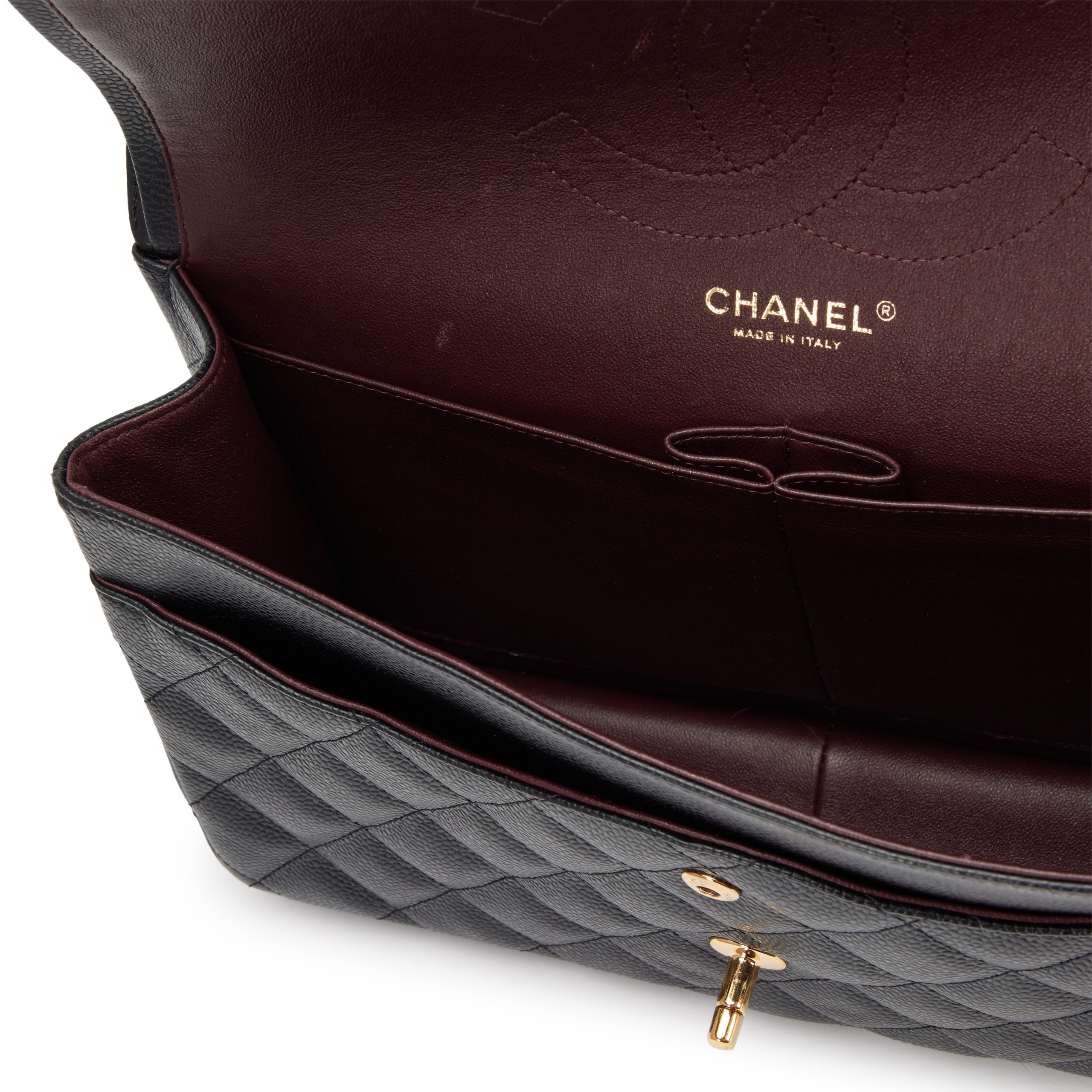 Chanel Black Quilted Caviar Jumbo Double Flap Bag Gold Hardware, 2014The interior is lined in a burgundy leatherIncludes authenticity card, felt, dust bag, and boxThis item is final sale