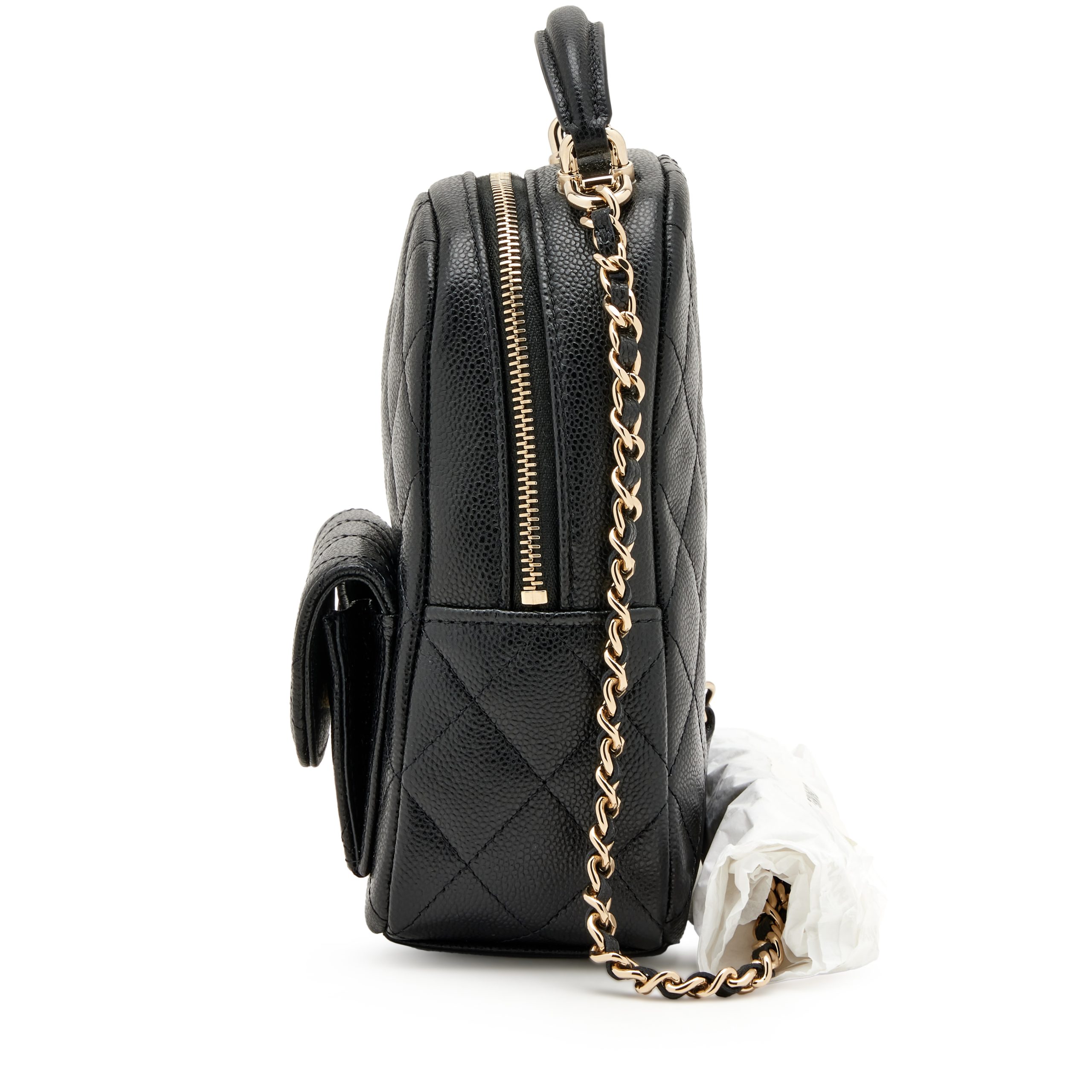 Black Quilted Caviar Mini Backpack Pale Gold Hardware, 2024