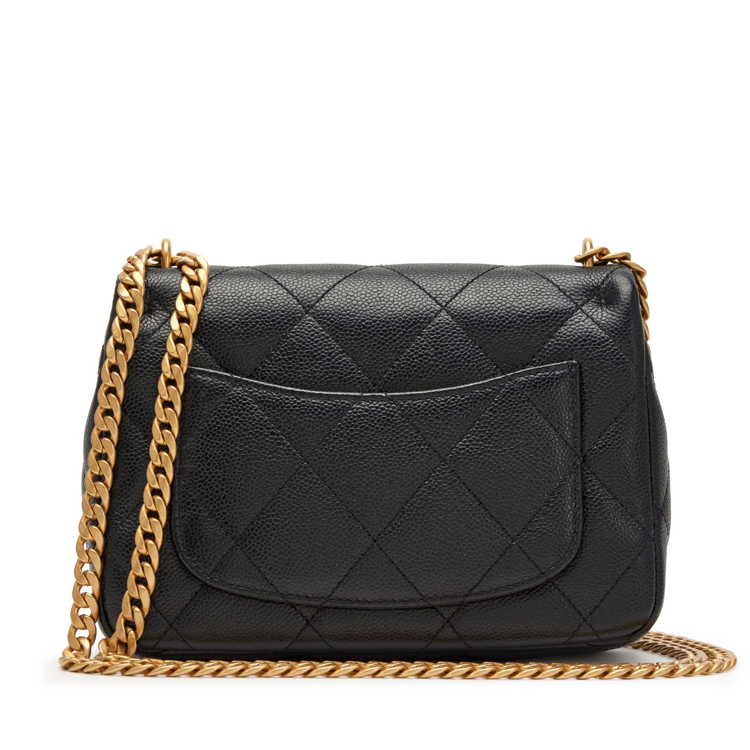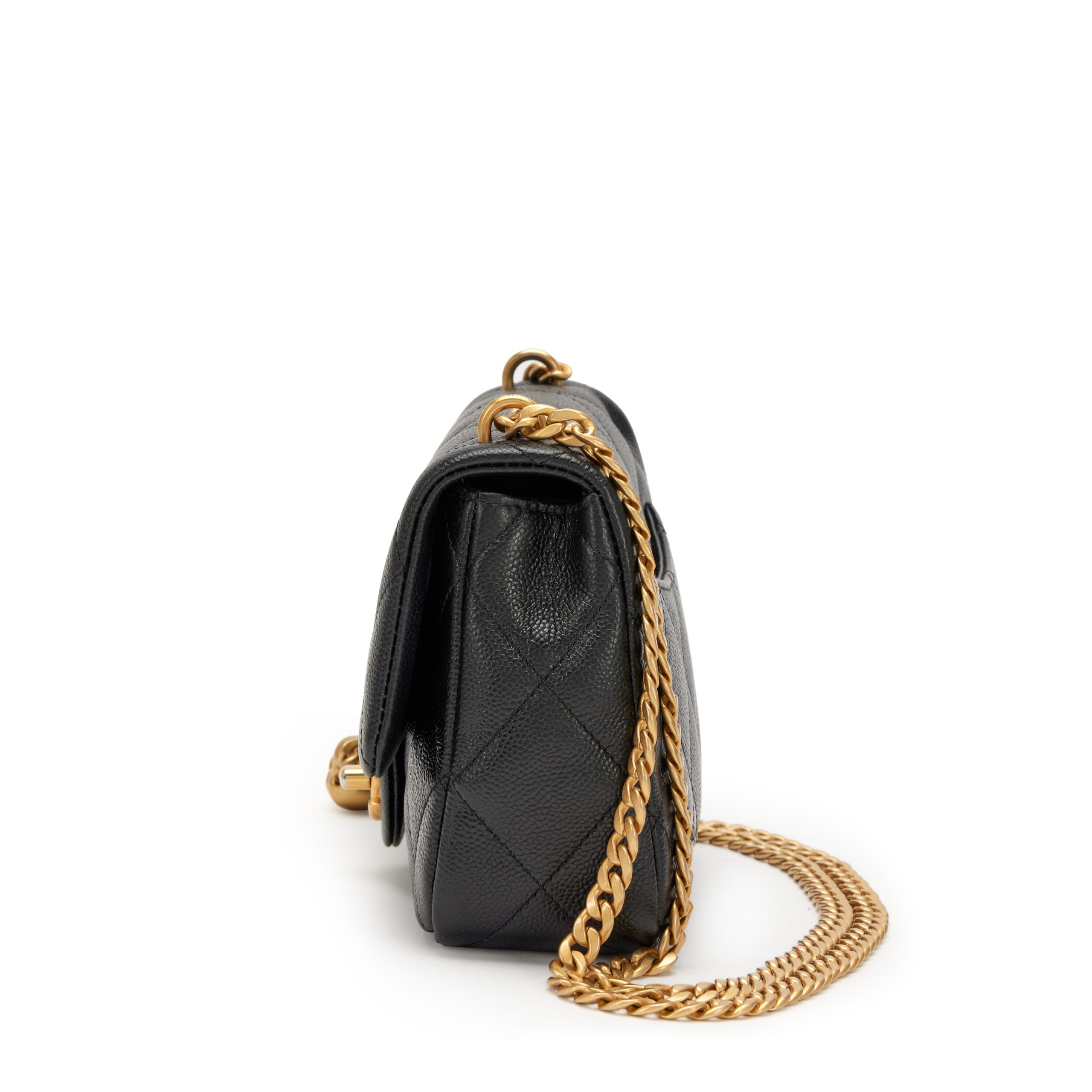 Chanel Black Quilted Caviar Sweetheart Crush Mini Rectangular Flap Bag Aged Gold Hardware, 2023The interior is lined in a tonal leatherIncludes information booklet, felt, ribbon, dust bag, and boxThis item is final sale