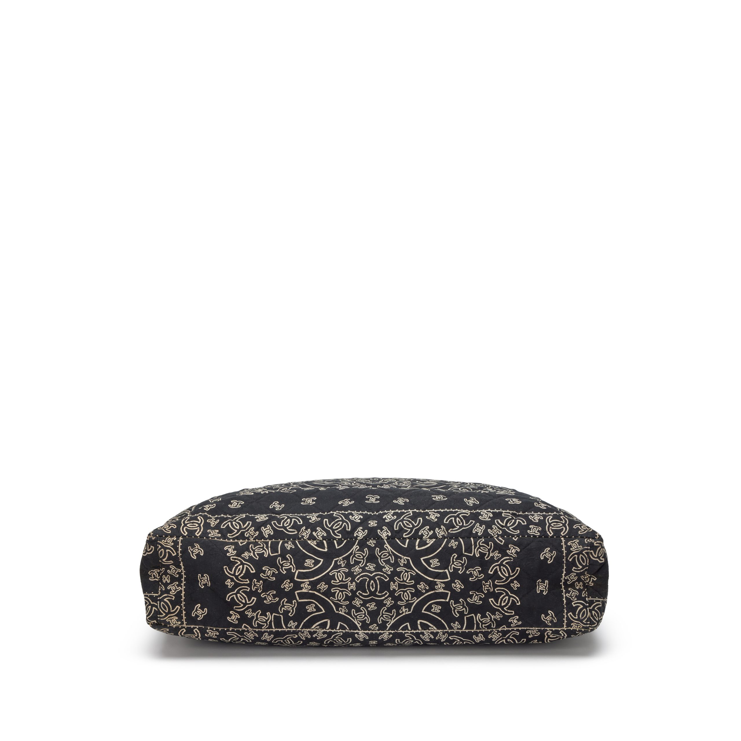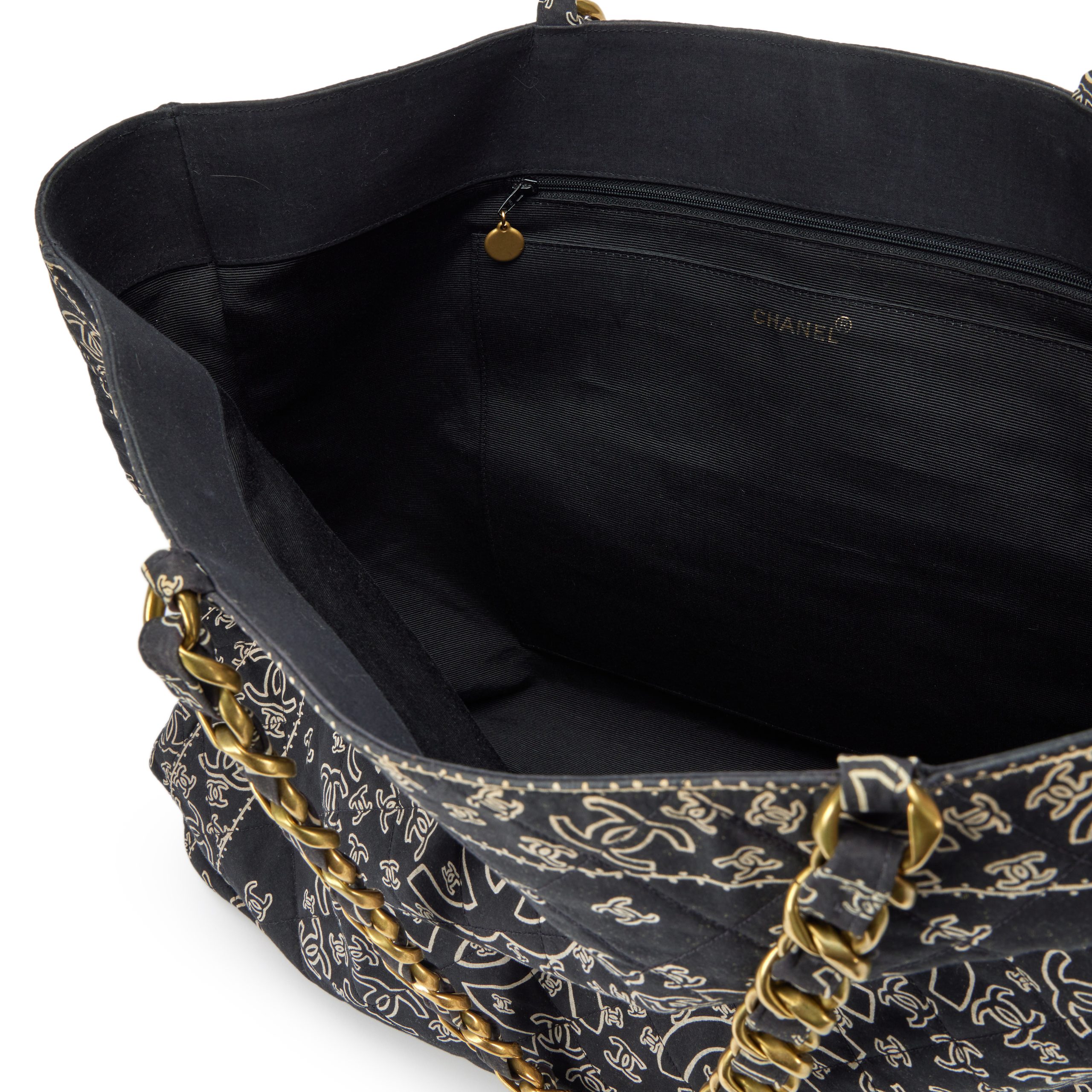 Chanel Black Quilted CC Logo Printed Canvas Bandana XL Oversize Tote Gold Hardware, 1991-1994The interior is lined in a black textile materialIncludes authenticity card and dust bagThis item is final sale